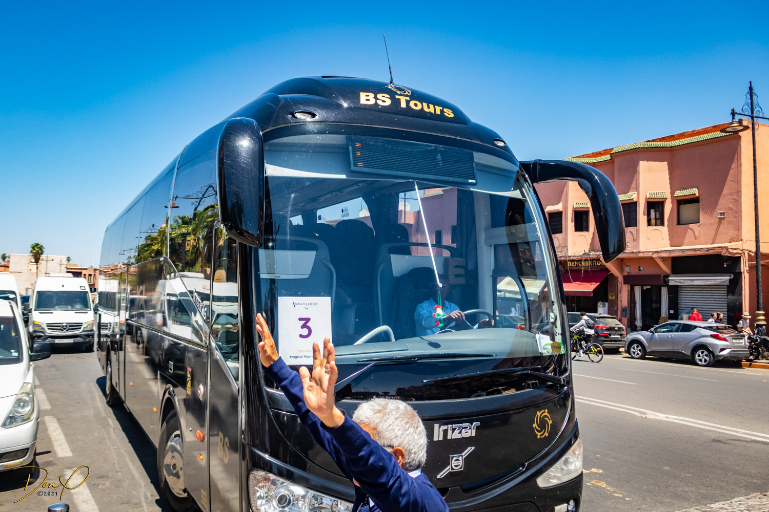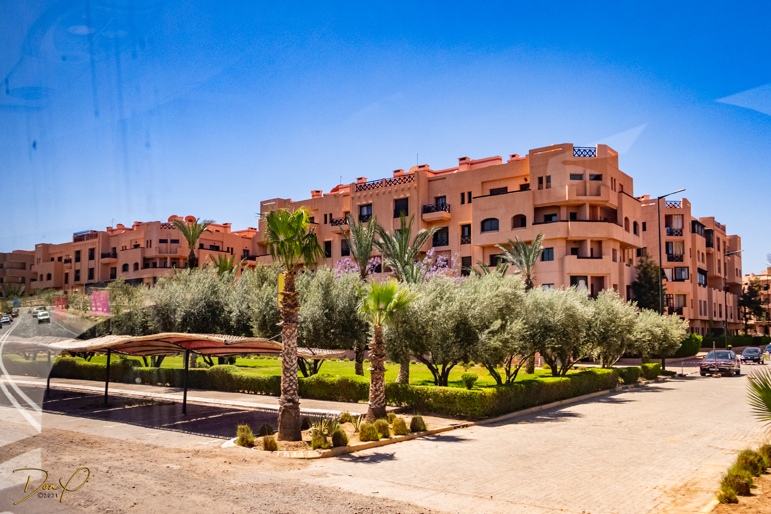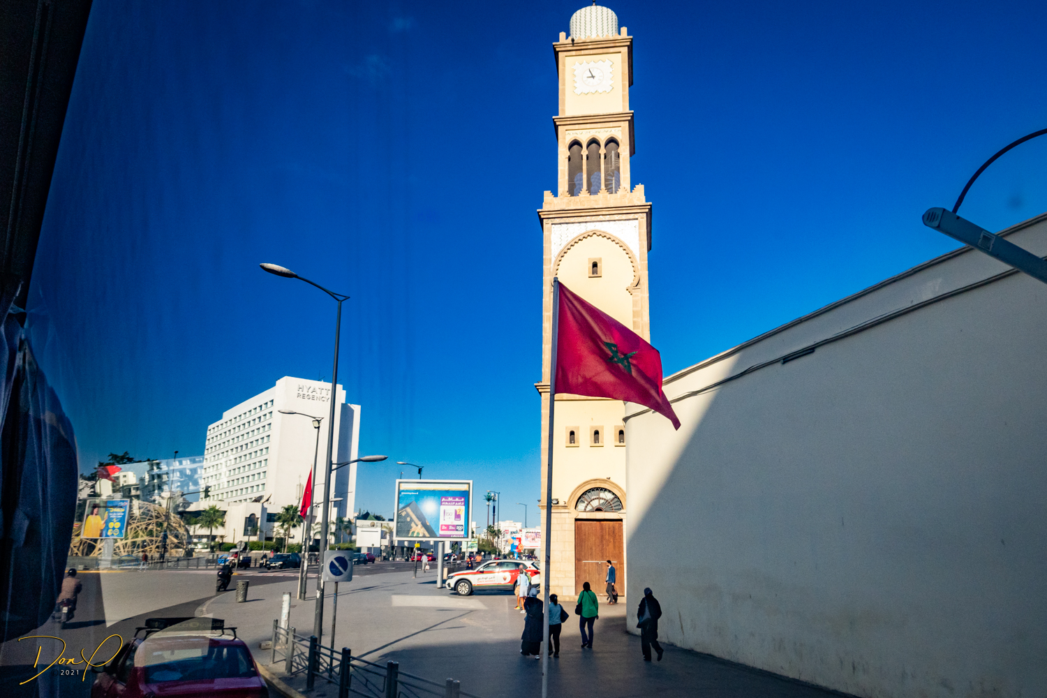 We hurry off the ship and we have to walk almost 800 yards to the busses. That’s eight football fields away! But we get to the bus and surprisingly, the third row of seats are open. So we take our seats and soon the bus drives away on the excursion of a lifetime! We are off to see the Souq at Marakesh, otherwise known as the Markets of Marakesh! We are giving up the chance to visit the Casbah of Casablanca in order to see Marakesh! The first 20 minutes we at least get to see some sights in Casablanca as our bus leaves town!