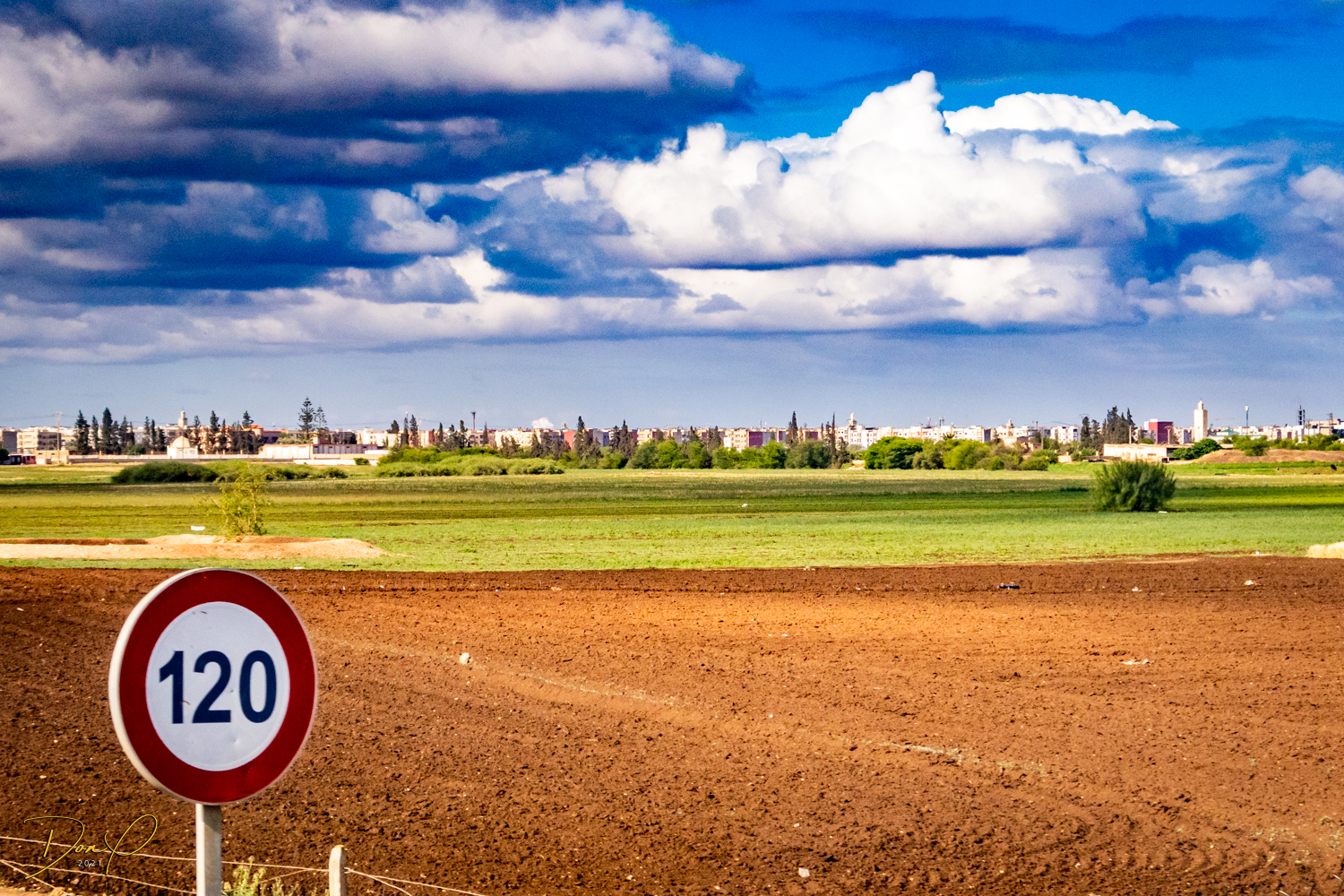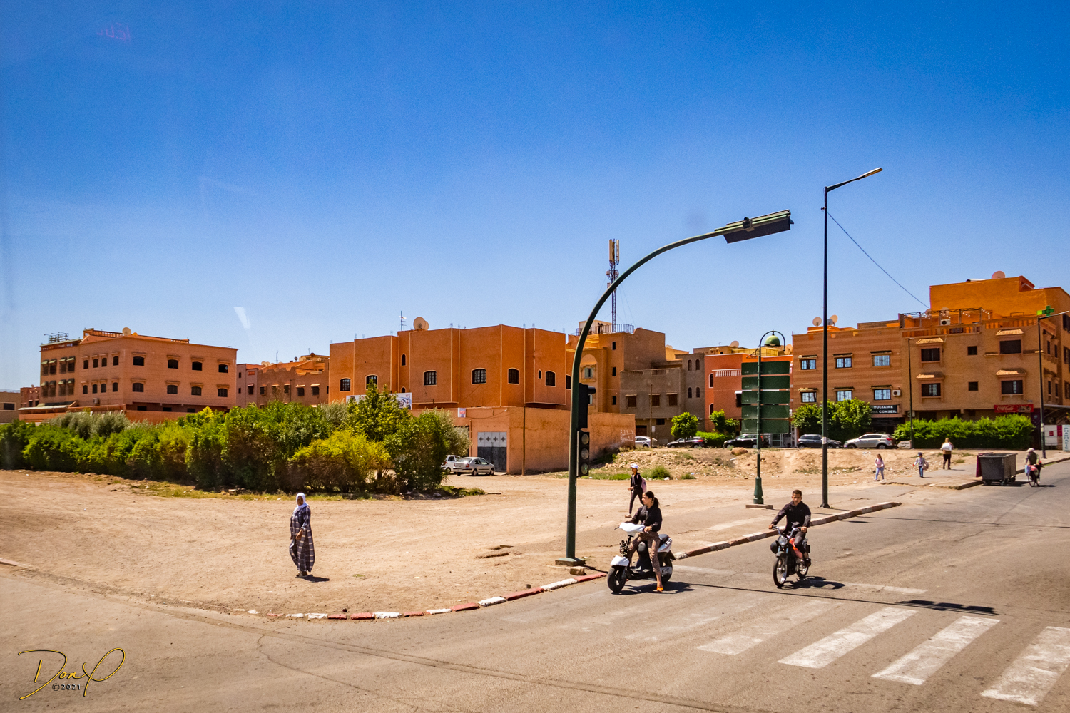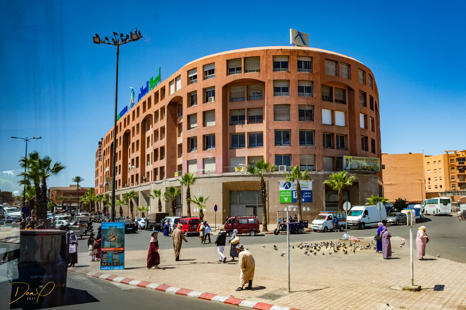 Now, for reference, we have a three to three and a half hour drive each way today. Marakesh is inland. We get to see Morocco and the farms of the Western Sahara Desert. Very interesting places indeed! Seems impossible that anything grows here but where they apply water, plants grow! The road is a toll road and in excellent condition. The bus is a modern luxury bus and is very comfortable. Sure glad we don’t have to read the road signs!