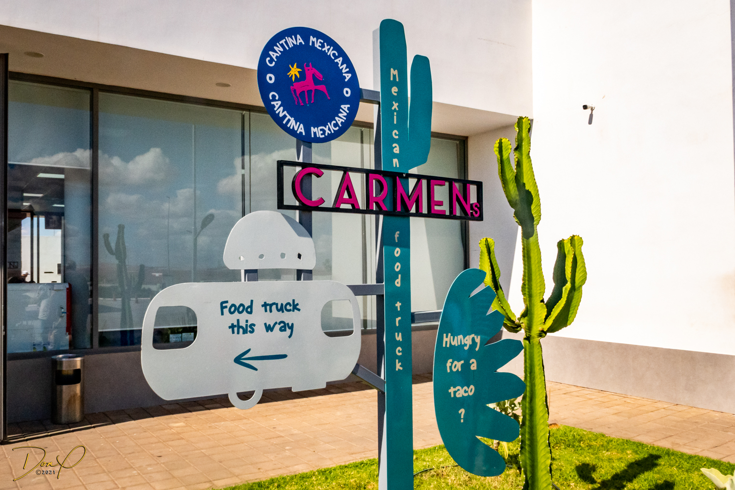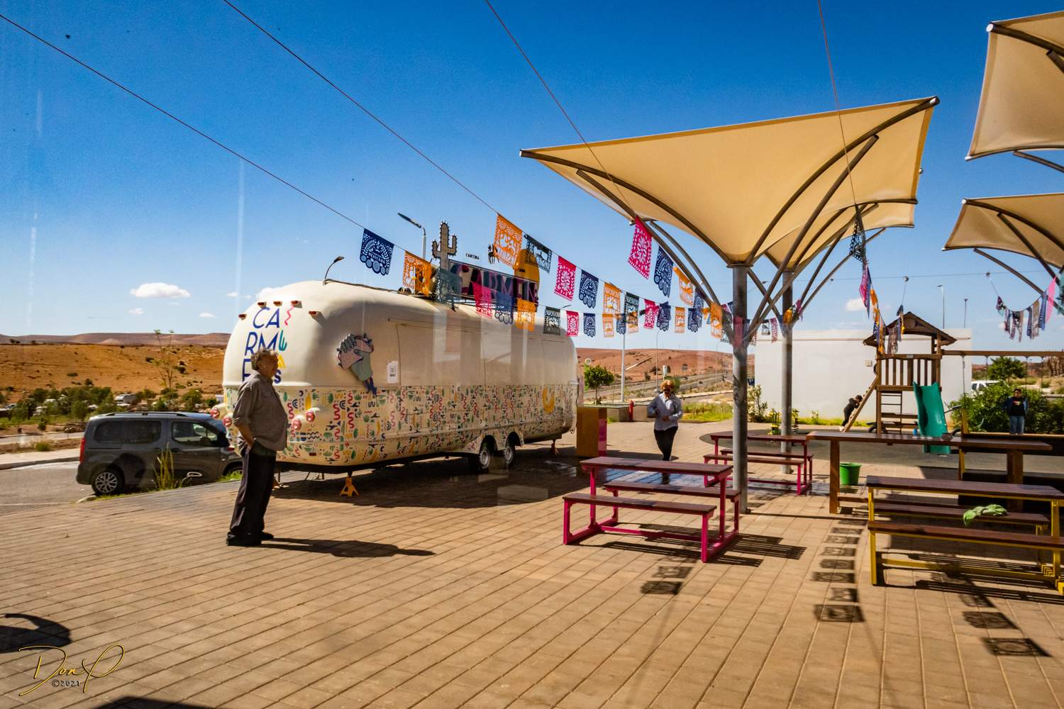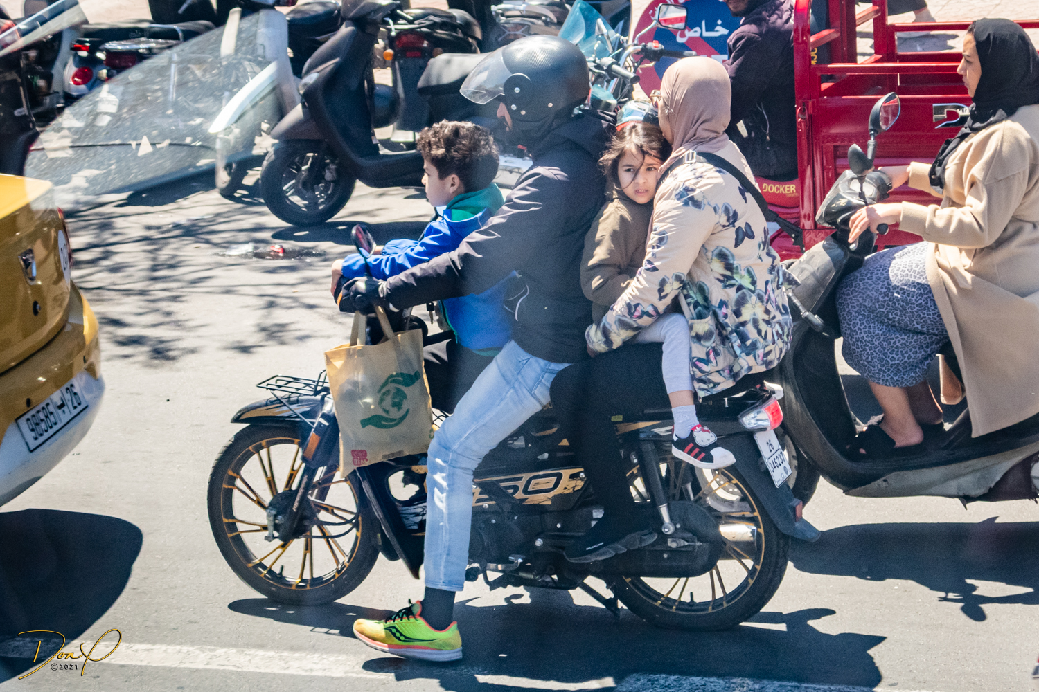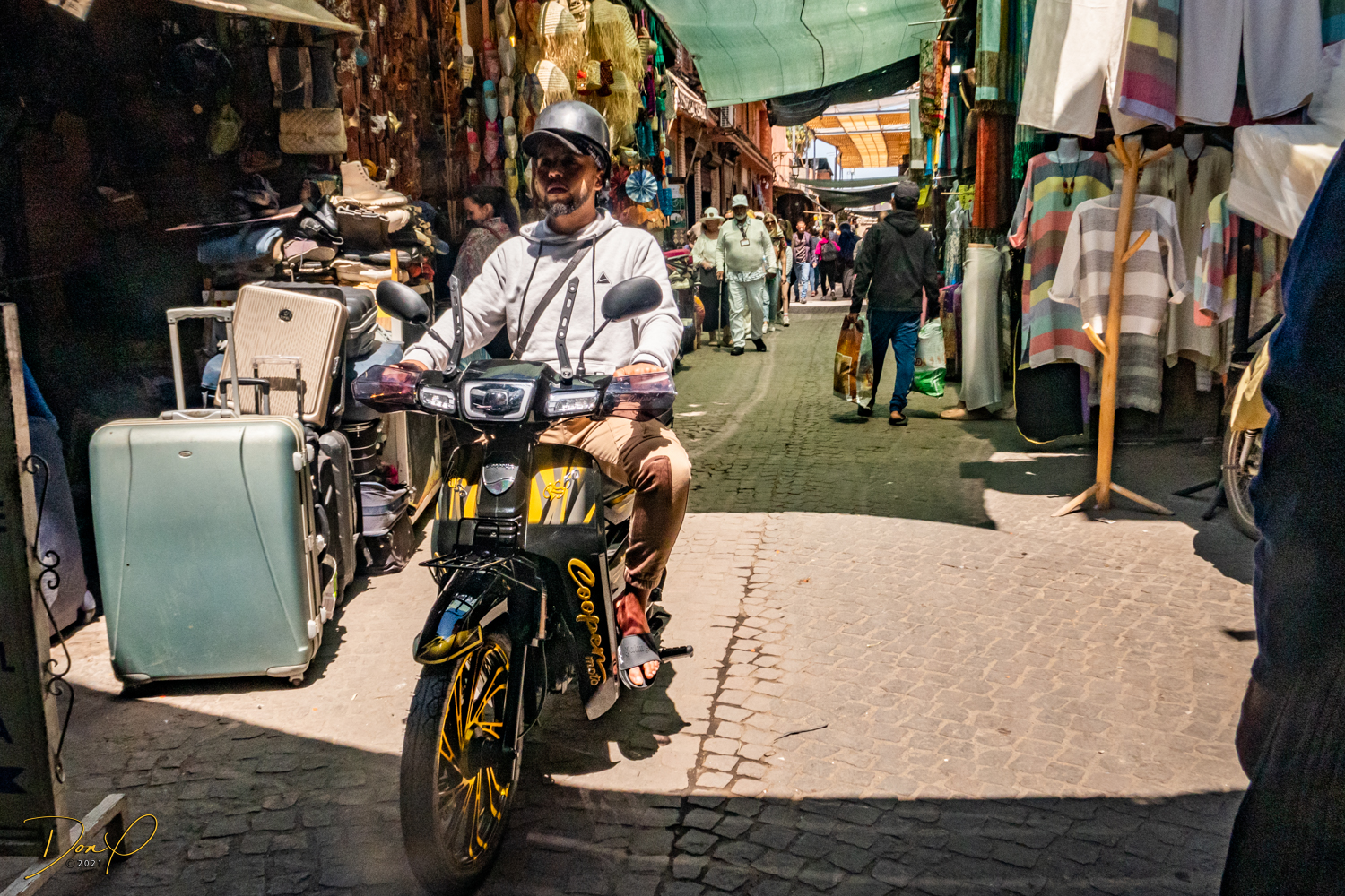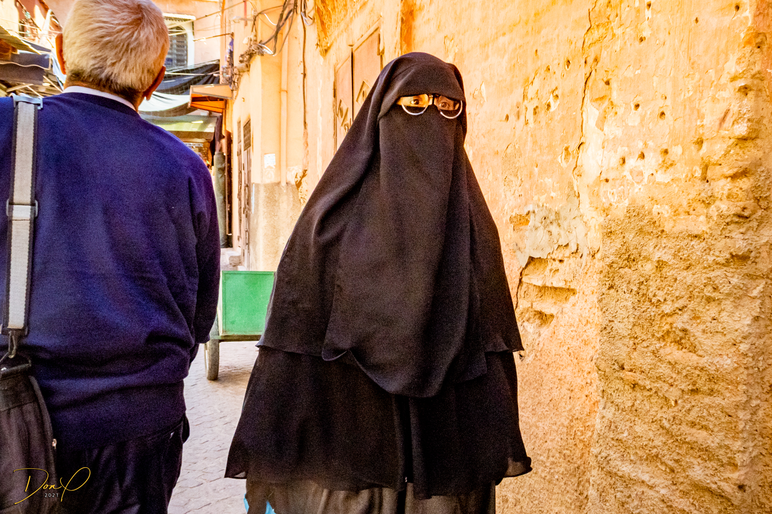 We stop for a WC break (that would be Water Closet or Toilet) called a Winston Churchill by our guide, LOL. At the WC stop, there is a Mexican Food Truck, ‘Carmen’s’. Who’d have expected that here? Then it is only two more hours to Marakesh. More farms and desert scenery and then we arrive at buildings and more buildings. Soon, the hustle and bustle of throngs of people slow our bus to a crawl. We disembark the bus and are told to make sure we have what we need for several hours because we won’t see the bus again until it’s time to return to Casablanca.