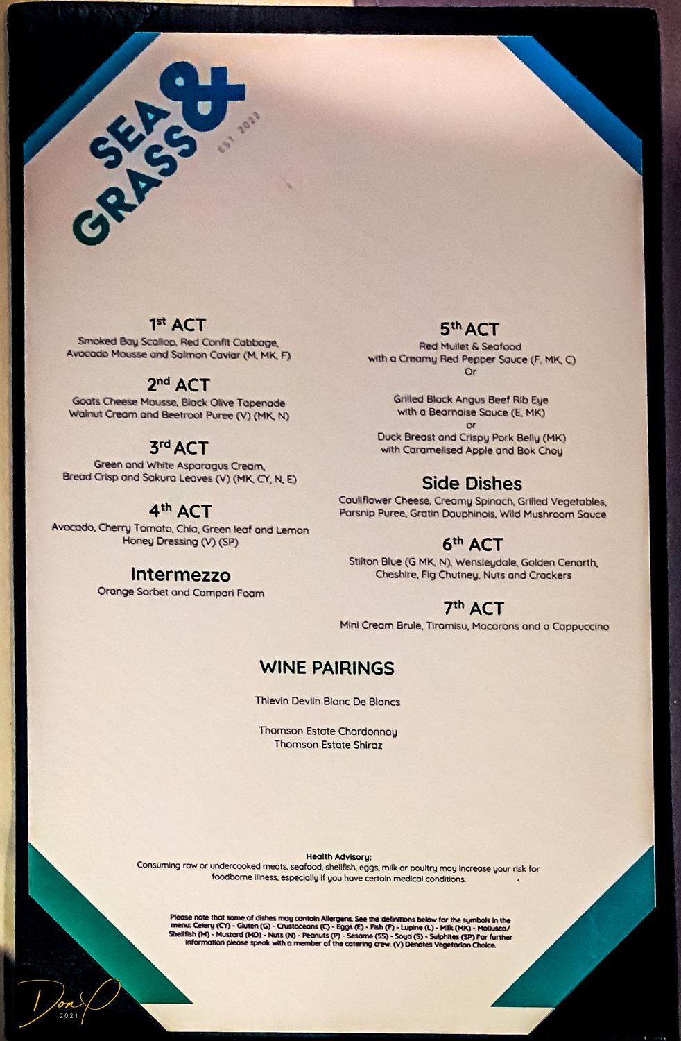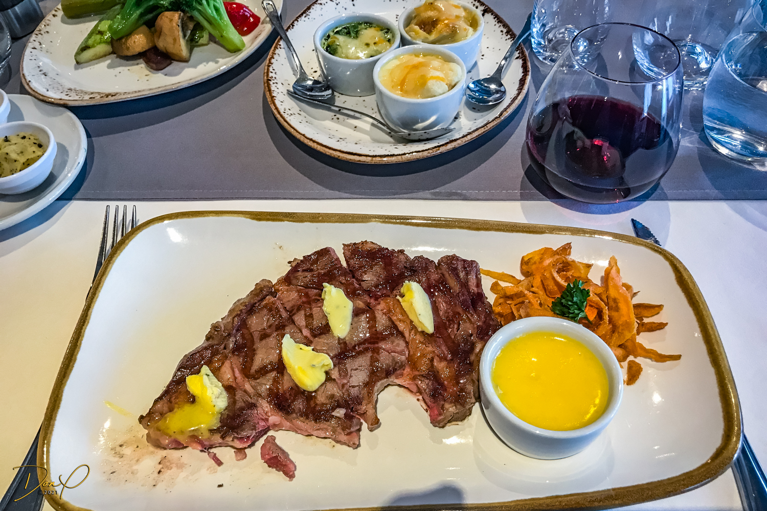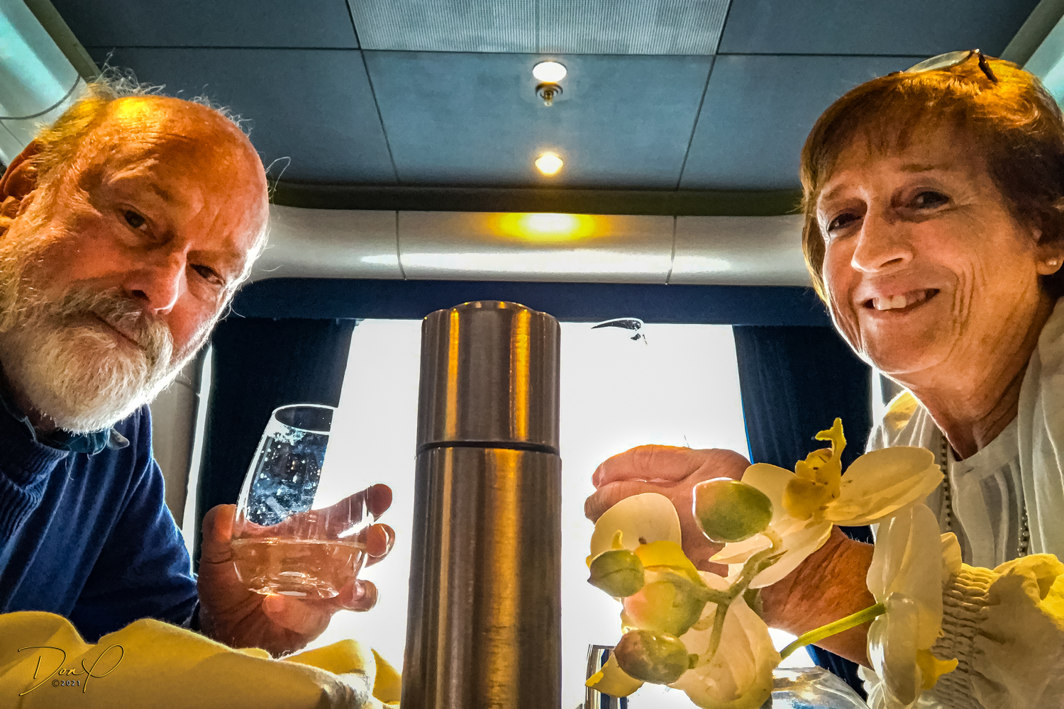 We have yet to visit the Premiere restaurant on the ship, Sea & Grass. So today is the day! We go about our normal At Sea Day activities until it comes time for dinner. We thought to make reservations a couple days ago for tonight. We are treated to a SEVEN COURSE DINNER! The food is good and we are grateful for having the knowledge ahead of time that it is chilly inside the restaurant and Elee and I bring sweaters!