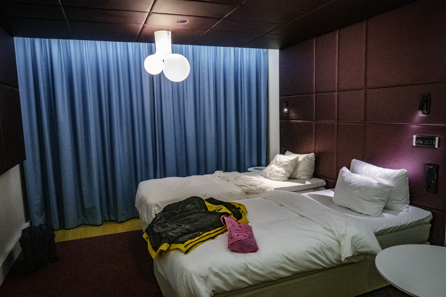 It is 6:15 PM and the ride to the hotel is 40 minutes. So we walk into the lobby at 7 PM and check in. We bring our bags up to our room. I head back down to meet our Guide and Group for the Introduction Meeting and Dinner that is scheduled to start at 7 PM. Yes, we are late. But there’s nothing we can do about it. Our Guide is looking for us. He sits us at the same table as he is sitting so he can bring us up to date. The other table mates introduce themselves and are very friendly. The light above the bed in our room elicits conversation among the group!