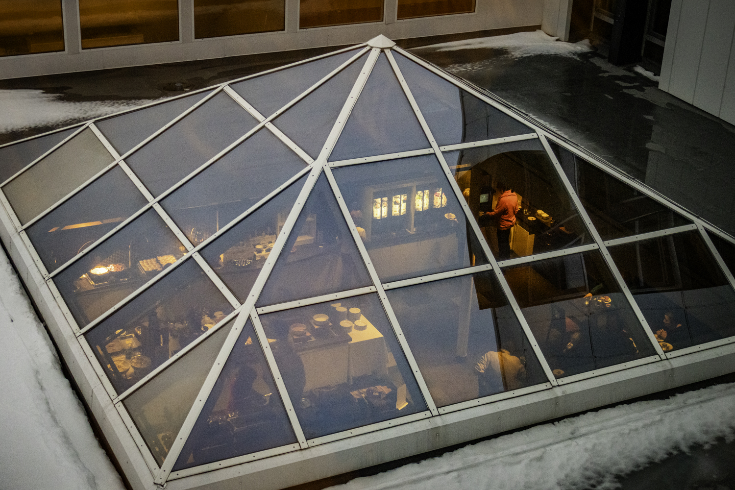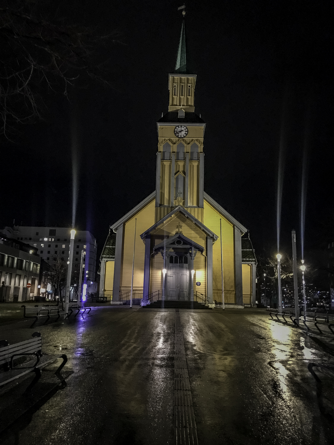 We arrive in Tromso and check in to the Clarion Collection Hotel. We walk around town in light rain and come across the world’s smallest restaurant and bar! It is a tiny kiosk on the street! It has a huge line and we decide we really want to find a place indoors out of the elements. We find a place and order drinks. It is then we are told they stop serving food at 4 PM. What??? They do have a small charcuterie board that we call dinner! I also find a wine I’ve never had before and add it to my growing list of wines I’ve tasted! I’ll be able to join the Century Club soon!