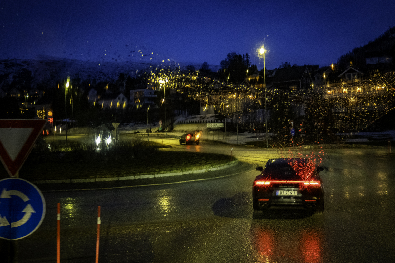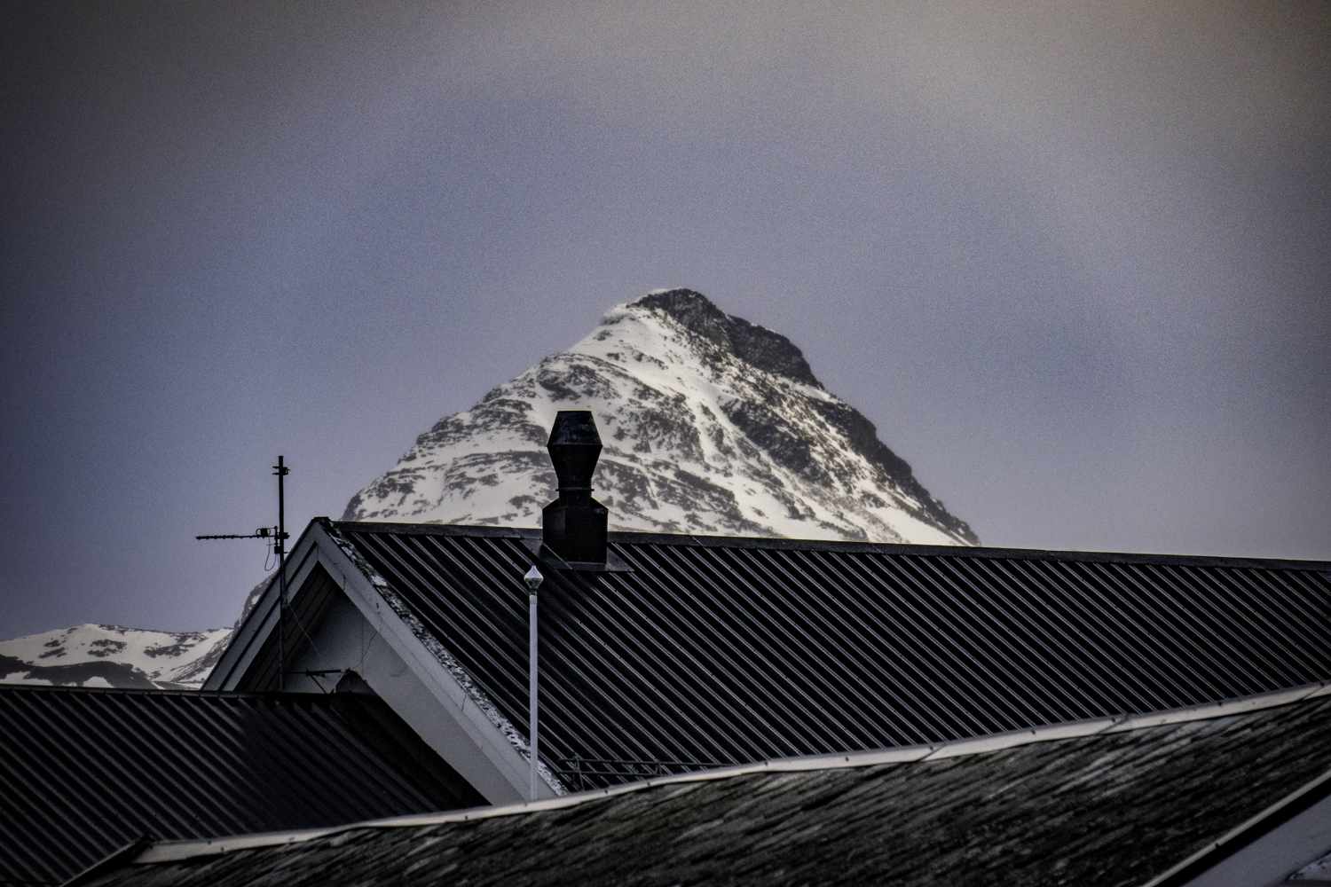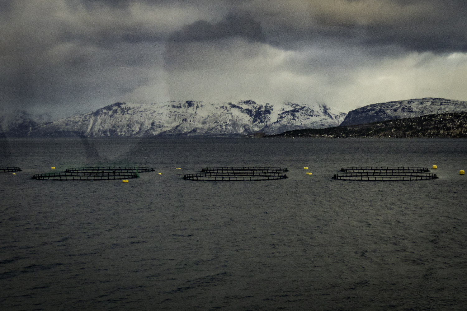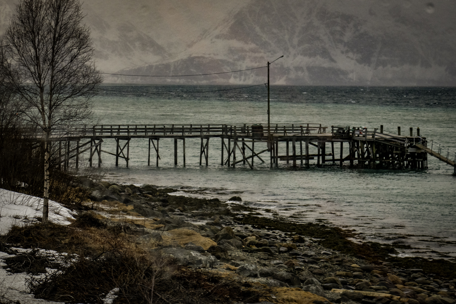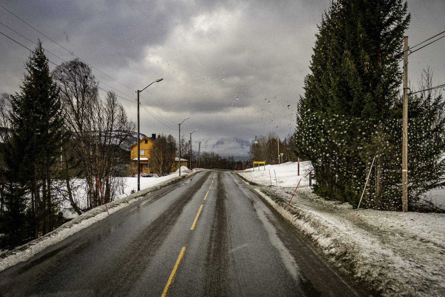The scenery is fantastic today, driving to Tromso by the fjords. Bits of blue sky and green water assault our senses. Colorful houses and towns along the way. Our cameras are happy! We go through many tunnels and over bridges. Frozen waterfalls are in abundance!