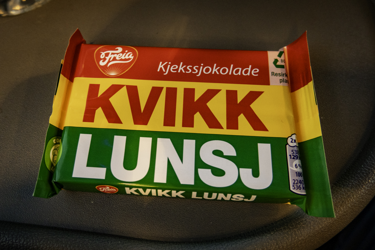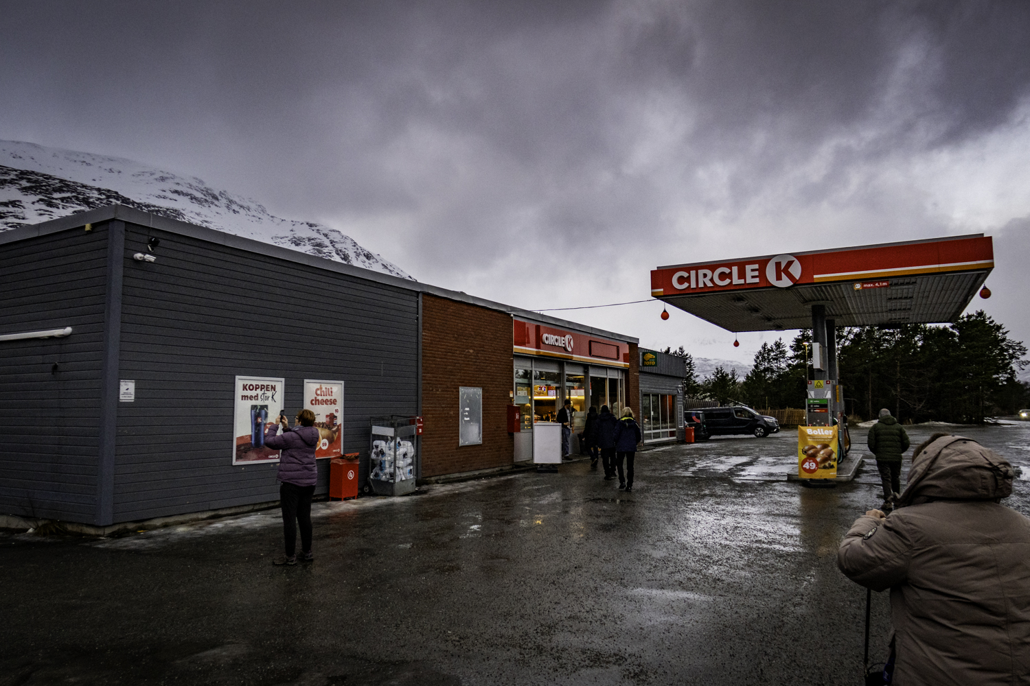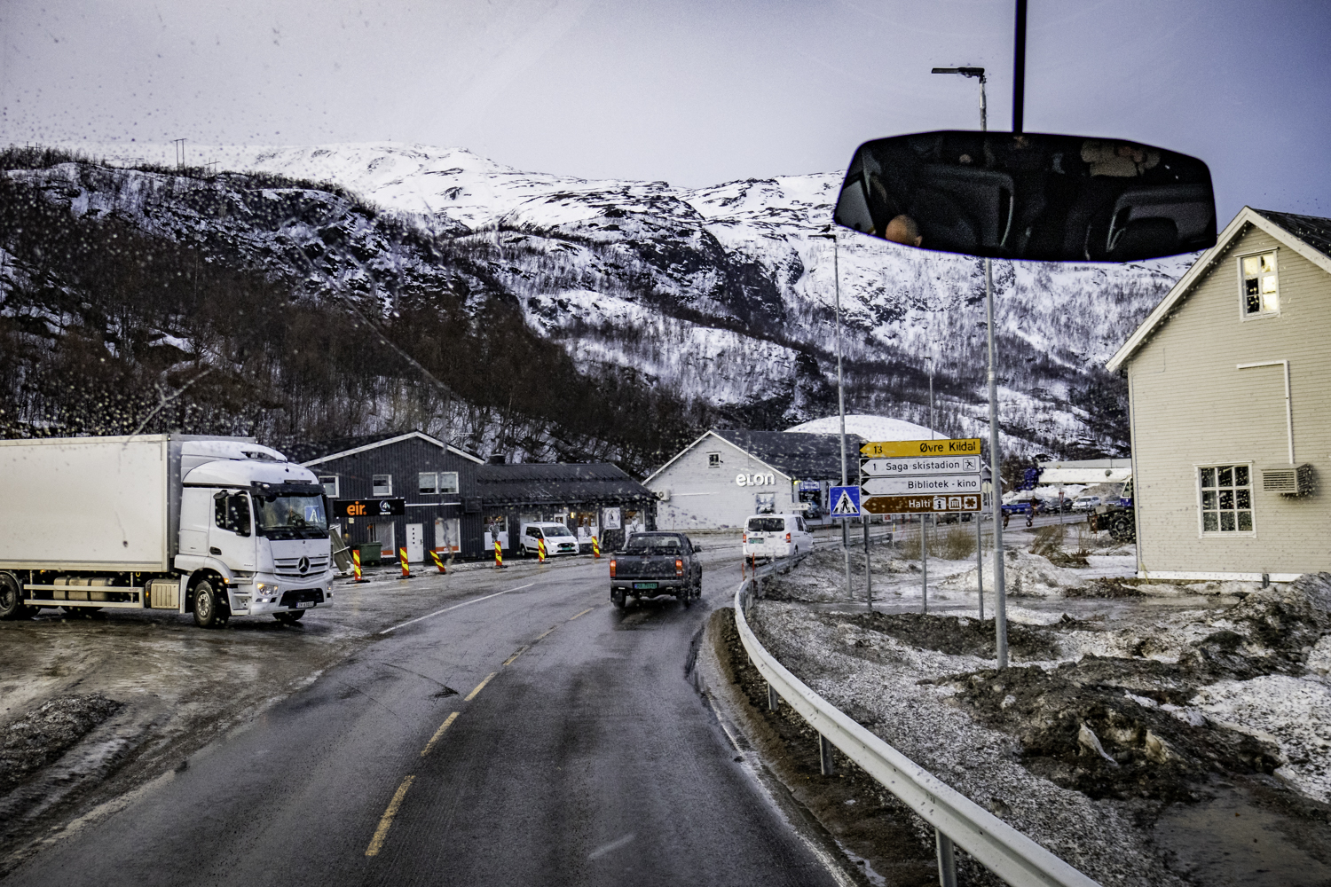 We stop at ‘Pa Taket Kafe’ for lunch. The Cafe overlooks a small picturesque harbor. Then it’s back on the road through the countryside and our cameras purr like kittens. More frozen roadside waterfalls and tunnels to go through! We stop at Circle K again for a break! We must be officially members of the Circle by now! I take a chance with what appears to be a chocolate bar!