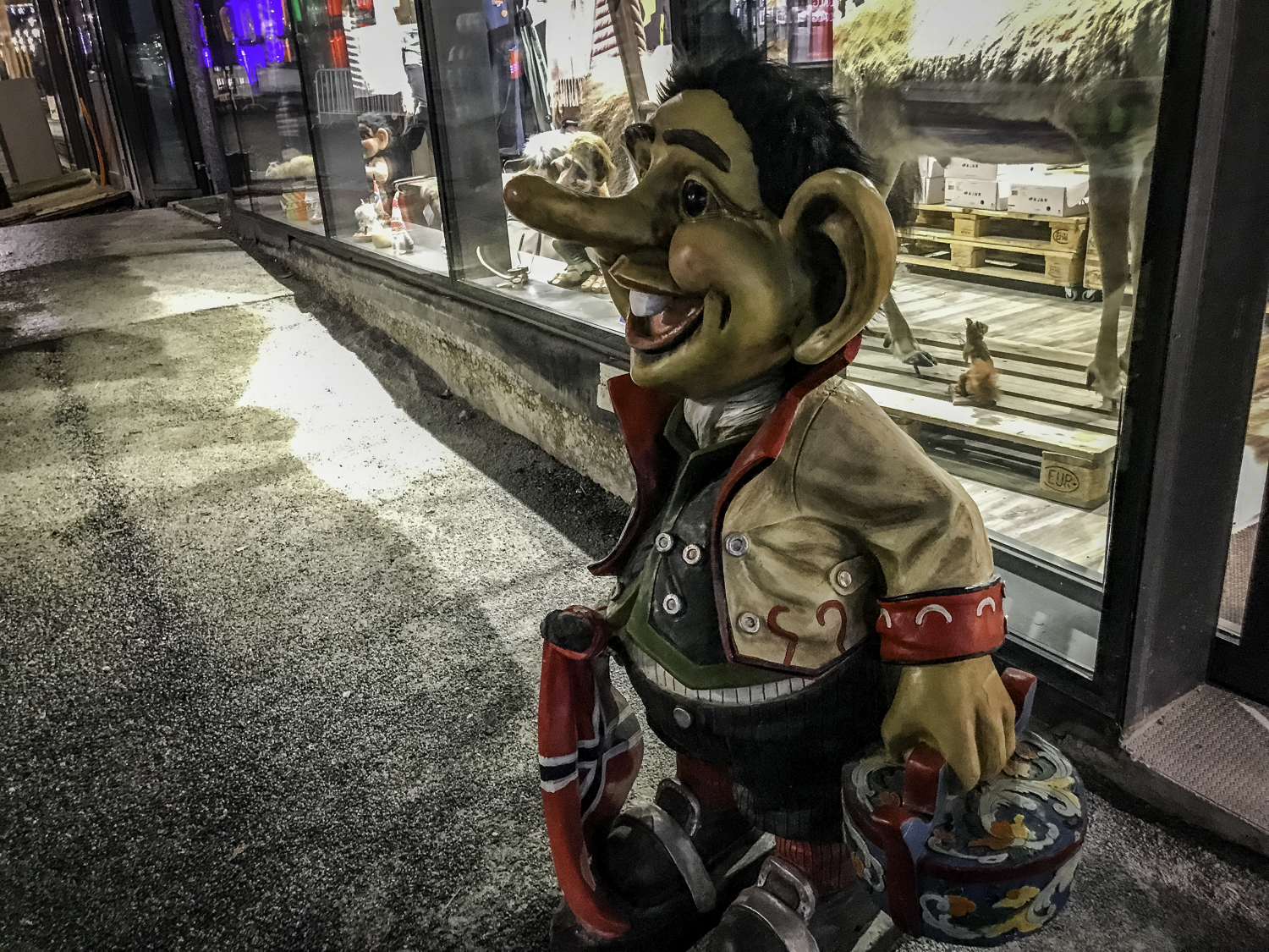 We stroll the few blocks back to the hotel and call it a night. But not before finding a few sights for our cameras and even a troll!