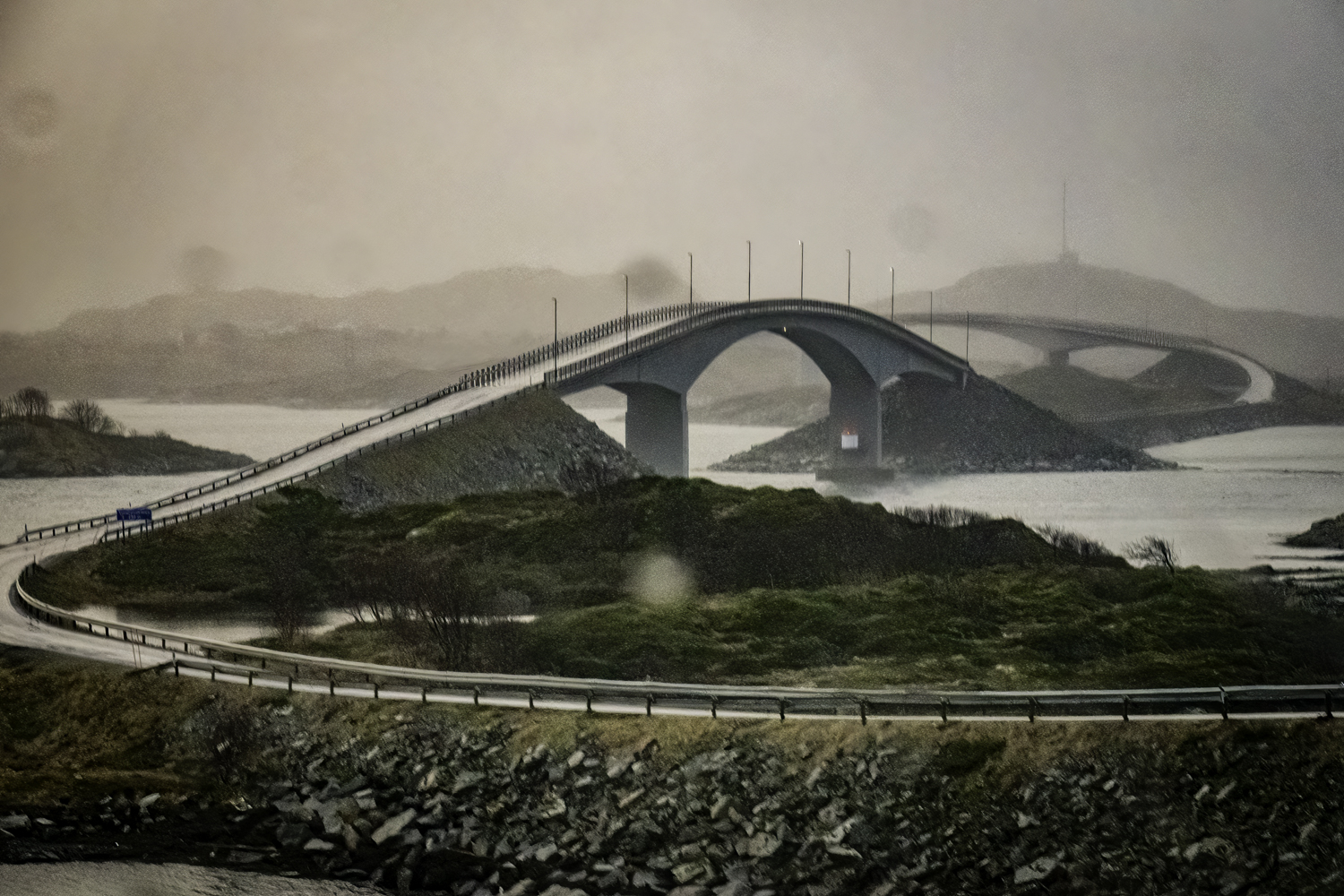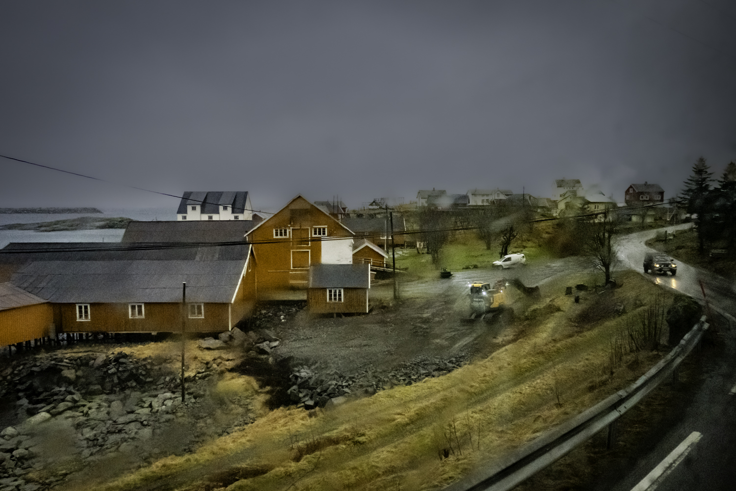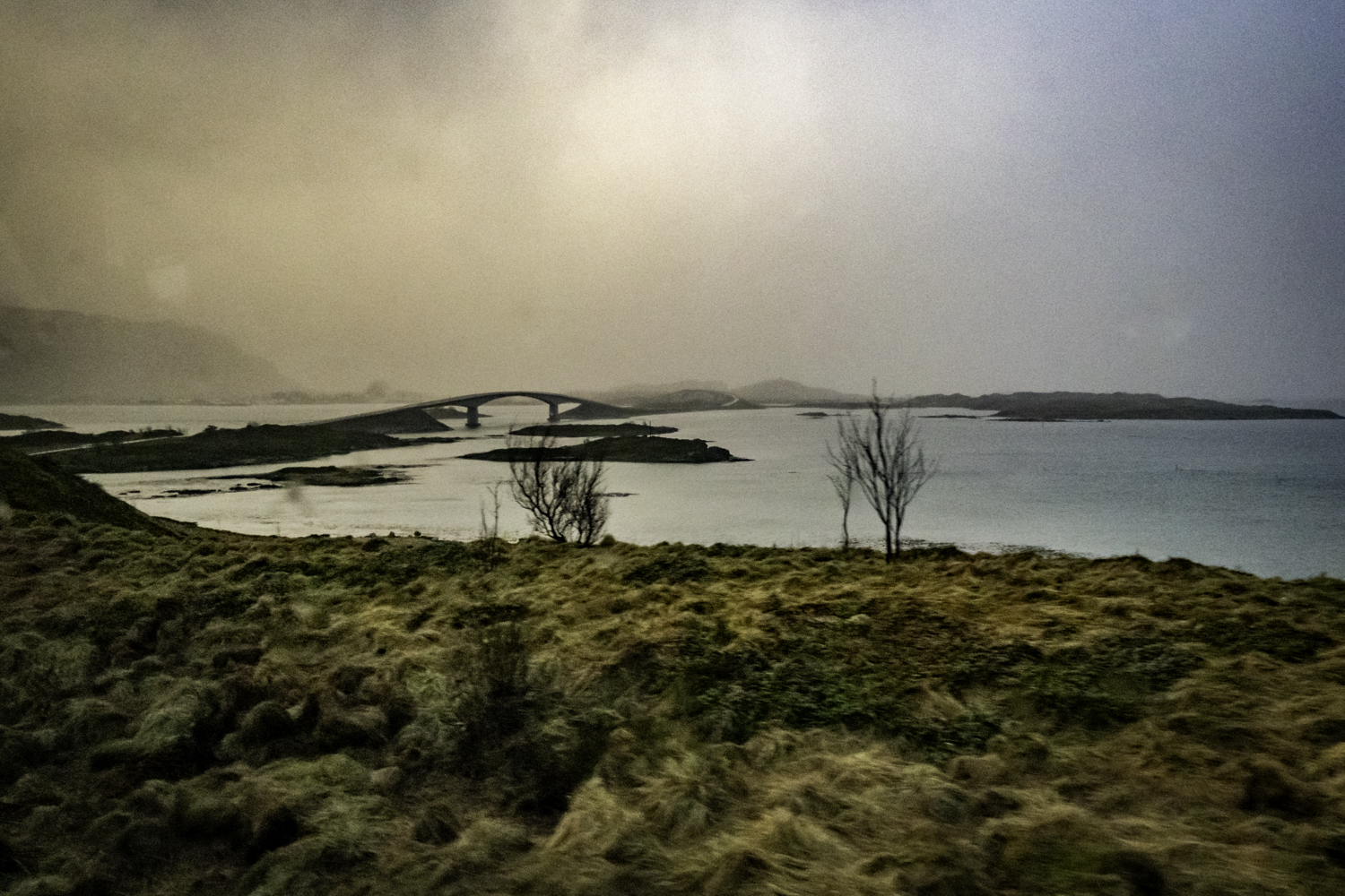 Today we board the bus without luggage as we will return here tonight. We are off to see more of the Lofoten Islands and possibly another WWII museum. It is raining lightly. We travel to “A” (yes, that’s the name!) at the end of the road after driving through another tunnel in the Lofoten Islands. We see bridges, islands and fish farms. The tunnel at the end opens to a parking lot. There is a Kafe here and rest rooms. We stop for pics and a comfort stop.