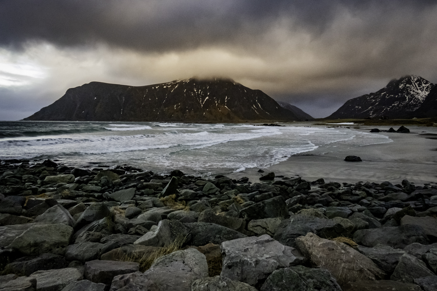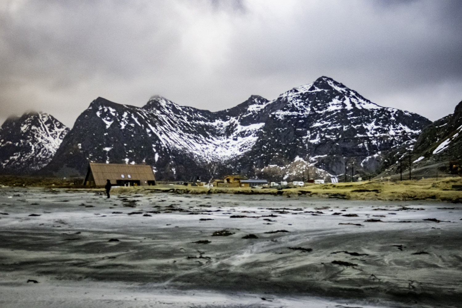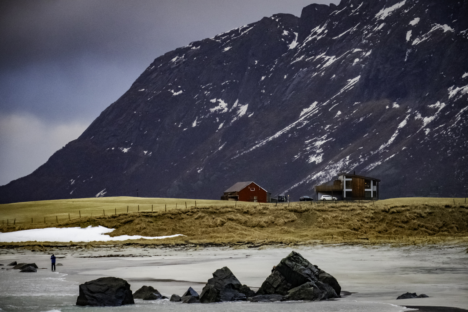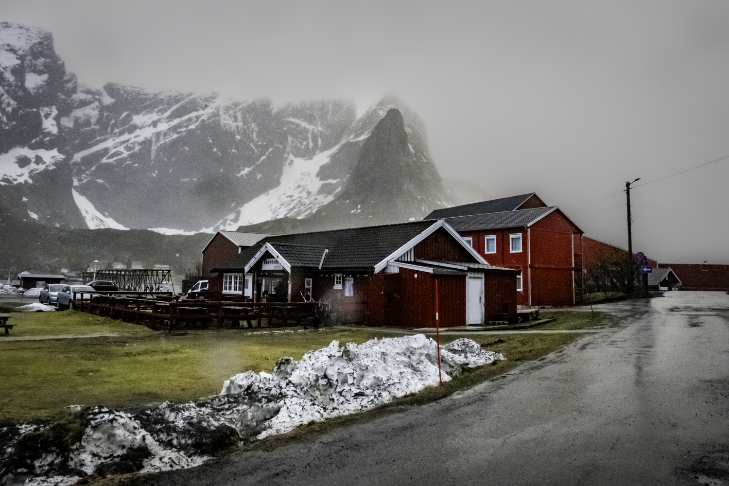 Then we drive back to Reine where we stop briefly for a photo stop at a large waterfall. Shortly after we stop for lunch at another Kafe. There is a marina here on the edge of this fjord. It is very picturesque and our cameras are happy! Fish and Chips and another local IPA and we’re good to go!