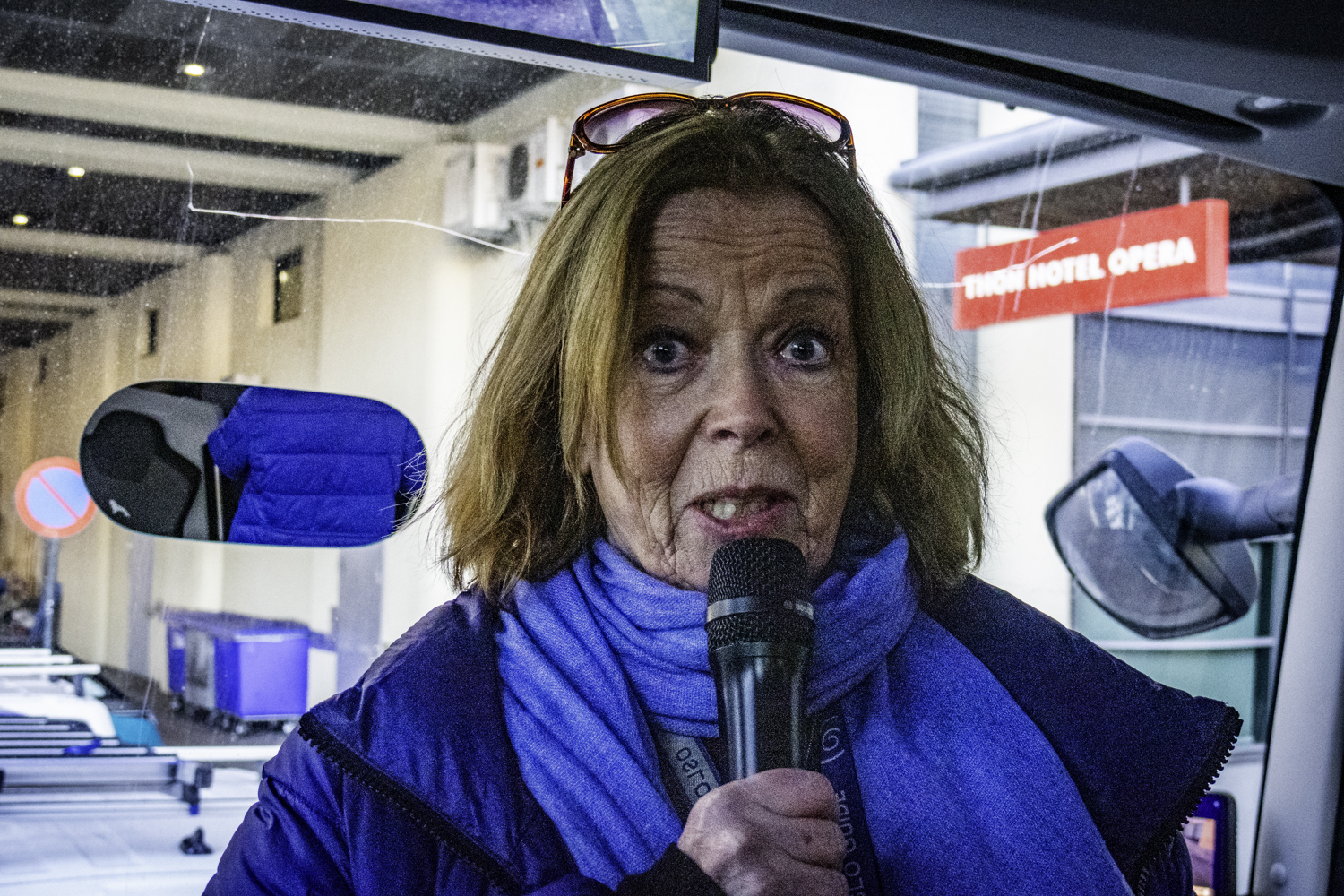 We board the bus at 10:00 AM. Mikael sits to the back of the bus as we have a local Tour Guide today. The local Guide speaks very good English and has a great sense of humor. She guides us around the city and describes everything we see.