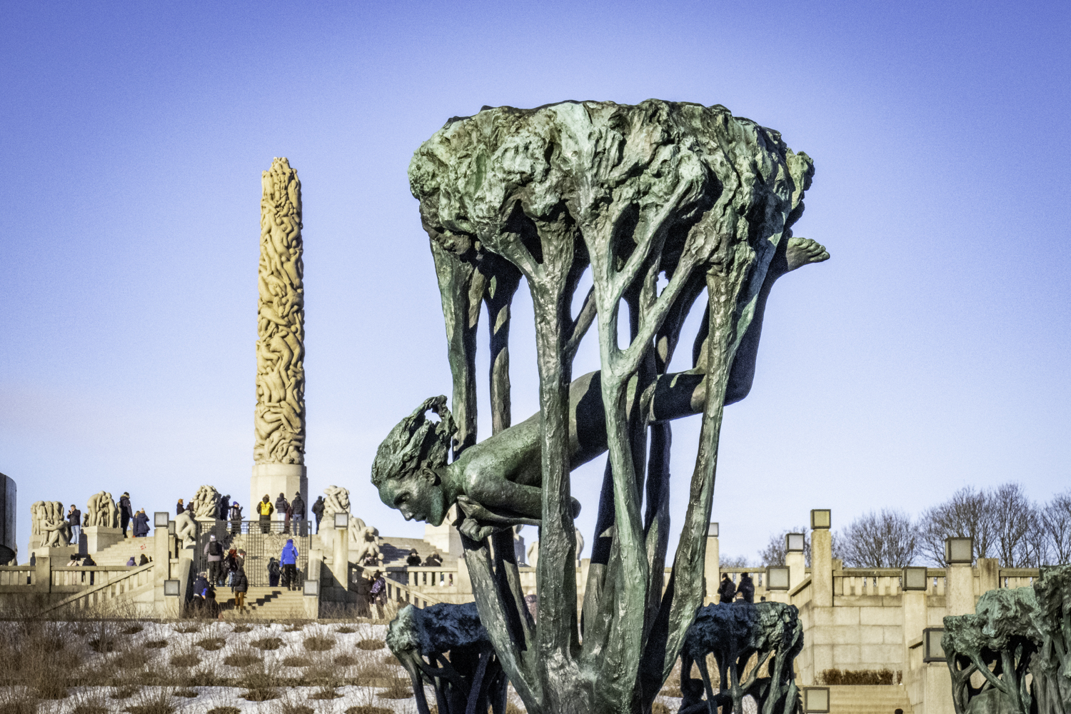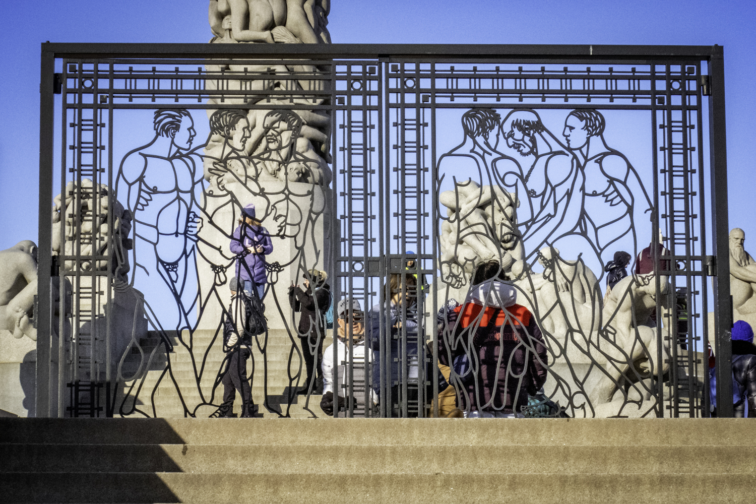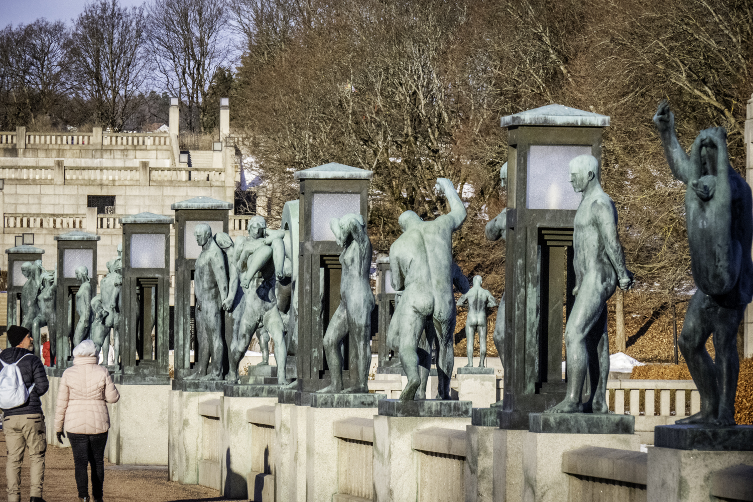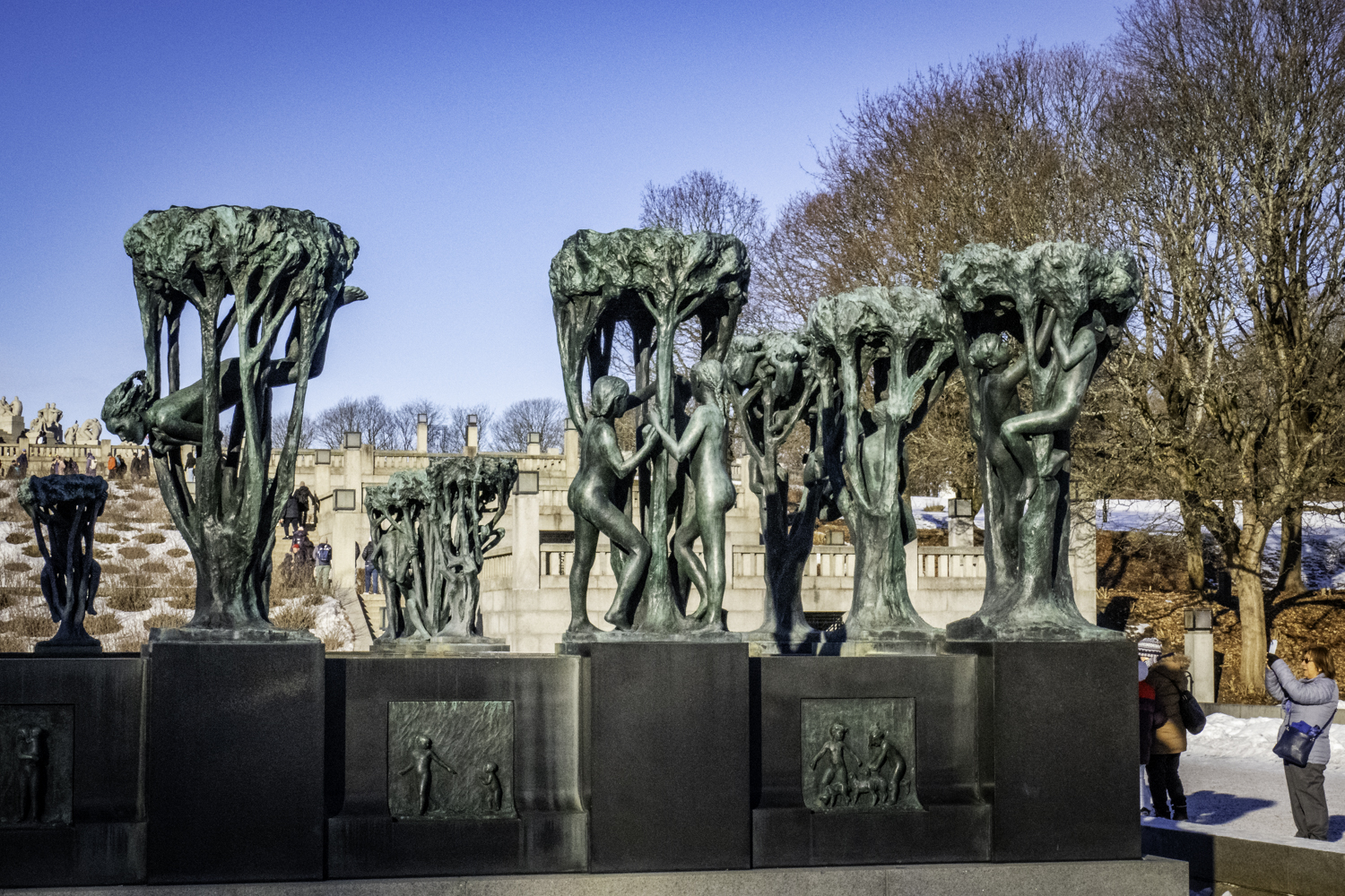 She takes us to a park, Frognerparken Vigelandsparken, where a famous artist, Gustav Vigeland, carved thousands of sculptures, mostly of naked subjects. We are told that he never explained his subjects as he was telling a more esoteric story. He was basically unknown to the outside world because he refused to allow his sculptures to be outside of this specific park.