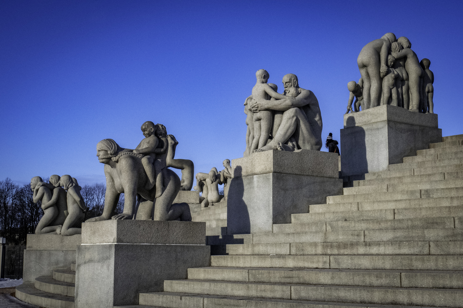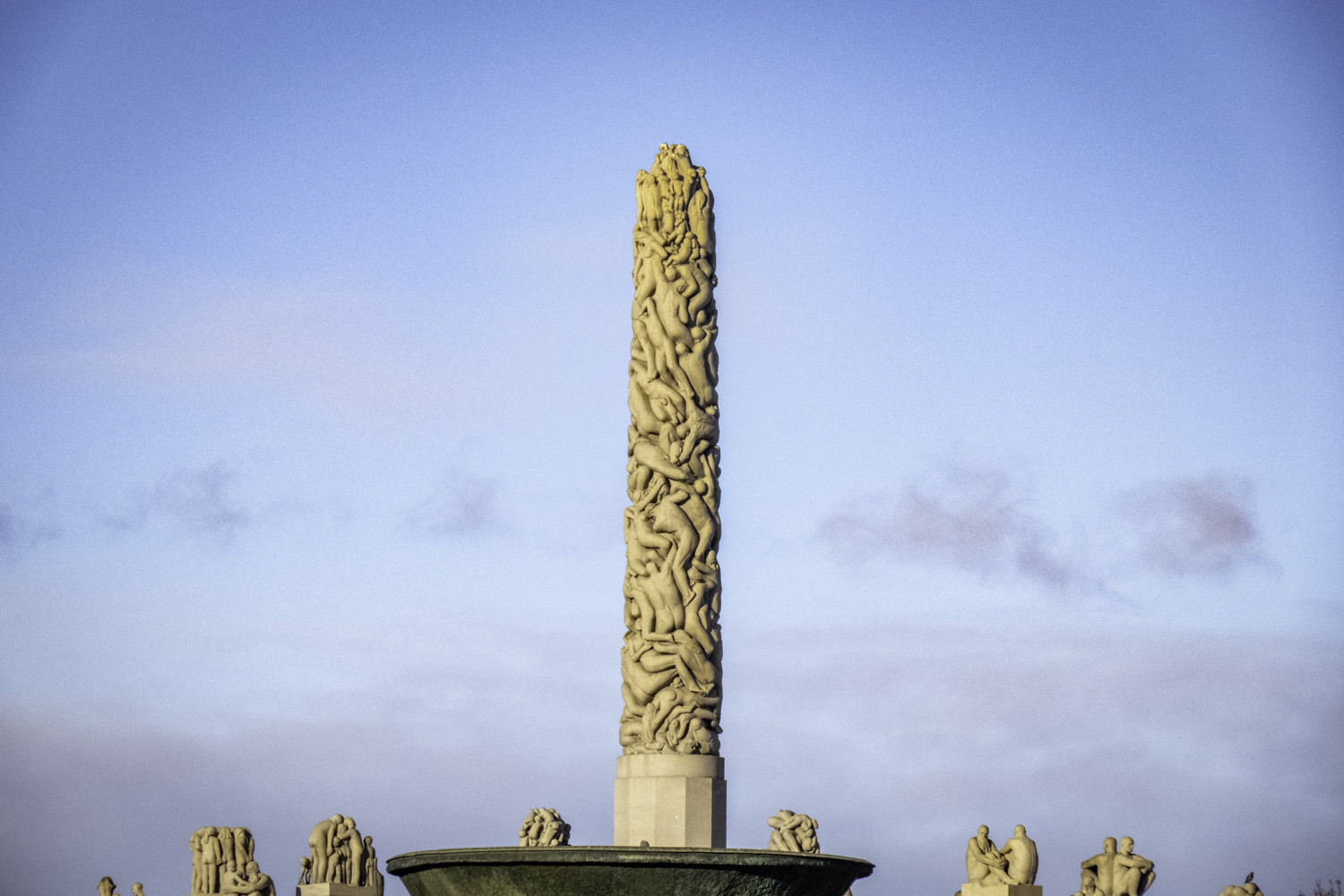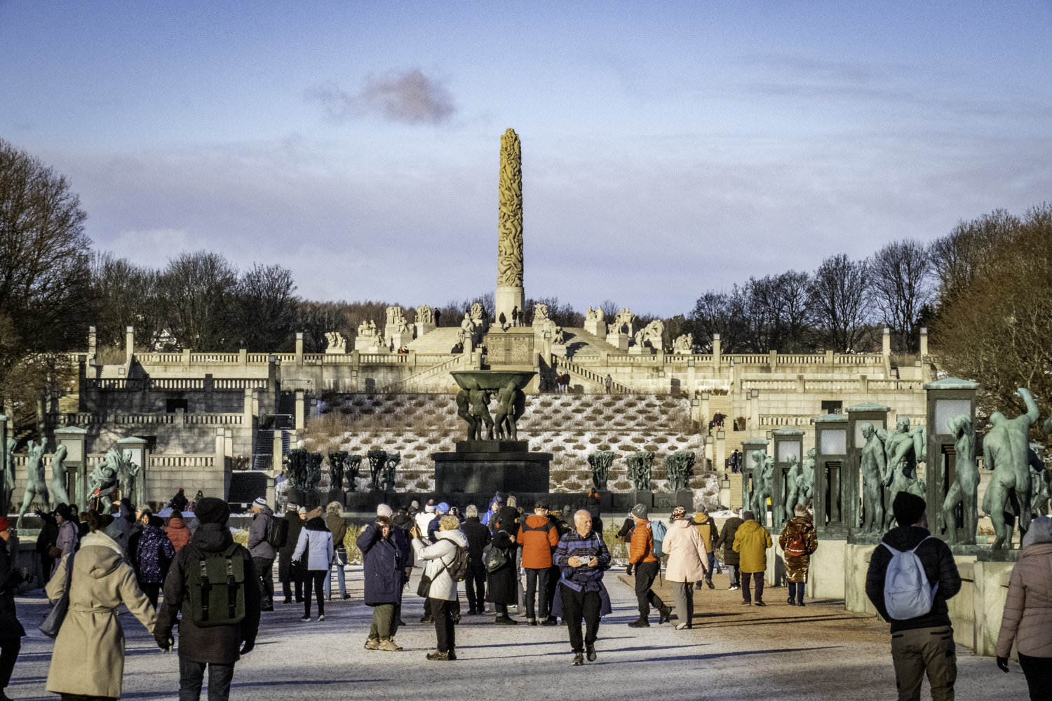 She takes us to a park, Frognerparken Vigelandsparken, where a famous artist, Gustav Vigeland, carved thousands of sculptures, mostly of naked subjects. We are told that he never explained his subjects as he was telling a more esoteric story. He was basically unknown to the outside world because he refused to allow his sculptures to be outside of this specific park.