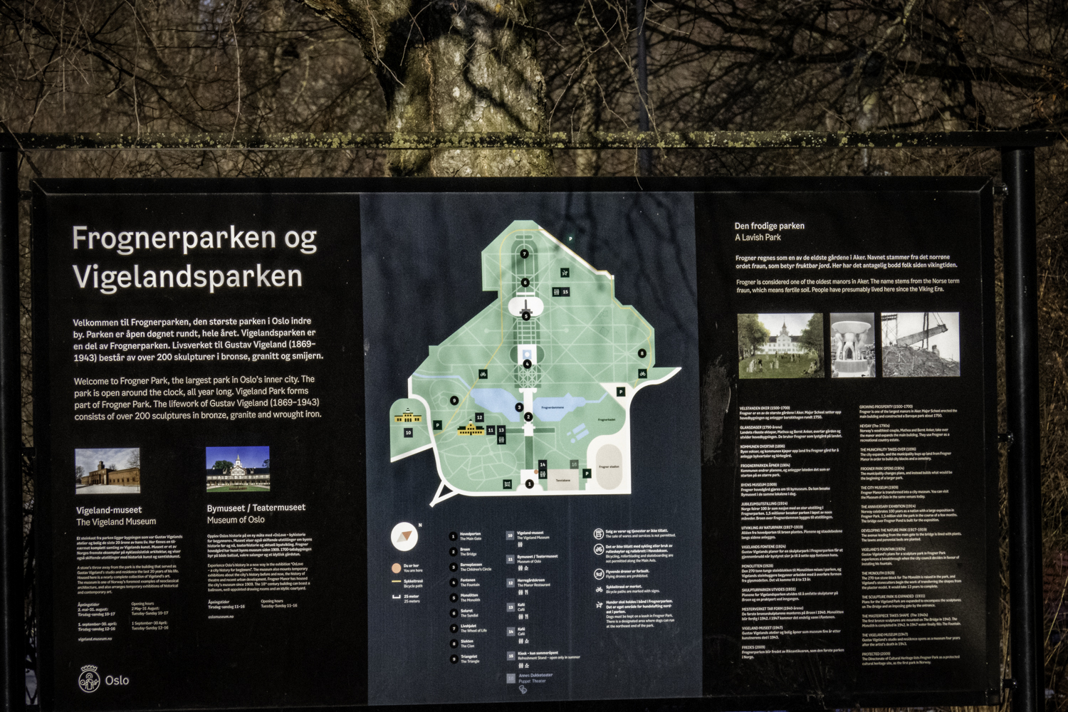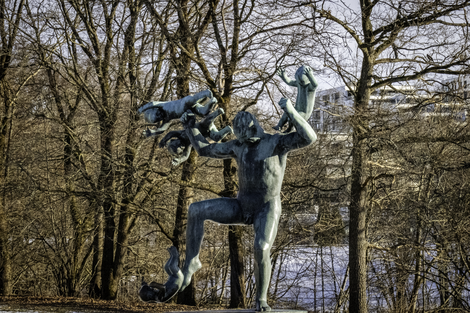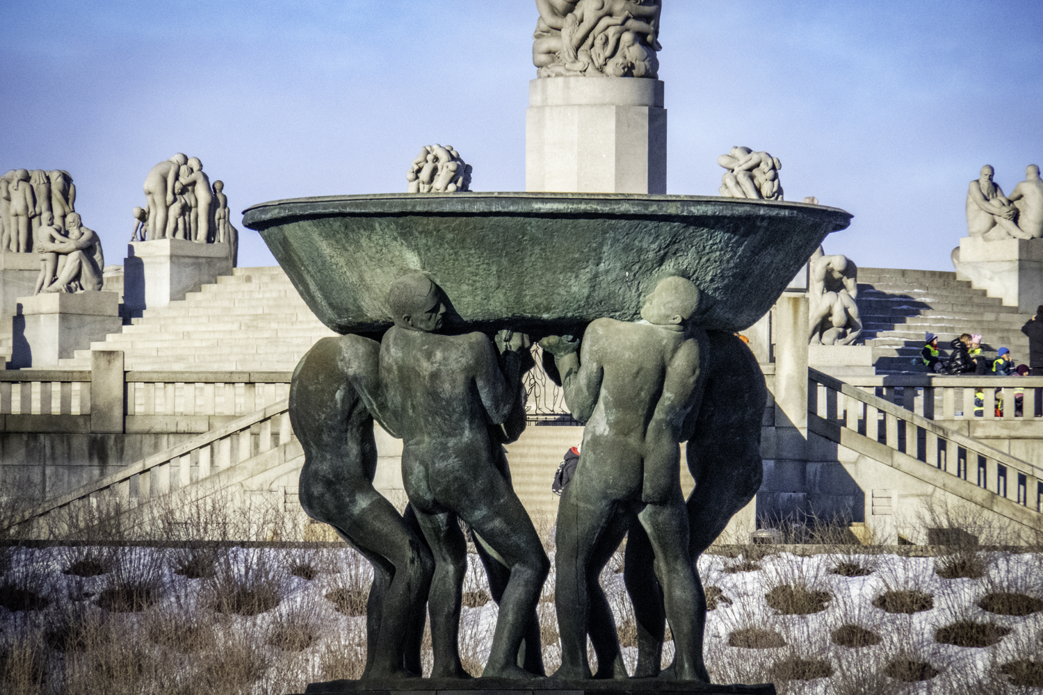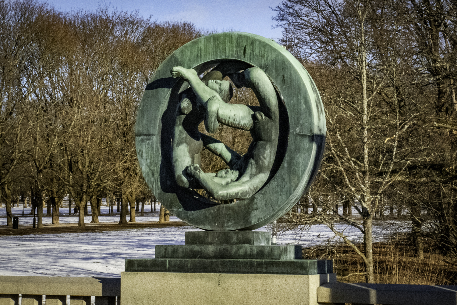 She takes us to a park, Frognerparken Vigelandsparken, where a famous artist, Gustav Vigeland, carved thousands of sculptures, mostly of naked subjects. We are told that he never explained his subjects as he was telling a more esoteric story. He was basically unknown to the outside world because he refused to allow his sculptures to be outside of this specific park.