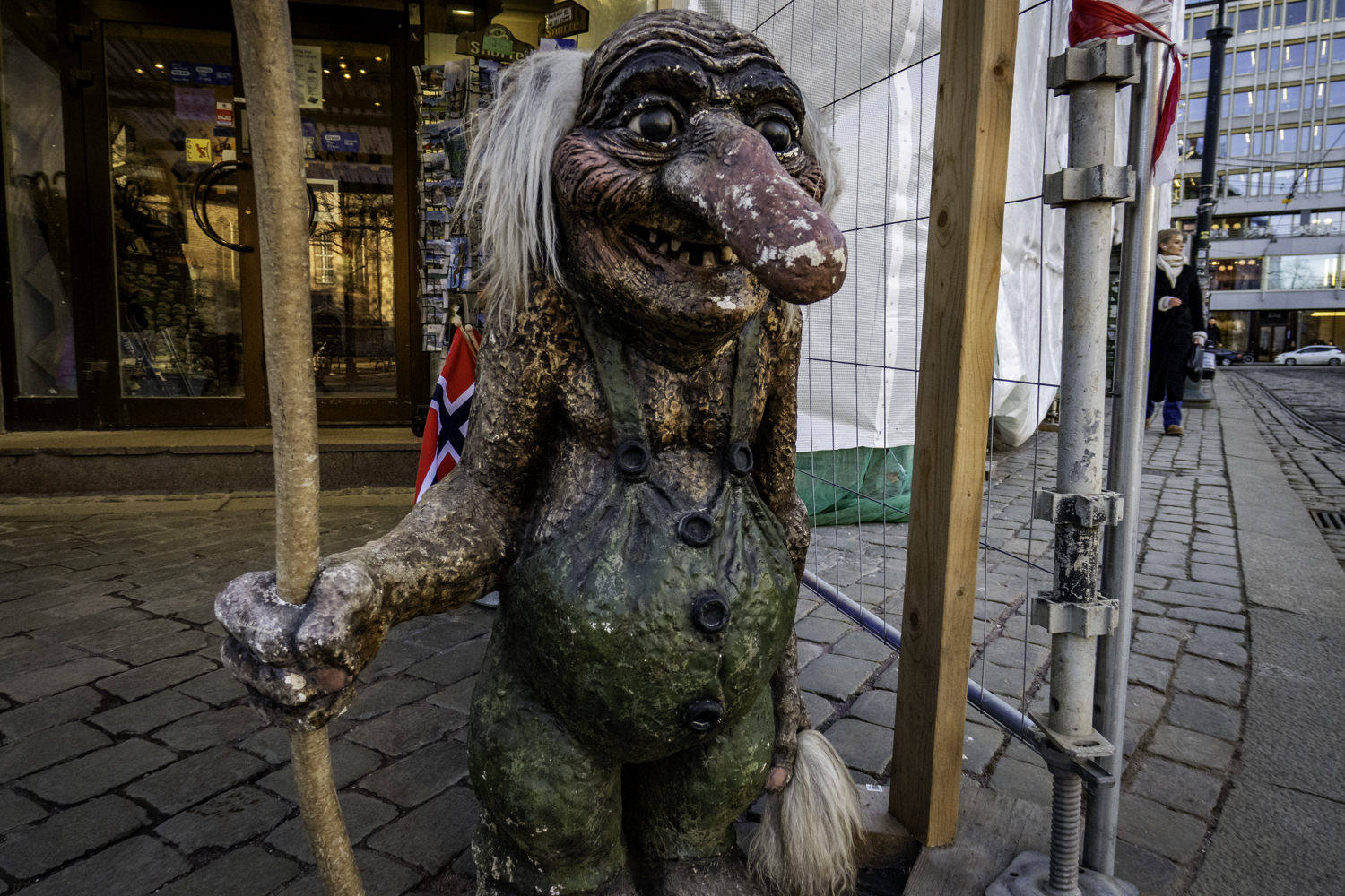 Then we stroll through the city leisurely and stop at Olivia’s Bar and have lunch. Comical trolls greet our cameras on the sidewalks. The waitress in Olivias Bar, Rikke, is amicable. It turns out that she was in the Norwegian Marines and worked with dogs. She was impressed with our story of dogsledding a week earlier.
