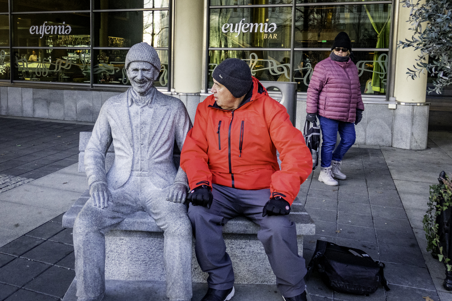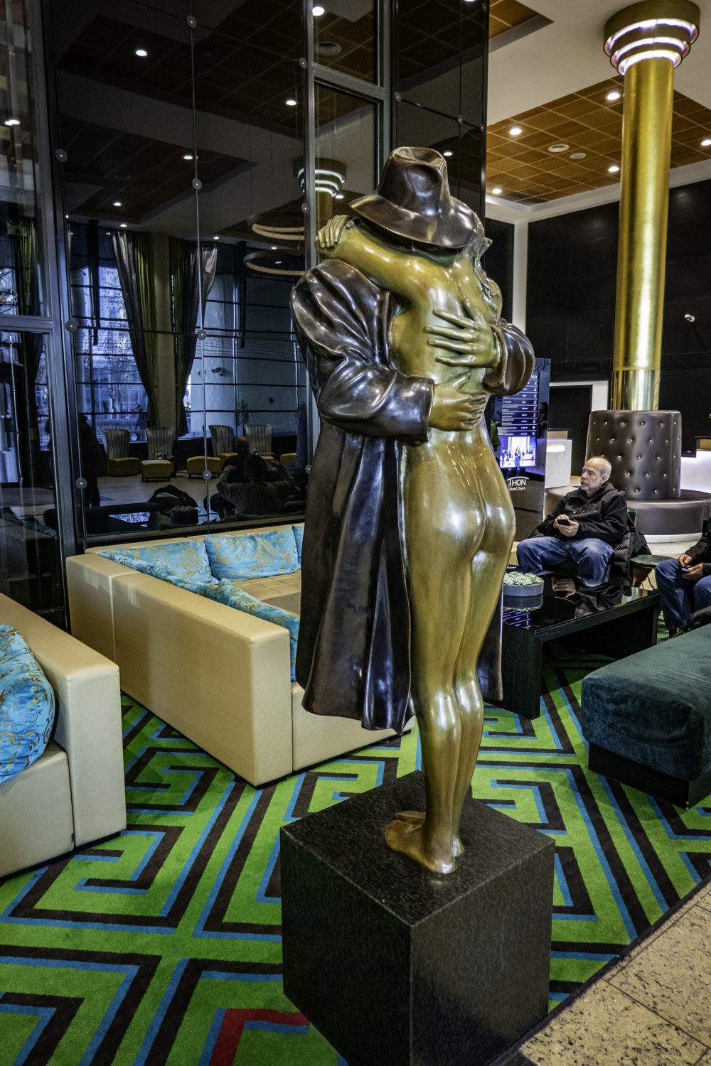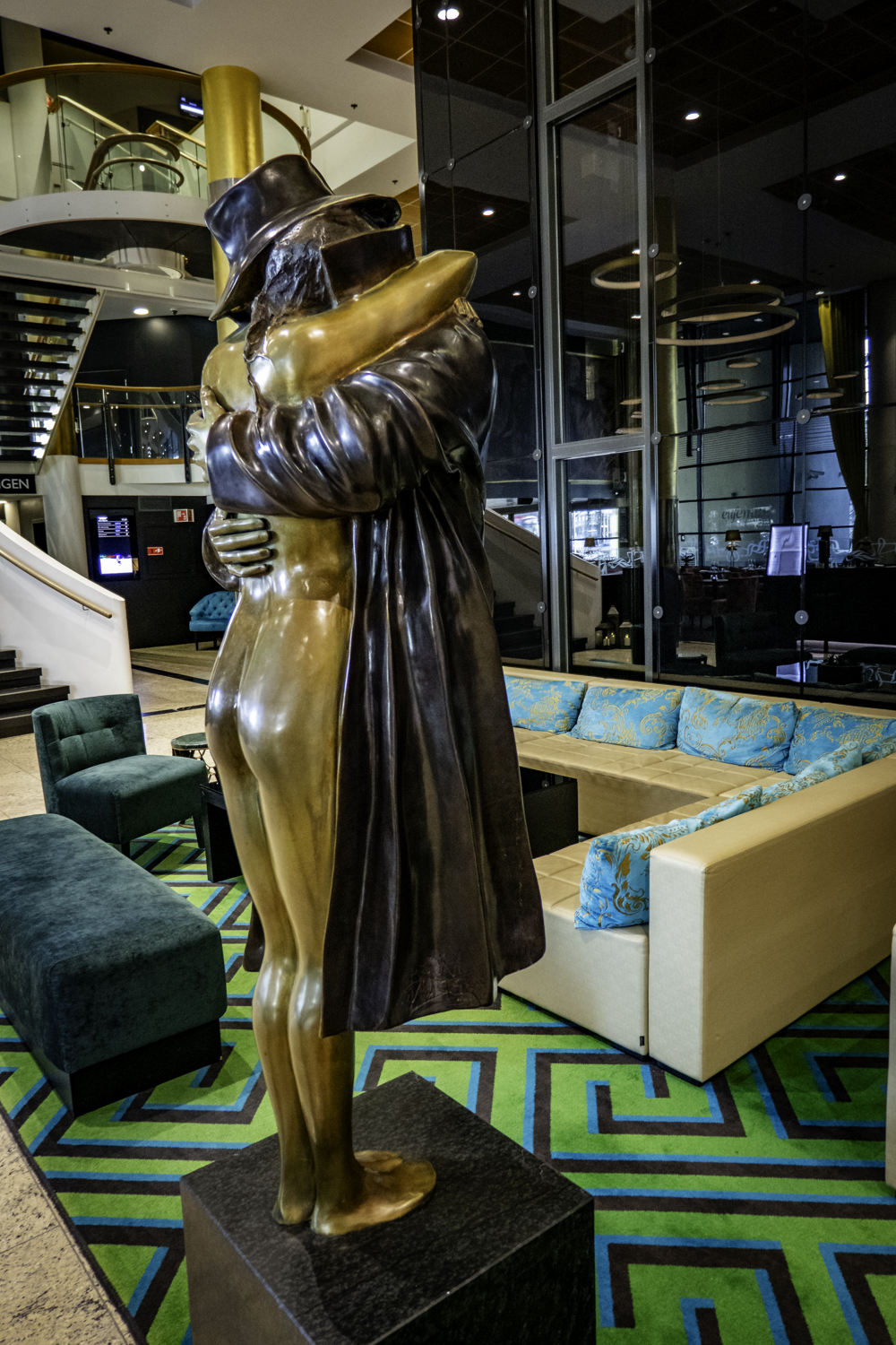 We arrive at the Thon Hotel Opera around 4:00 PM and take a nap. On the way in, there is an interesting statue sitting on a bench and we just know he wants to chat! Inside, we find a naked lady hugging the Invisible Man! At 6:30 PM, we join our group for a farewell dinner and wish each other well. This is the end of the Tour for most. I’m sure we’ll stay in touch with some of the group. Hugs abound as we all bid farewell!