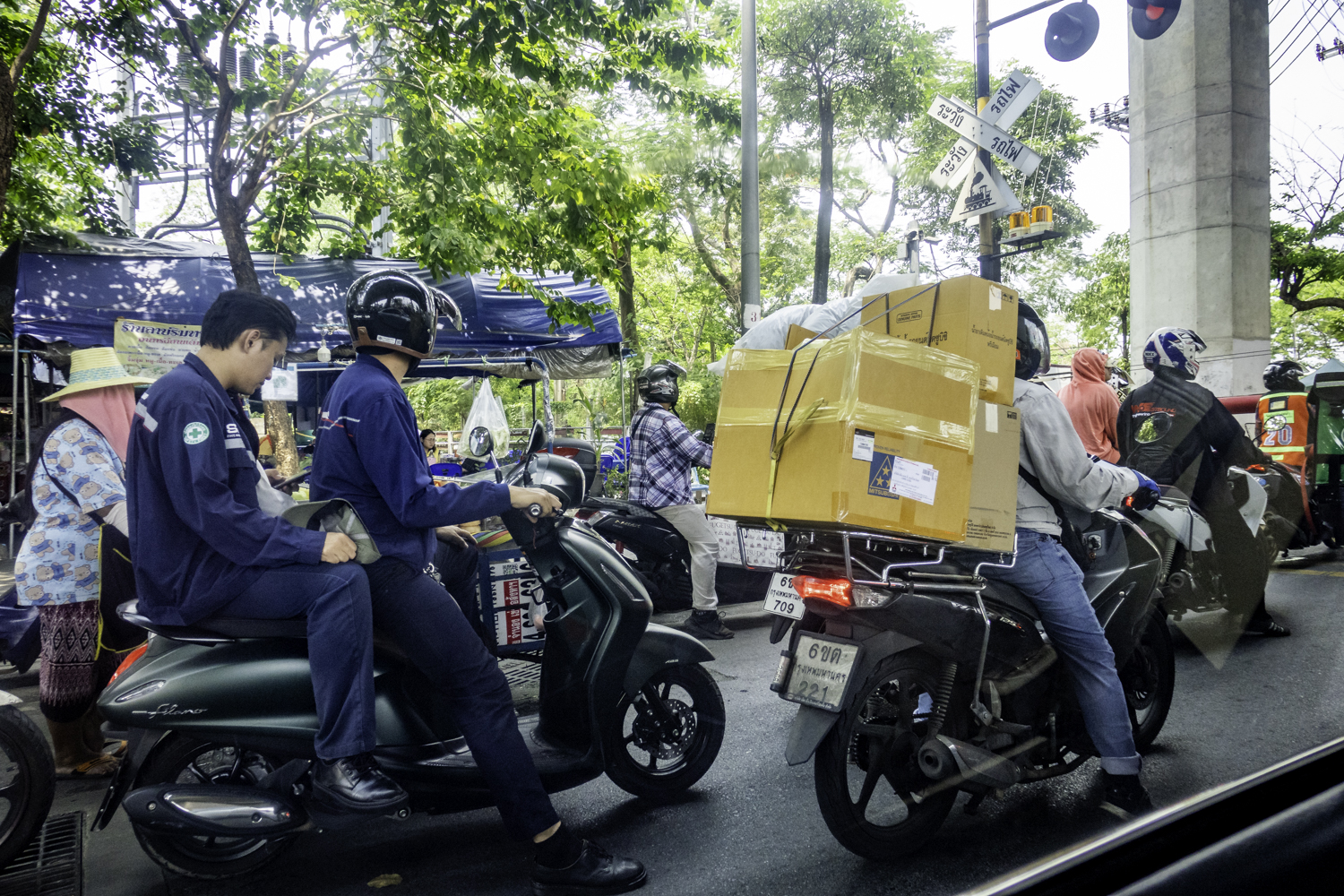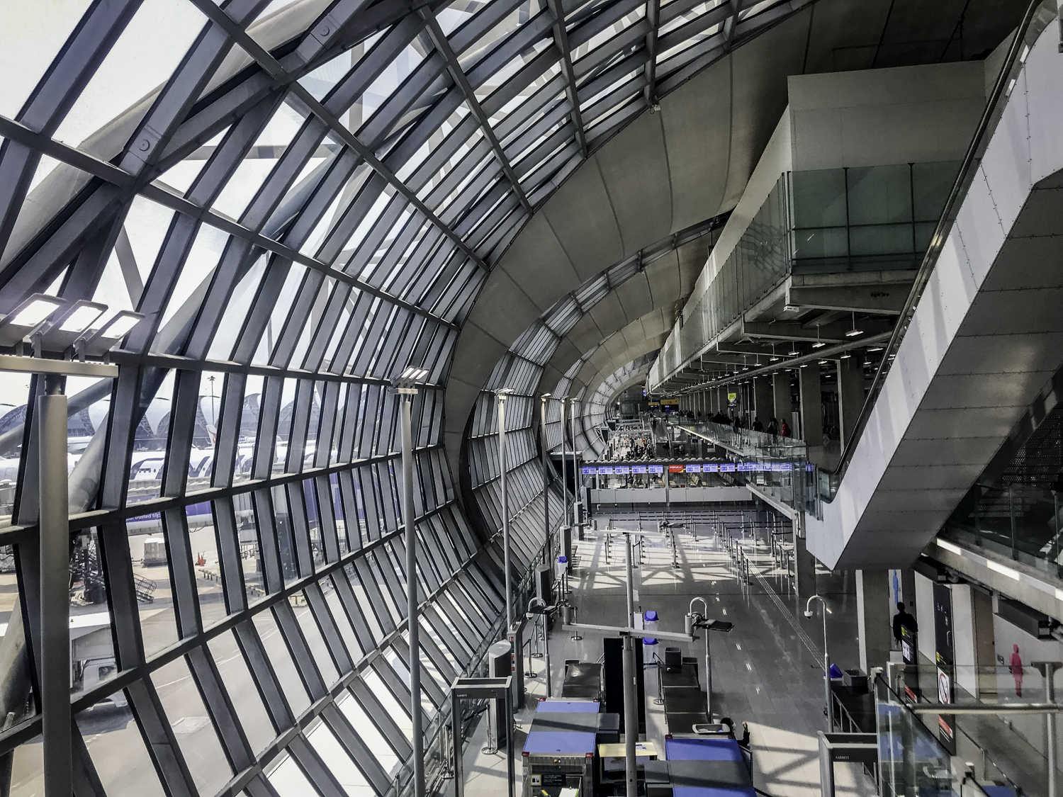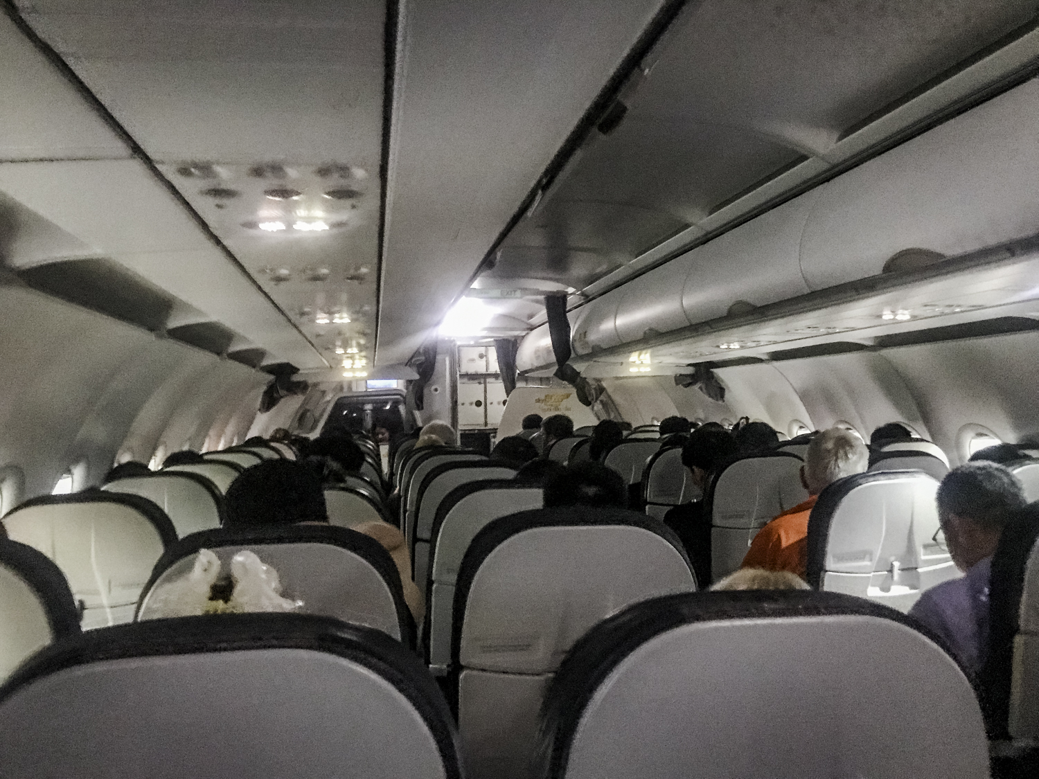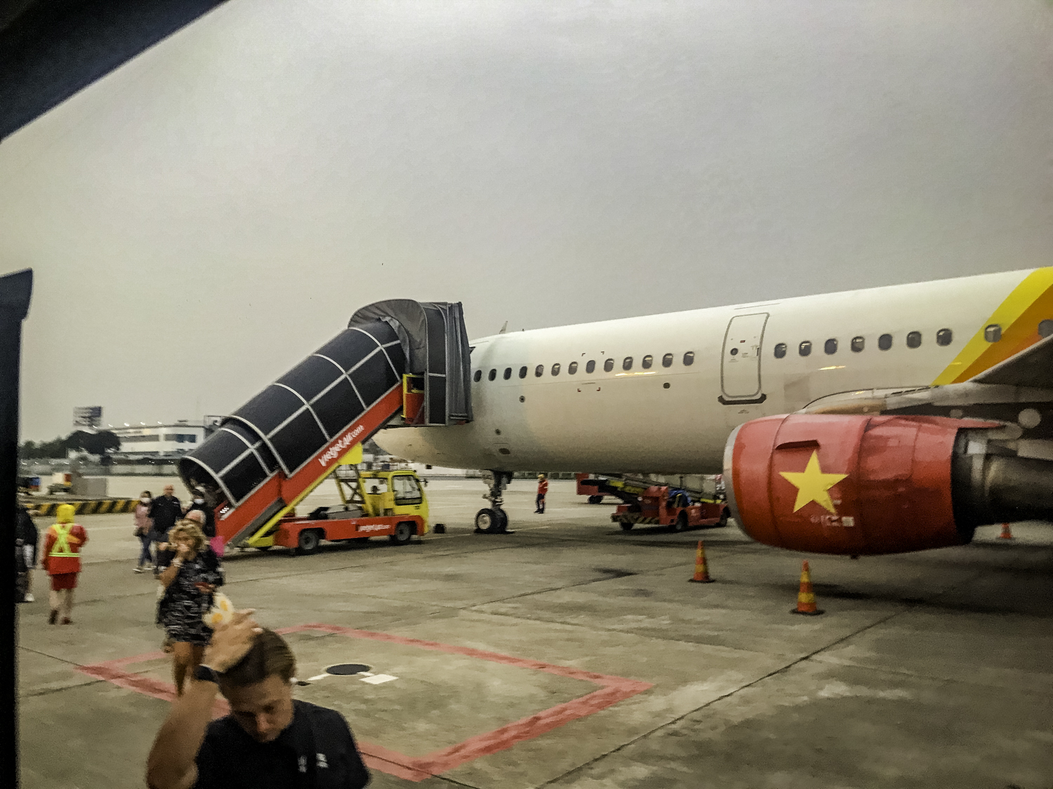 We check out at noon and hire a Bolt to BKK airport. It takes a whole 2 minutes for the ride to arrive! Then it takes most of an hour to weave through traffic to the airport. We tip our driver and take our luggage into the airport and check it in. We have to go through passport control as we are flying to a different country.