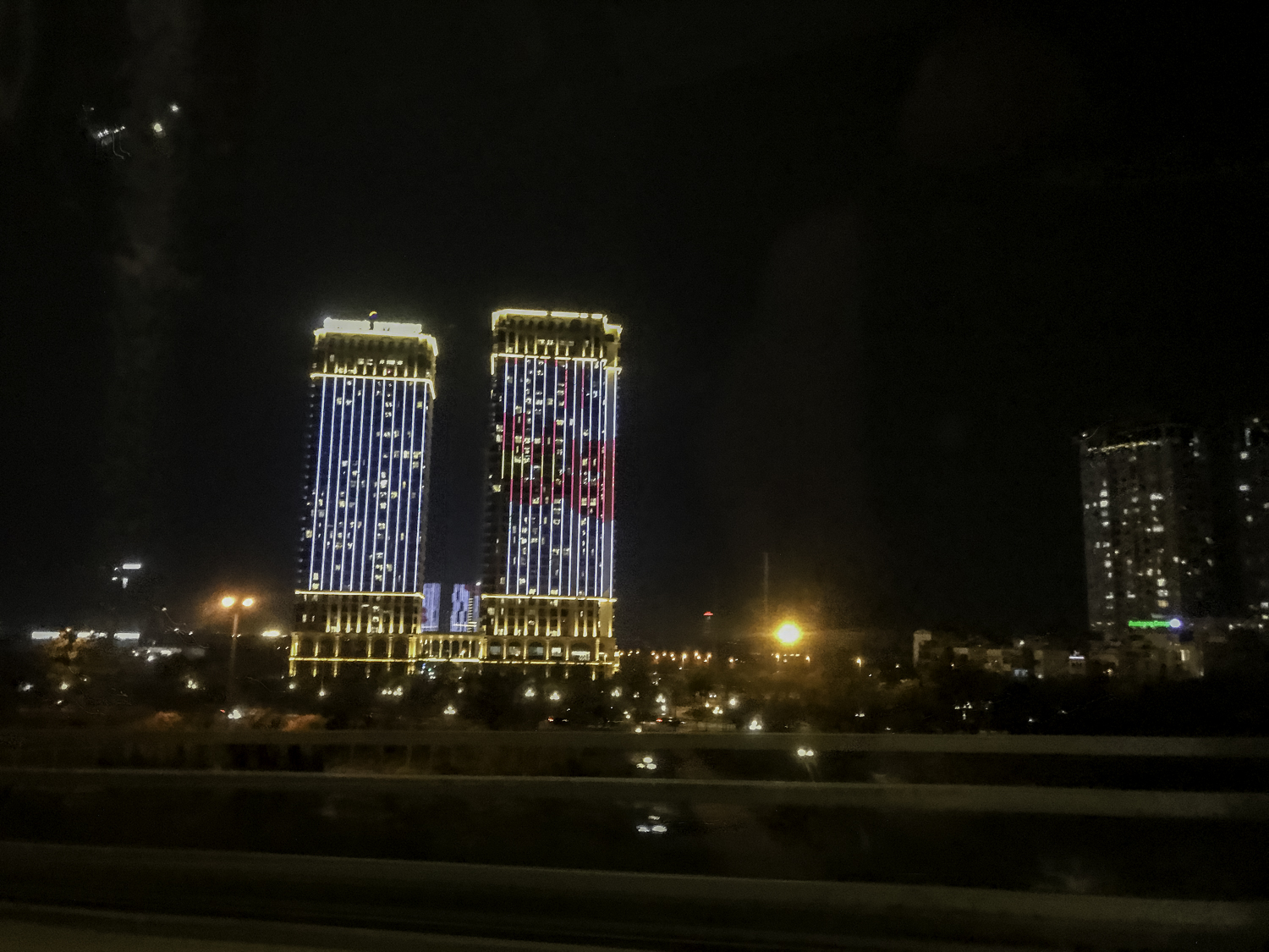 The ride to our next hotel, TK123, takes approximately one hour. We see many colorful buildings along the way as dusk turns to night. We arrive at the hotel at 7:30 PM. Tour operator Danny is waiting for us. He will coordinate our trip for the next 12 days. We won’t see him until near the end of our trip as he is only coordinating our itinerary. We will have different Guides in each city.
