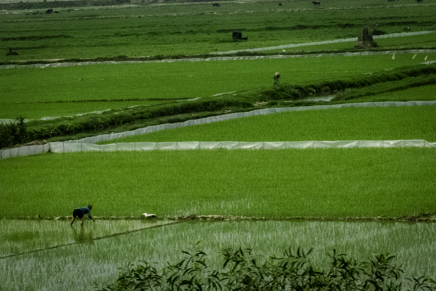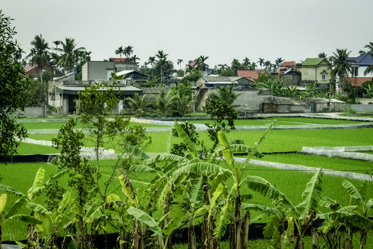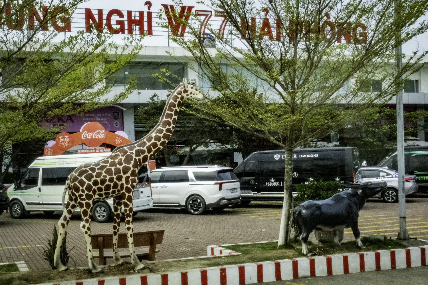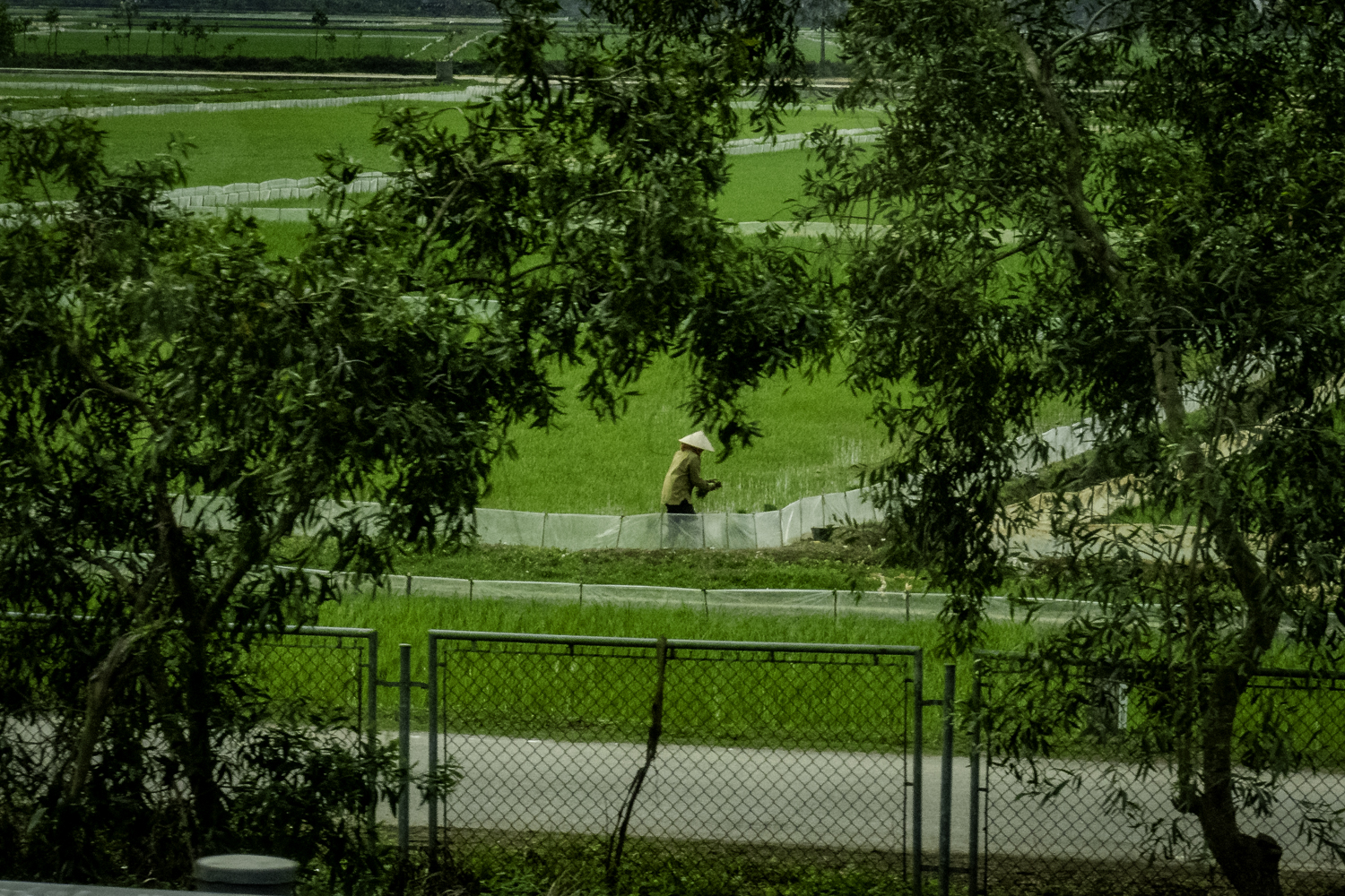 The Breakfast Buffet today is very good again. After we eat, we go up to our room and pack up our bags. We also pack a day bag for our next adventure. The hotel will store our bags for us. We board the bus at 9:00 AM and drive off towards the next part of the tour. It will be a 3 hour bus ride. The sights are interesting on the drive through rice paddies with sights of what appears to be antennas that crudely look like fake trees and graveyards and memorials in the rice paddies!