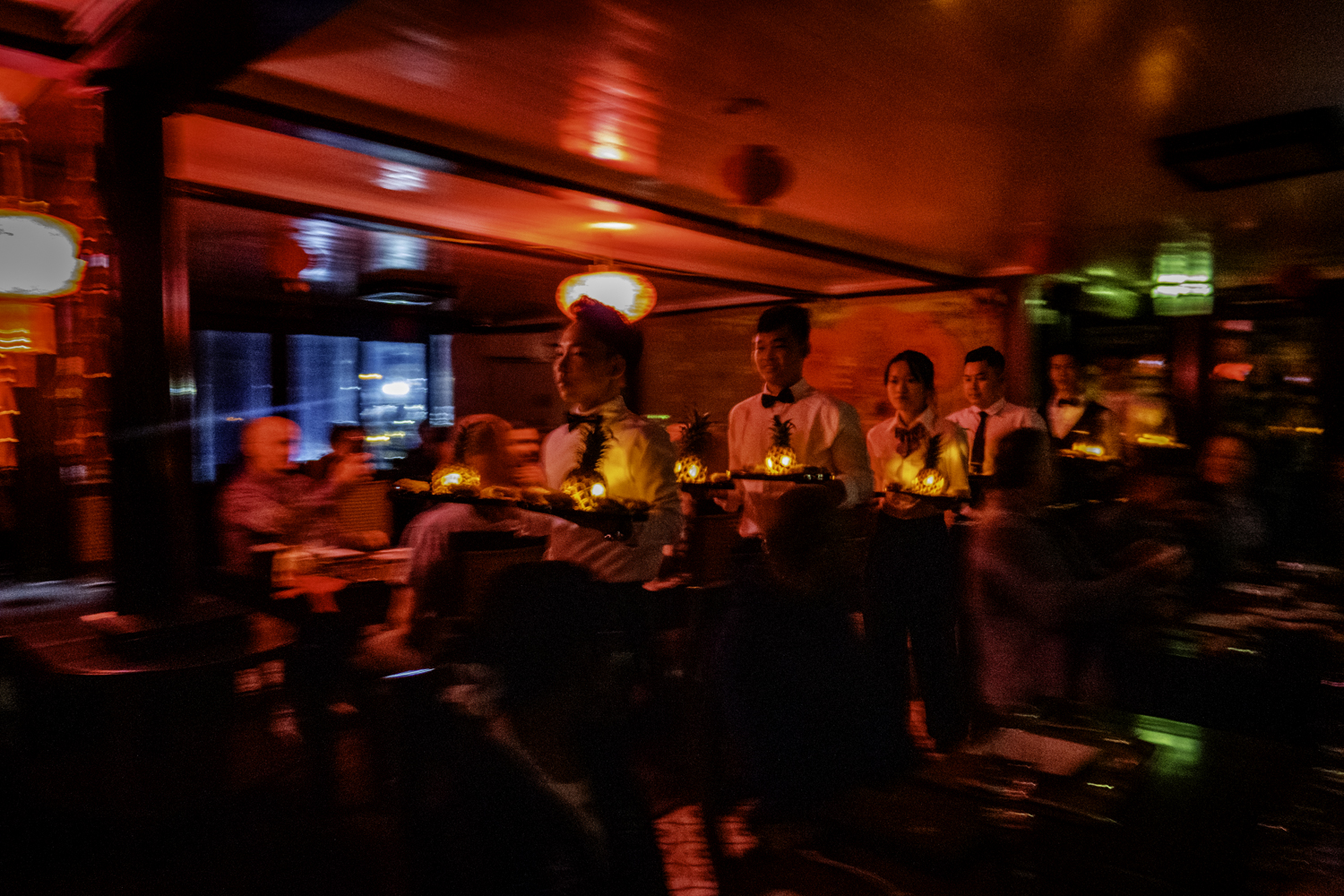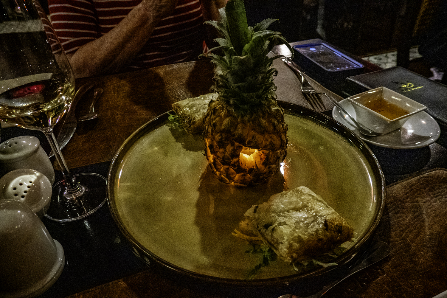 Night photos are fun. Dinnertime comes around and the waiters put on a little candlelit show of their own!