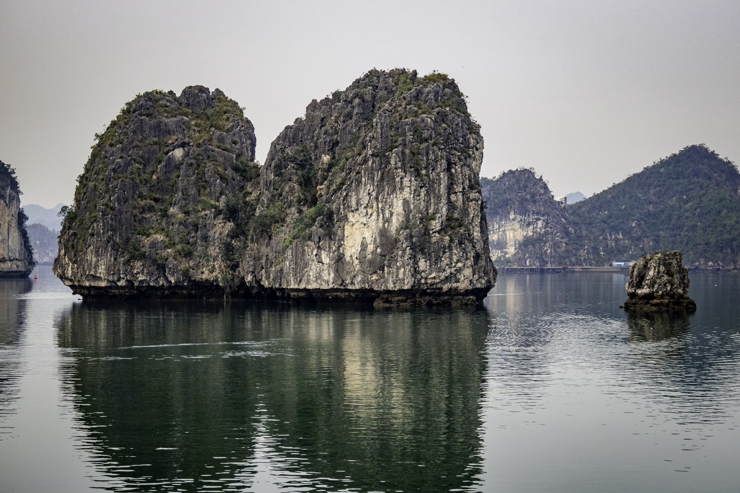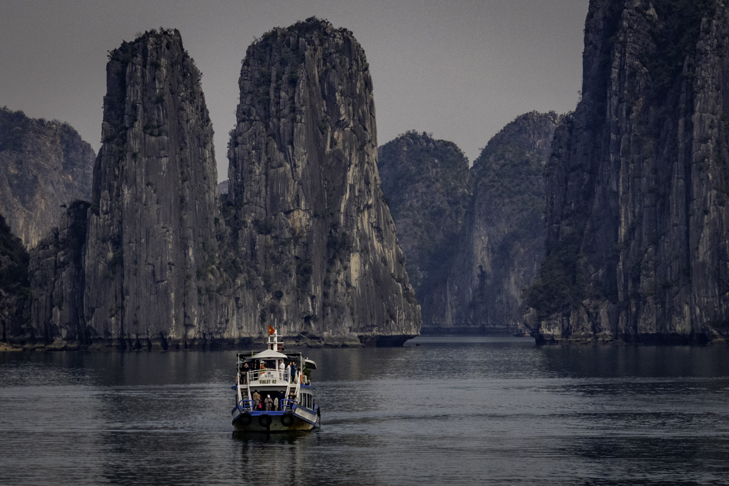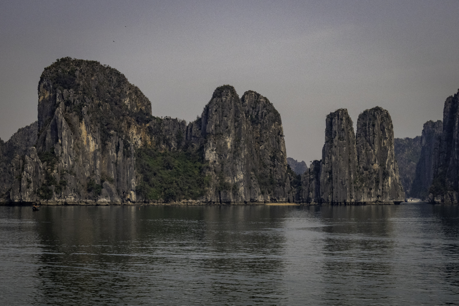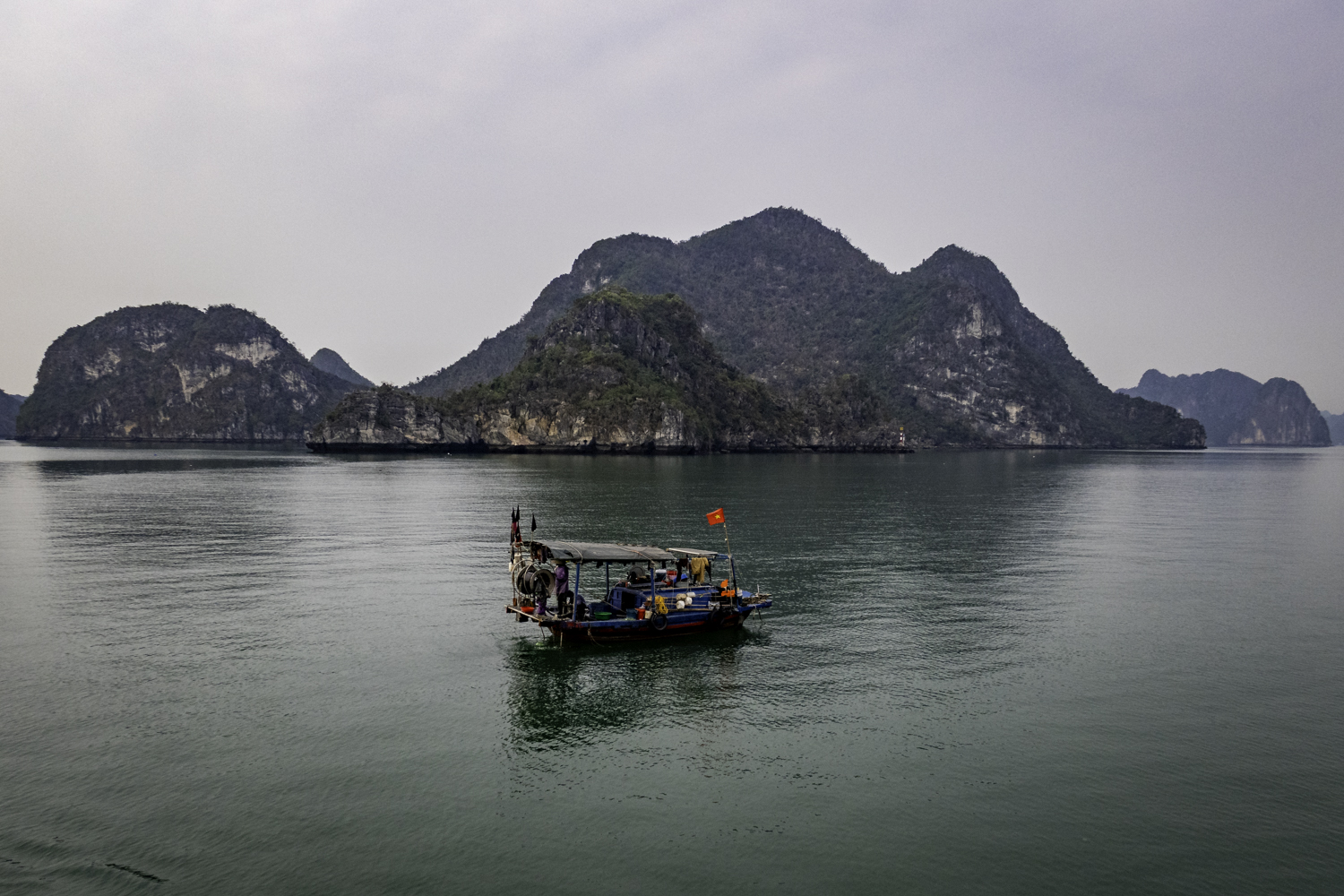 We arise at 6:30 and have a buffet breakfast on the boat. Very good Vietnamese food. The boat has pulled it’s anchor and is under way. There is an early morning Thai Chi class on deck that Elee joins. The bay is very calm as we start to move.
