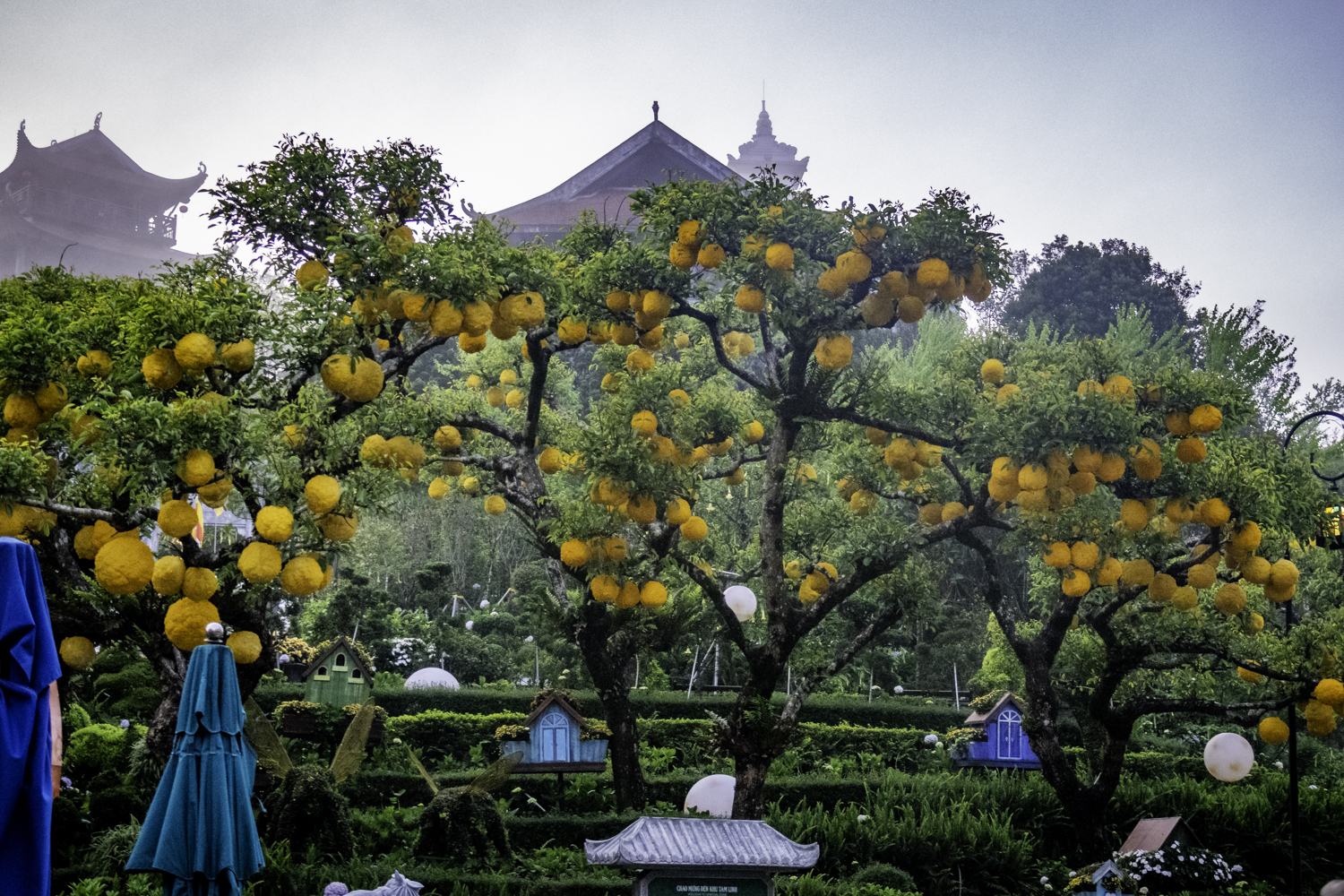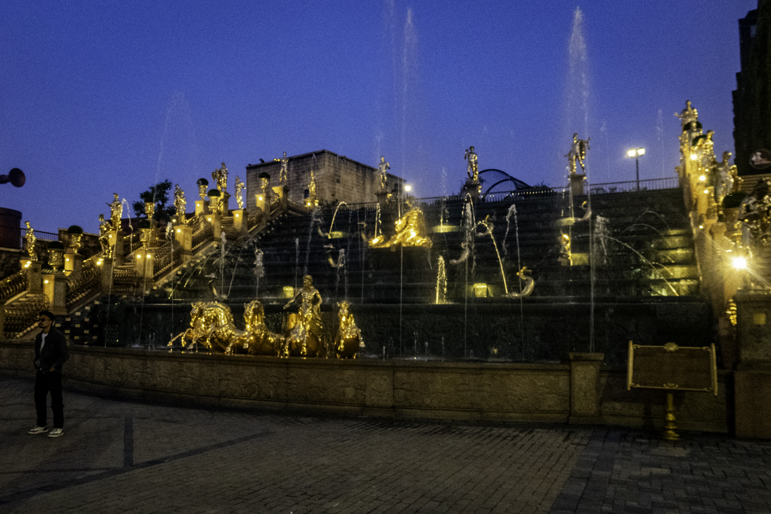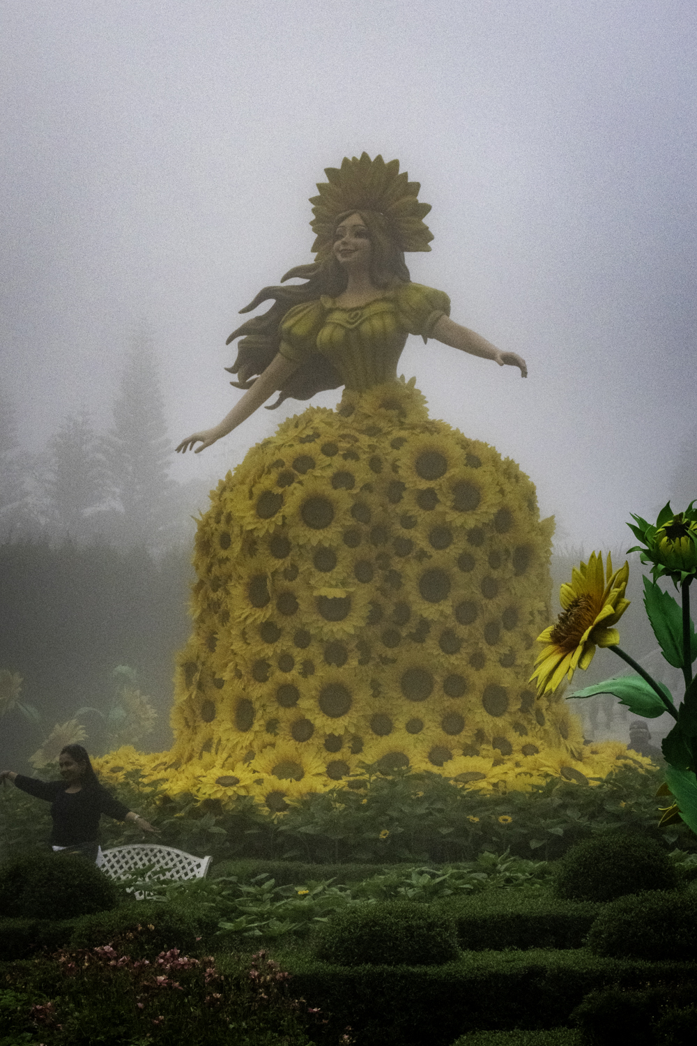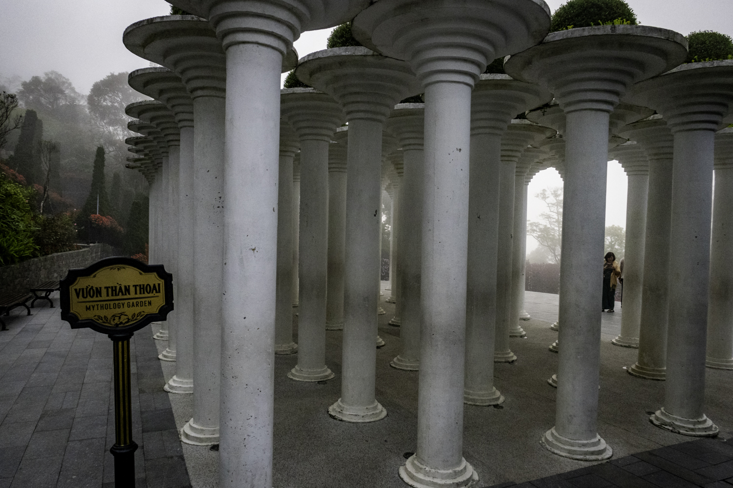 Hwan leads us up and up and tells us to keep going up. We go up the path and find pagodas and views to excite our cameras again. It seems odd to be in the top of a Chinese building looking down on medieval Europe!  This is an amusement park built amongst a (fake) French Village on top of a mountain reached by one of the longest cable car’s in the world.  Keeping it’s original theme of when the hill station was a resort for French tourists back in the Colonial days.  It’s a hugely popular destination for families – a Medieval castle, cobblestone paths, a Neo-Classical cathedral, manicured gardens and (for the parents) a beer garden.  There’s a wax museum, an “Alpine Coaster” ride, an underground amusement park with rides and shows, countless restaurants and food stalls.