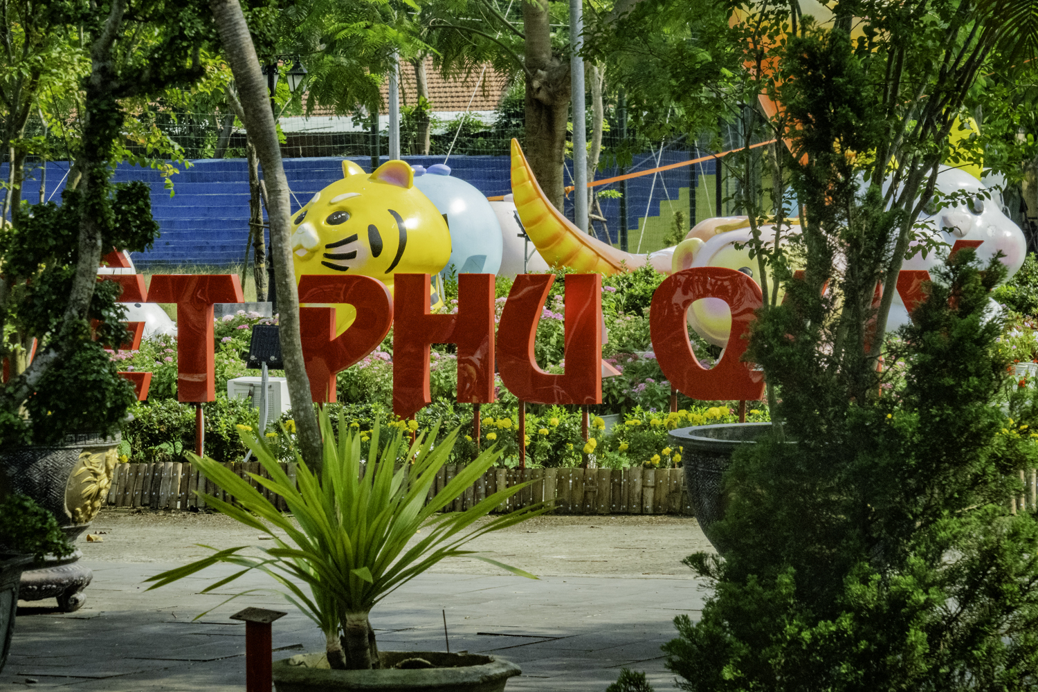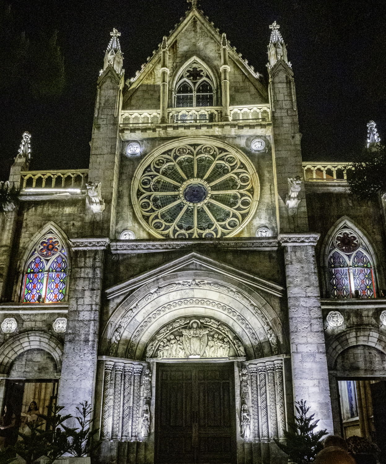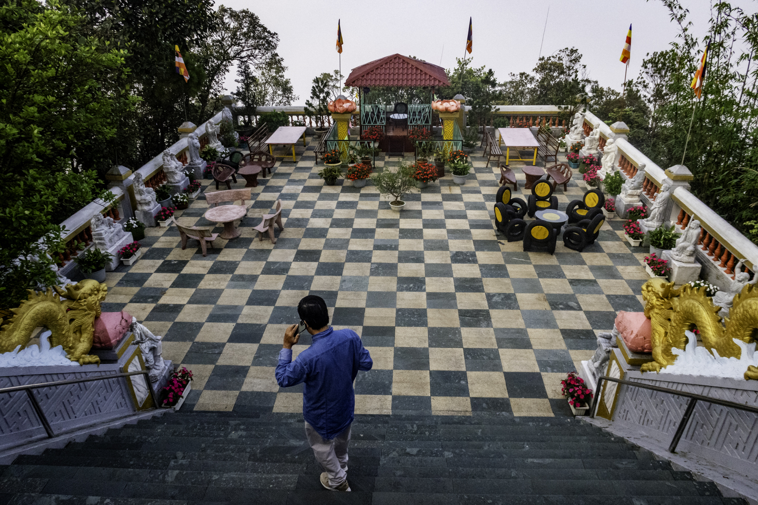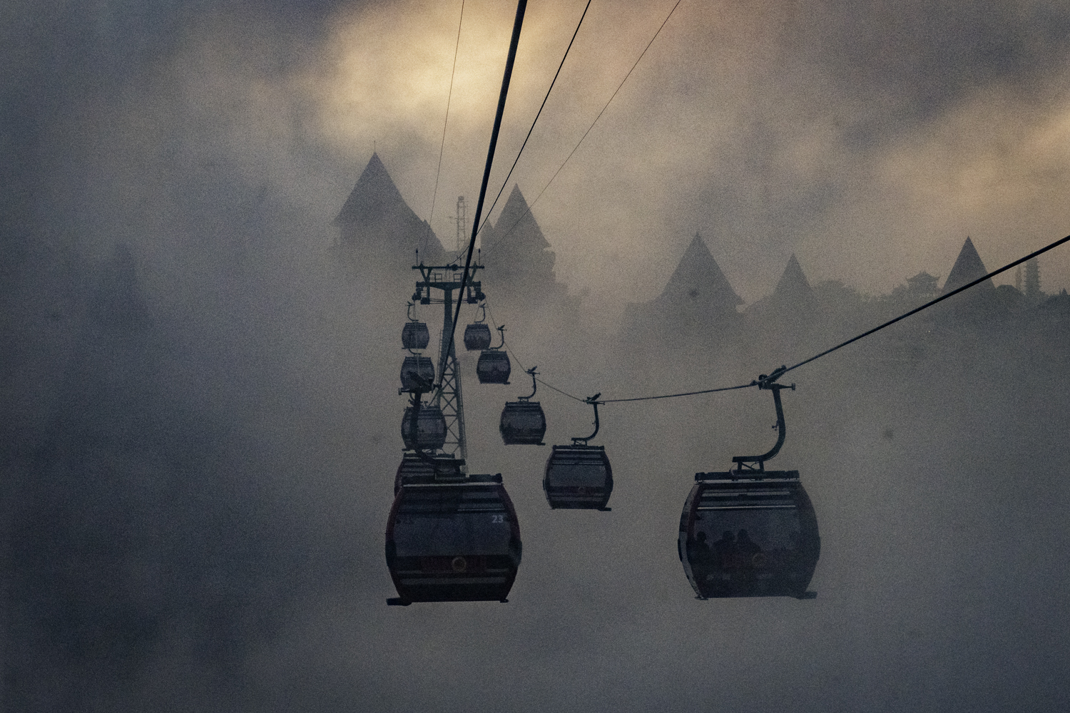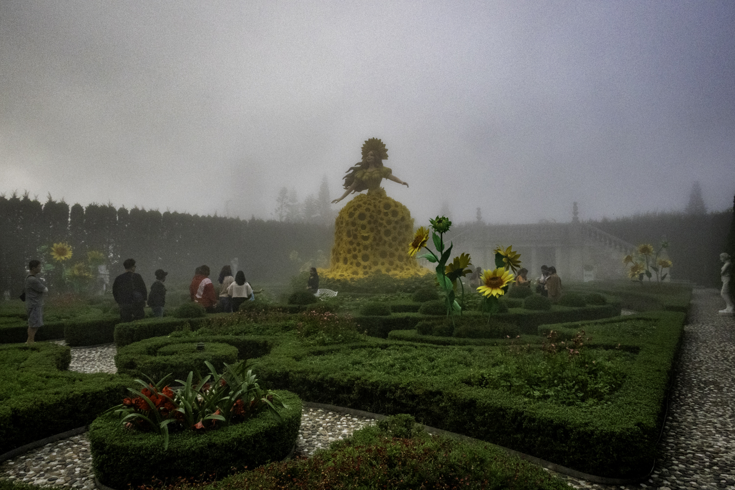 Hwan leads us up and up and tells us to keep going up. We go up the path and find pagodas and views to excite our cameras again. It seems odd to be in the top of a Chinese building looking down on medieval Europe!  This is an amusement park built amongst a (fake) French Village on top of a mountain reached by one of the longest cable car’s in the world.  Keeping it’s original theme of when the hill station was a resort for French tourists back in the Colonial days.  It’s a hugely popular destination for families – a Medieval castle, cobblestone paths, a Neo-Classical cathedral, manicured gardens and (for the parents) a beer garden.  There’s a wax museum, an “Alpine Coaster” ride, an underground amusement park with rides and shows, countless restaurants and food stalls.