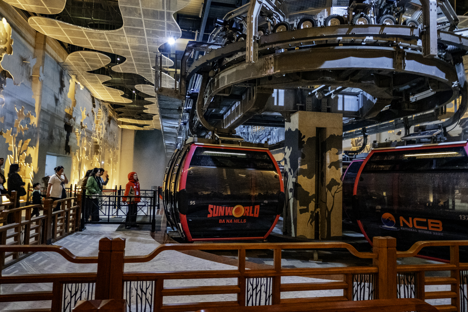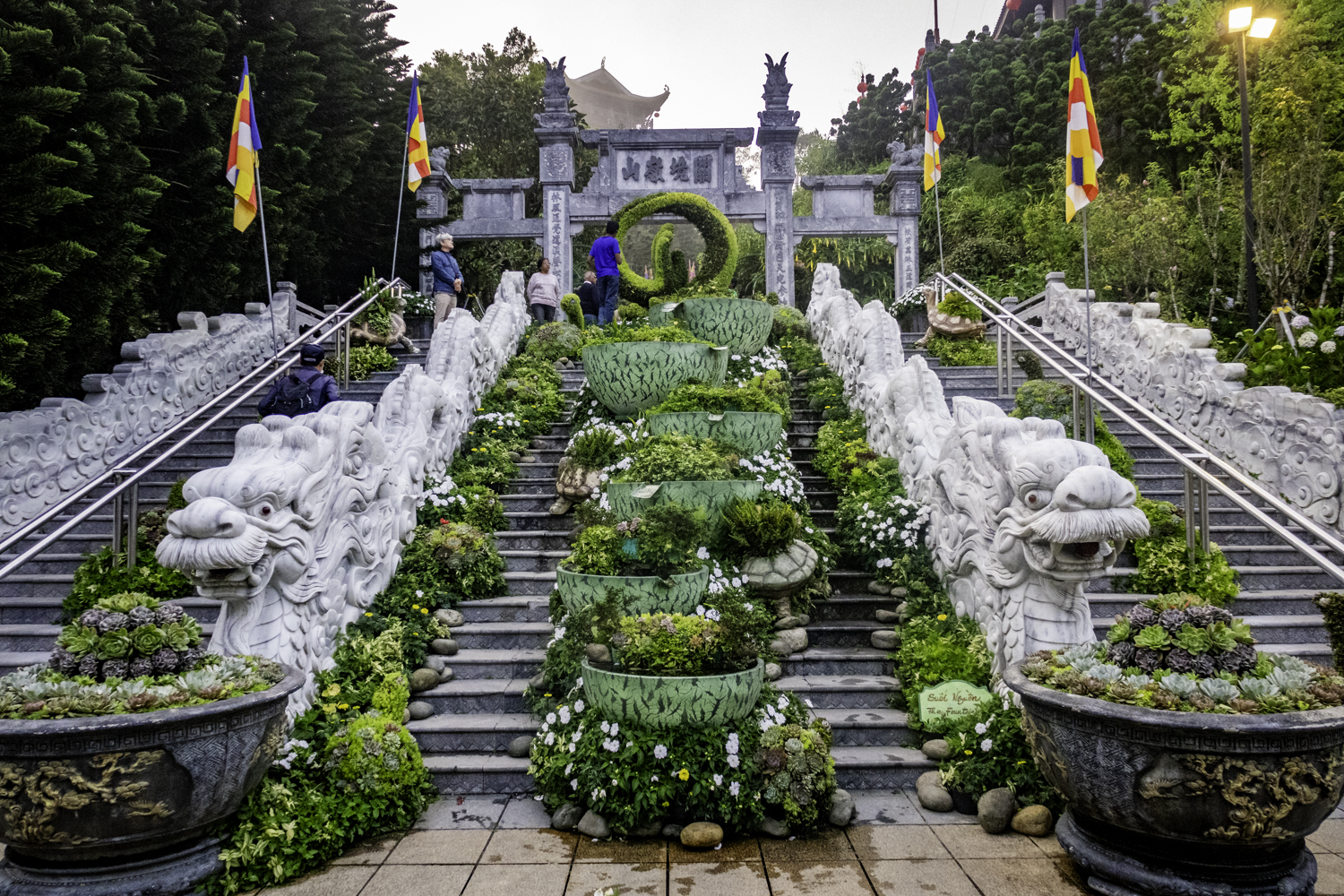 An hour and a half later we arrive at Sun World in the Ba Na Hills, part of Da Nang, and we begin a journey into a building and up a series of 8 escalators, not one of them less than 2 stories! Some 3!