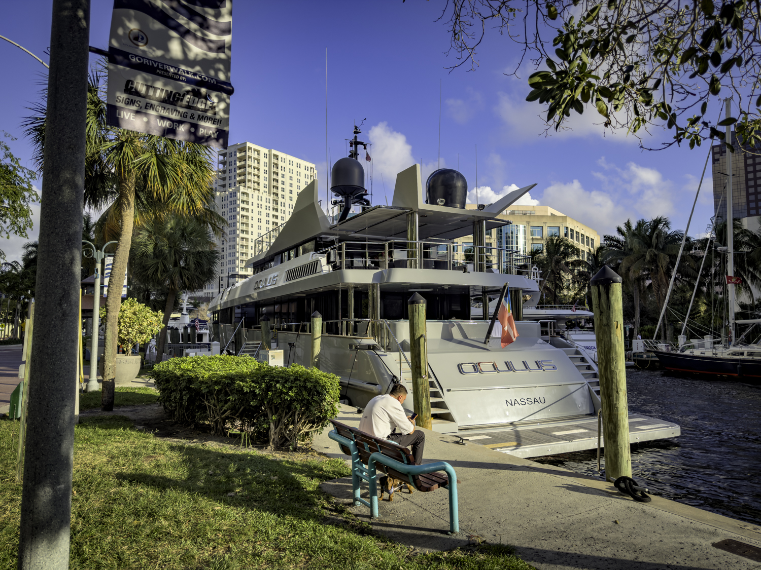 The next morning we check out of our hotel at 11 AM. Our flight doesn’t take off until 9 PM so we take a leisurely drive back to Fort Lauderdale. We find the Riverwalk and spend a couple hours there.