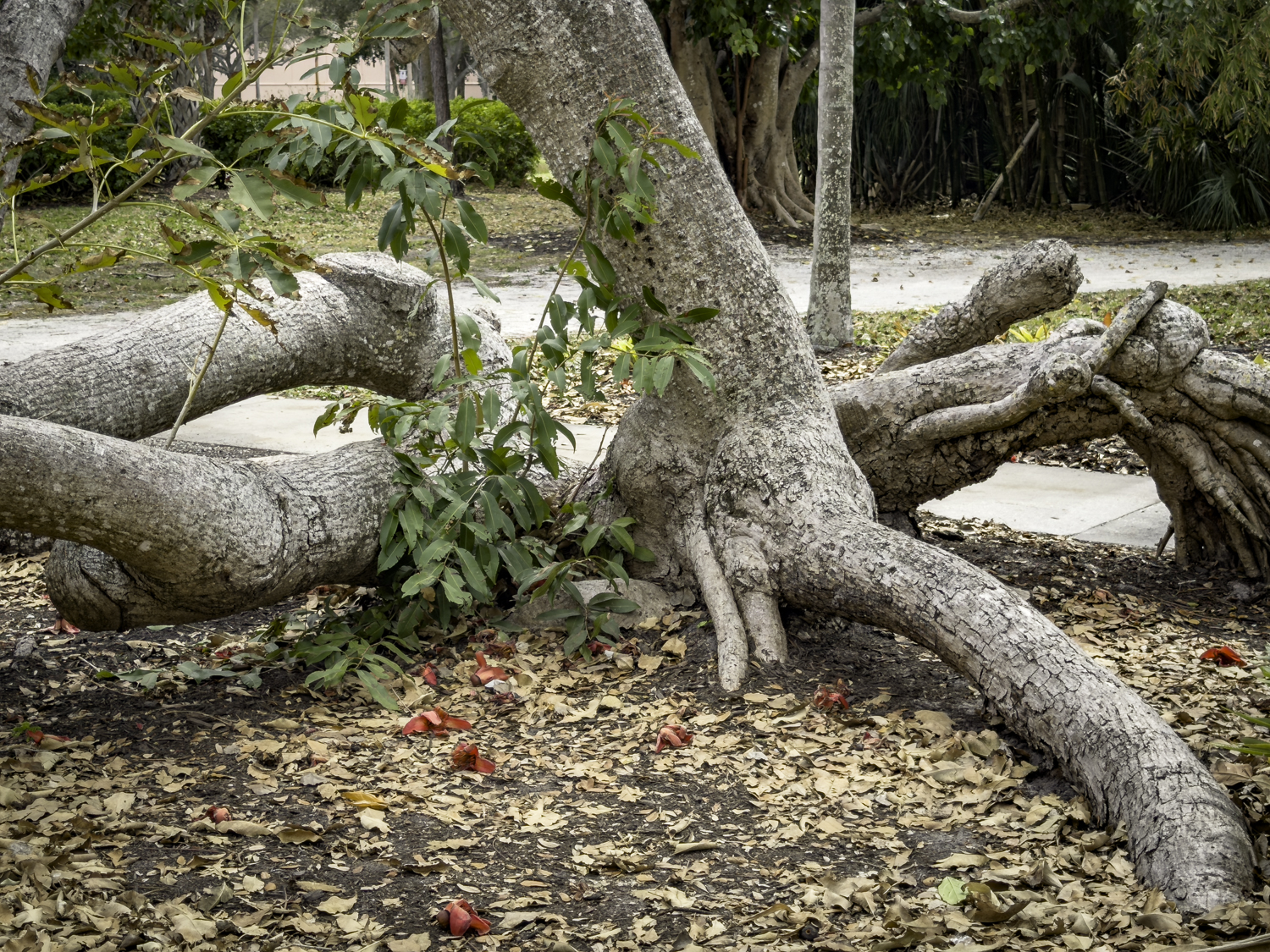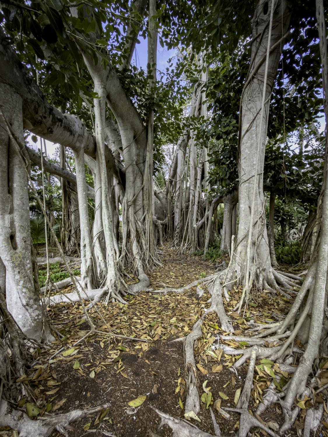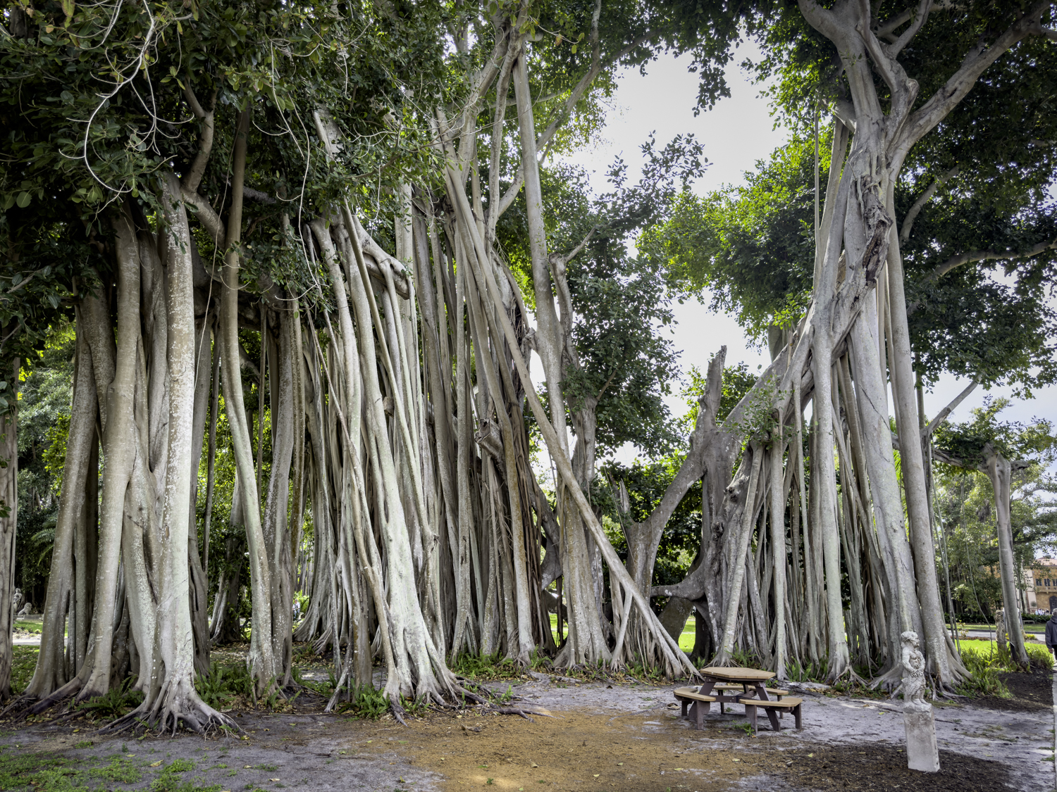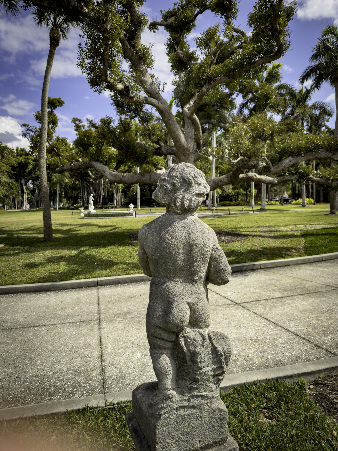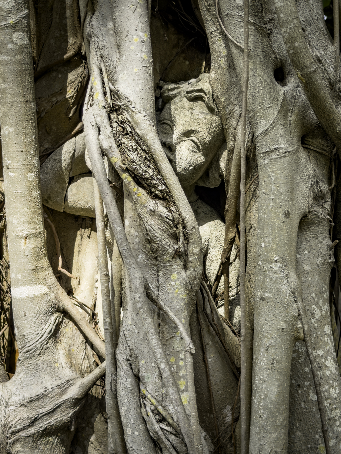 A walk through the grounds reveals many Banyan trees where even a statue of a child has been swallowed up by the trees!