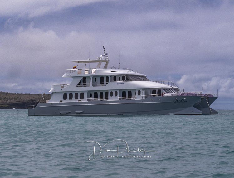 We get in the “Panga” (Zodiac) boats and travel out in the harbor towards our next adventure! Ahhh, here is our home for the next 8 days!
