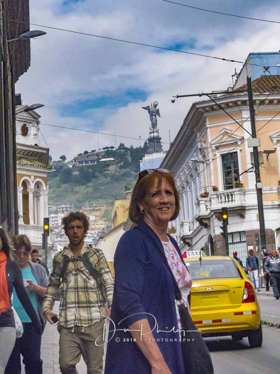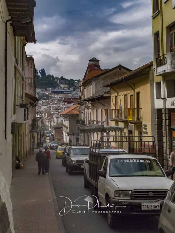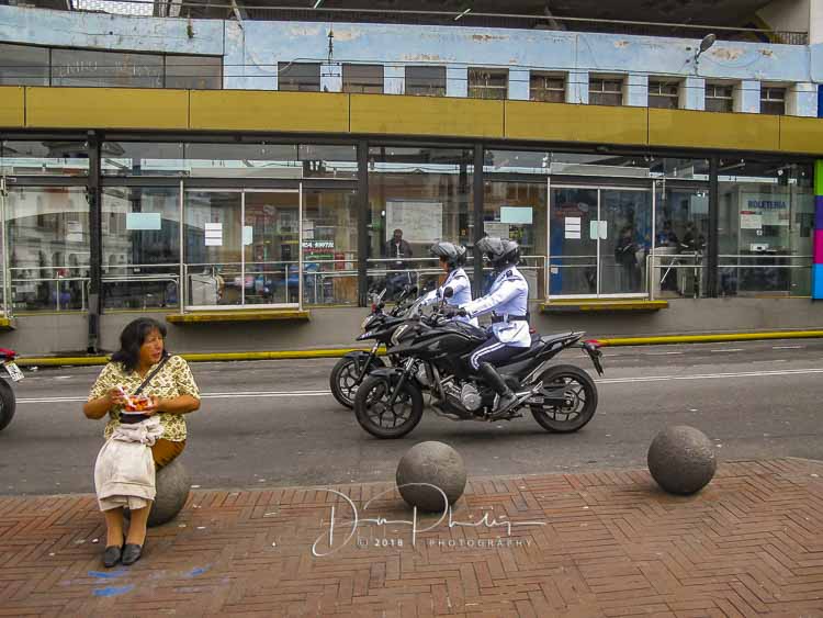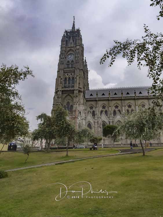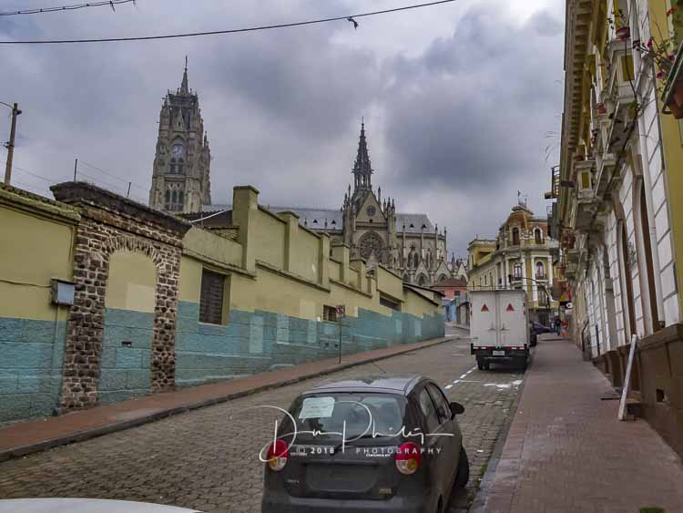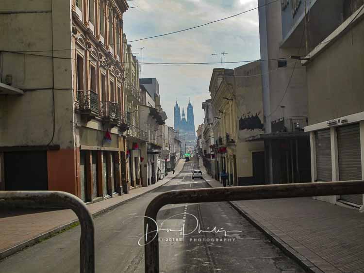 So we have breakfast on our last day in Ecuador and take our last photos from the roof of the hotel. Then we set out for a walk through another end of the Historic District. Working our way along road barricades, we spot another Cathedral in the distance and try to find a way around the closed streets to go visit it. Walking along the open streets next to the closed area, all of a sudden sirens invade the peaceful air and what do you know? Mike Pence’s Motorcade comes right down the street we are on past us. I find it somewhat ironic that I have never witnessed a Presidential Motorcade in my life (although they have happened near me many times, just have never been right there) and I travel to a third world country and get to see one!