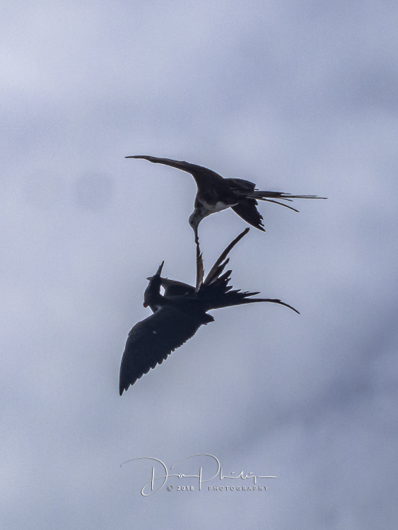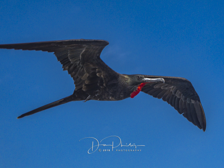 Back on board the ship and it’s not even lunchtime! Kicking back up on top, watching the Frigate Birds flying with us again as we are underway to our afternoon destination. Yes, that little red ‘gullet’ on that first flying bird inflates to that huge red ‘balloon’ during mating season!