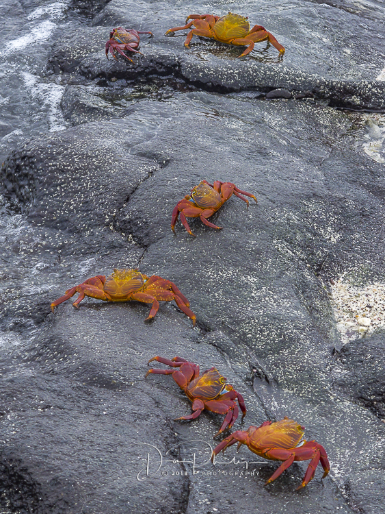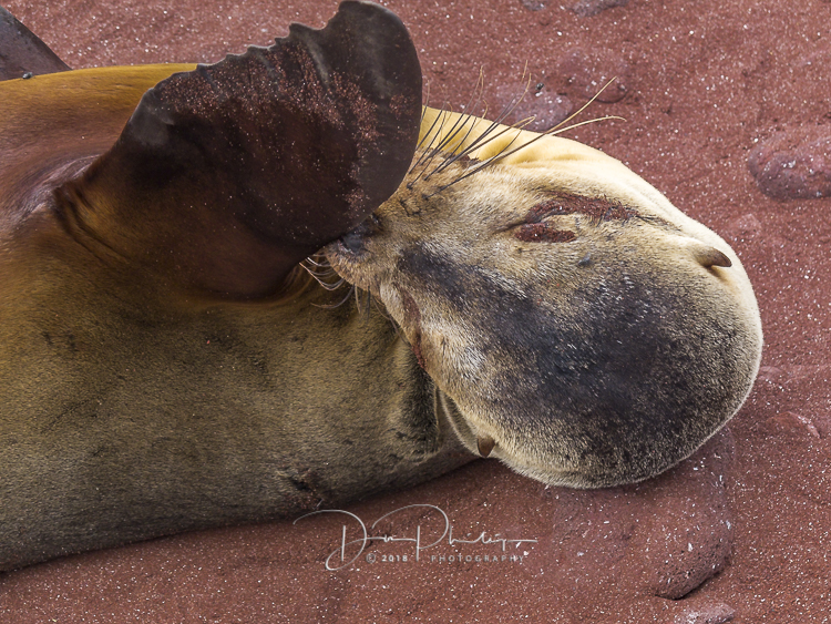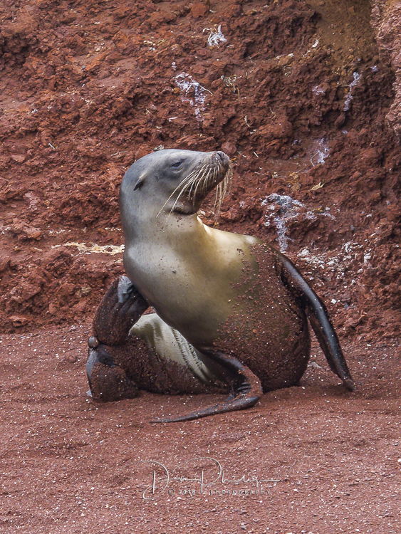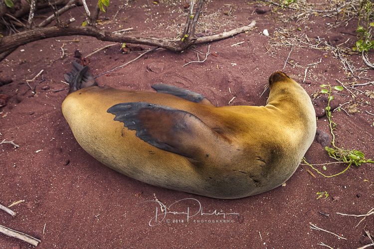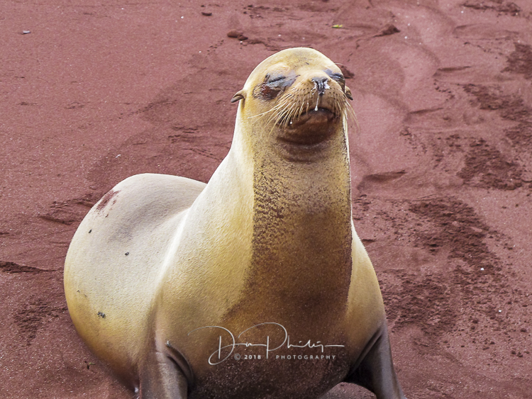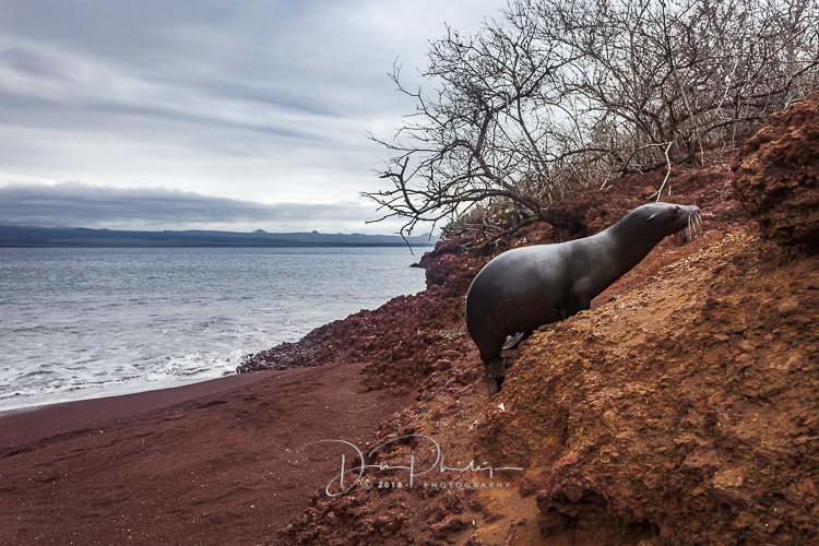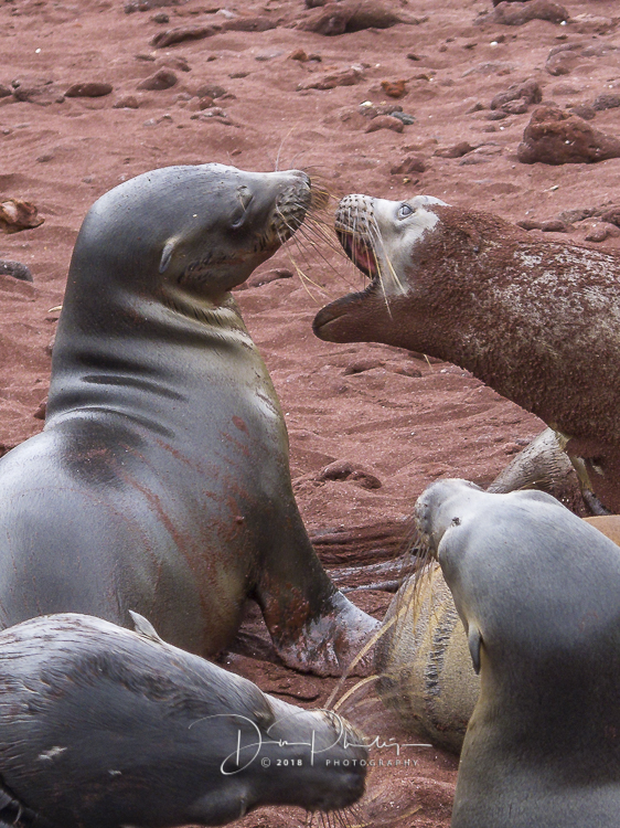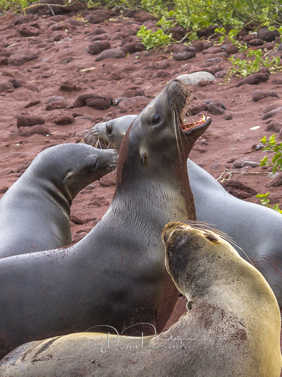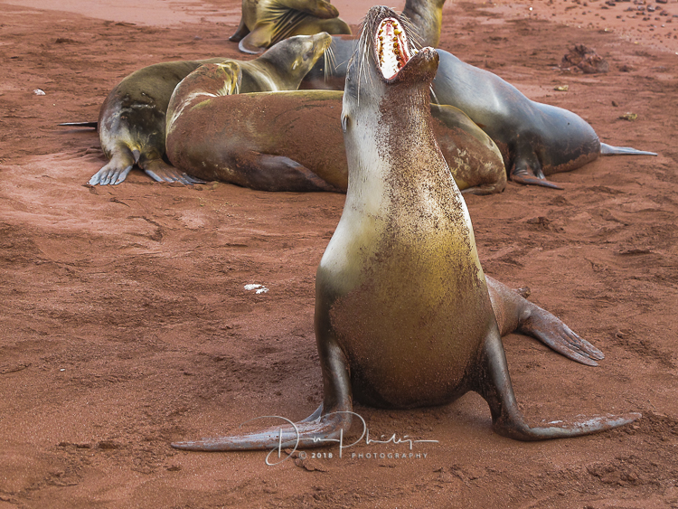 We are greeted by a rookery of Sea Lions prancing about on the blood red sands! Random birds and lizards abound as we navigate our way through all the wildlife. Sea Lions pronounce their displeasure at our presence and go about their day, Cows chastising Pups, Bulls creating order and all of them crowing and making their presence known!