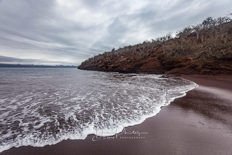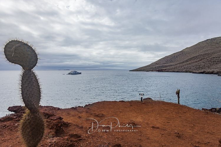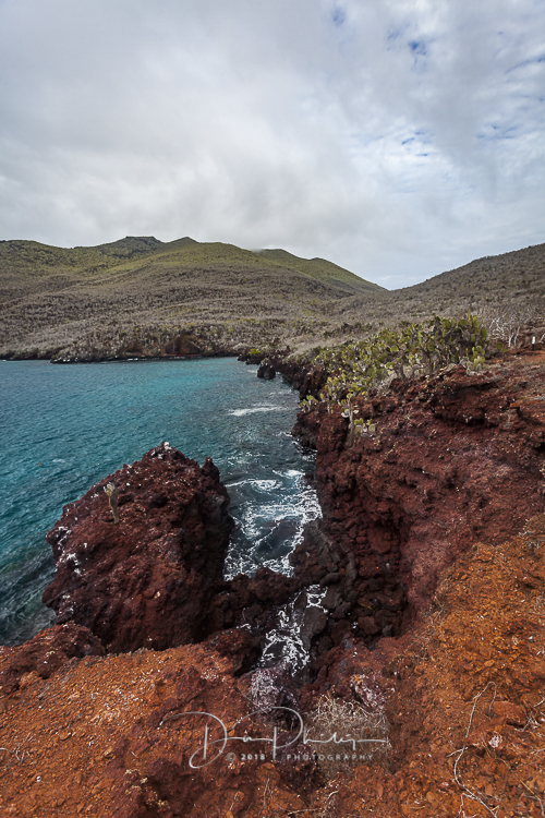 We take a hike inland where the sand doesn’t change color. Vibrant reds and greens saturate our vision as we navigate our way around the island. Cactus grows everywhere, telling us about the desert nature of these otherwise pristine locals. Why is this place so vibrant red? Iron ore and millennia of volcanic activity have created this amazing oasis of eye candy!