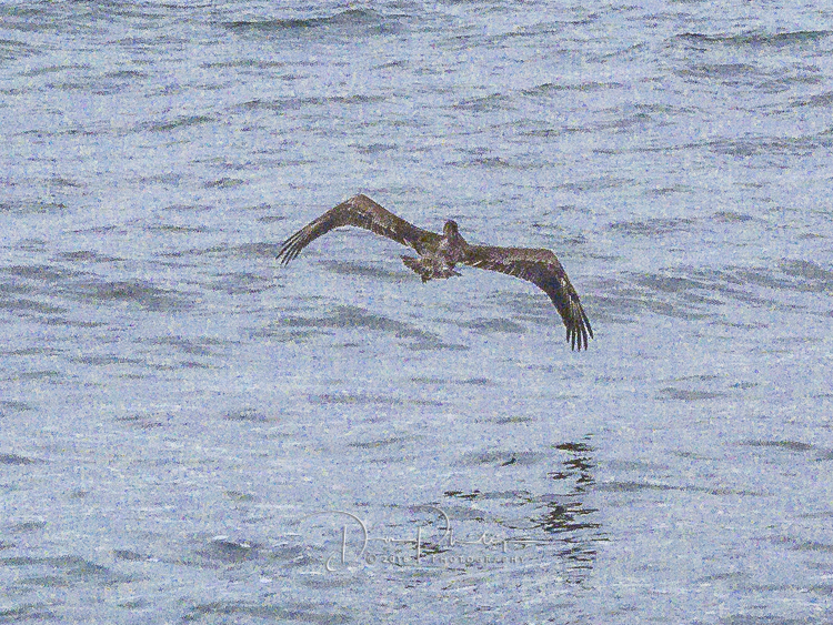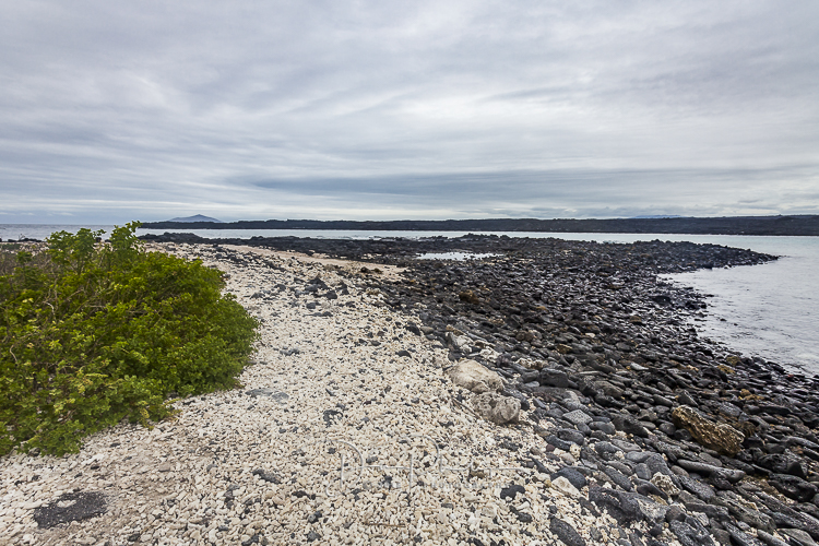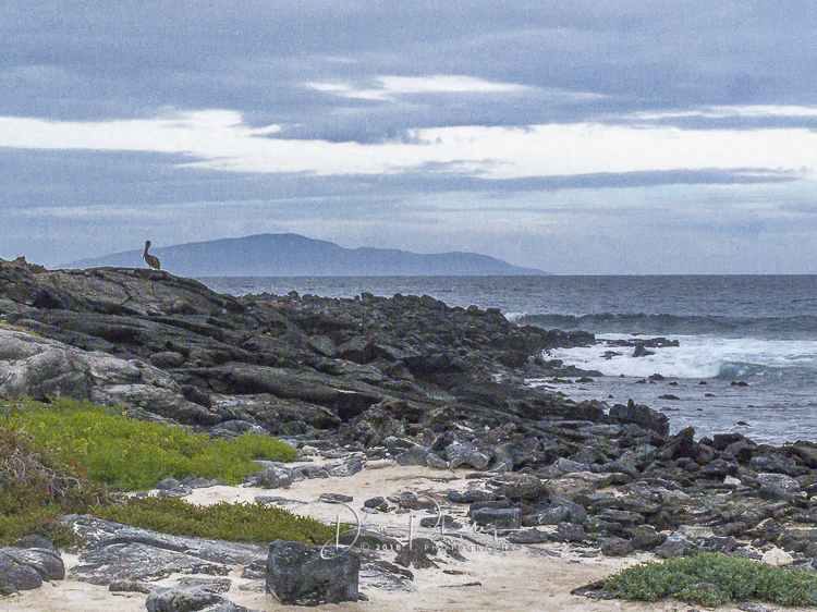 Blue Footed Boobies fly and dive for random meals, the surf comes and goes in its own way. Hermit crabs make their tracks in the sand.