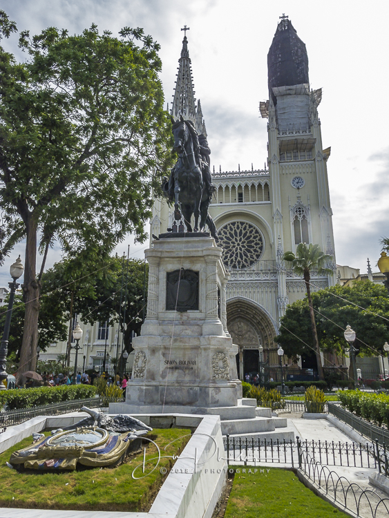 Ok, we’re checked in to our hotel! No time to relax, let’s go see this place! Downtown Guayaquil, Ecuador! A quaint town on the west coast of Ecuador that lies mostly on a river that runs through it. The Rio Guayas! A short walk from our hotel, we find the Parque Bolivar, honoring the one and only Simon Bolivar, a famous hero here.