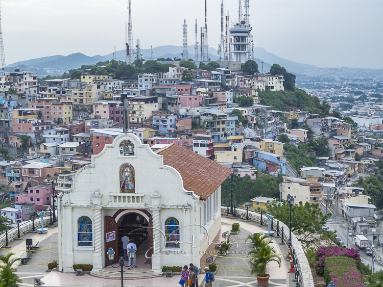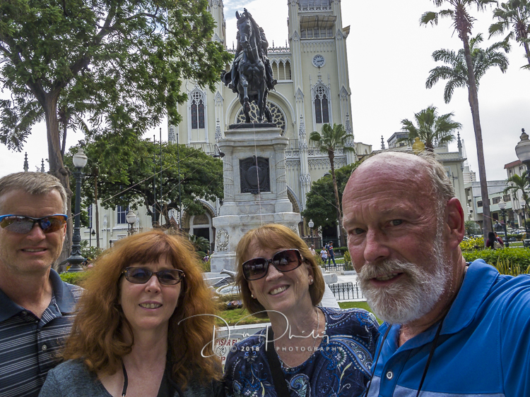 Being up the top for sunset was a treat also! Then, with one of our group with bad knees, we had to start down. Anyone who knows knees, you know that going down steps is the absolute worst (sorry Elee!) but like the trooper she is, she worked her way down. Well, what do you know? One of the local bars that tried to seduce us in on our way up, was quite successful on our way down! You’ll see our selfie in the open air restaurant enjoying cool refreshing drinks! I must add that Guayaquil was quite warm and humid, even at sunset!