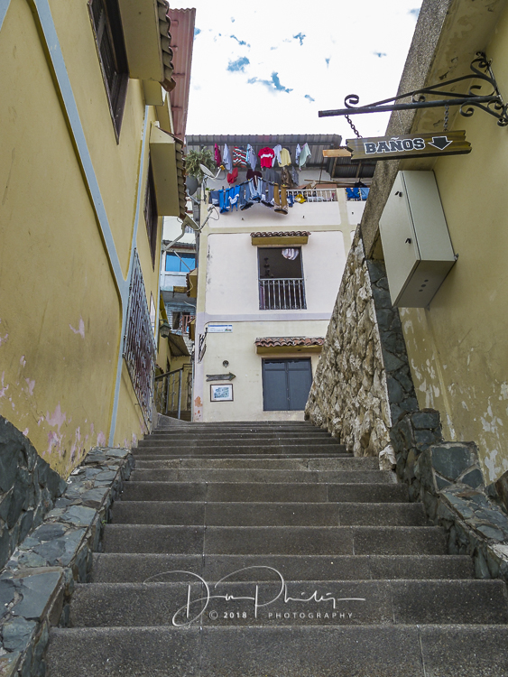 Then, we were told, there was a hill to climb with a view from the top! Well, don’t tell a photographer twice! But my traveling group was of the same mind, so off we went in search of the hill. Again, strikingly clean streets which we did not expect for a 3rd world country! I have seen 1st world countries with less respect for their neighborhoods! And, you’ll notice, we came across the sign that marked the beginning of the steps up the hill.
