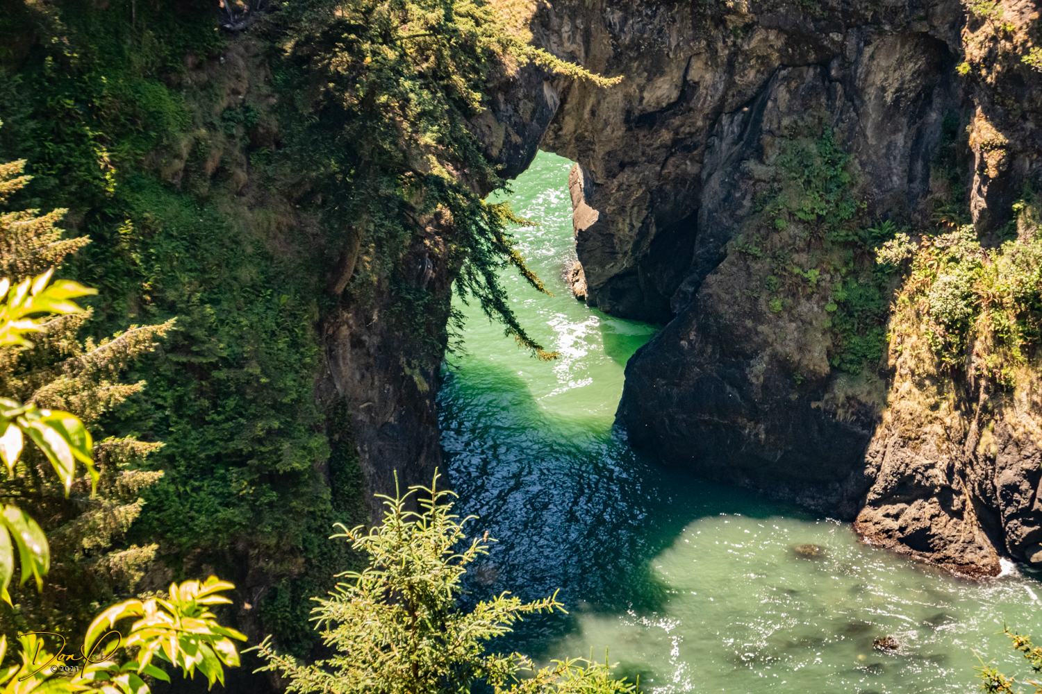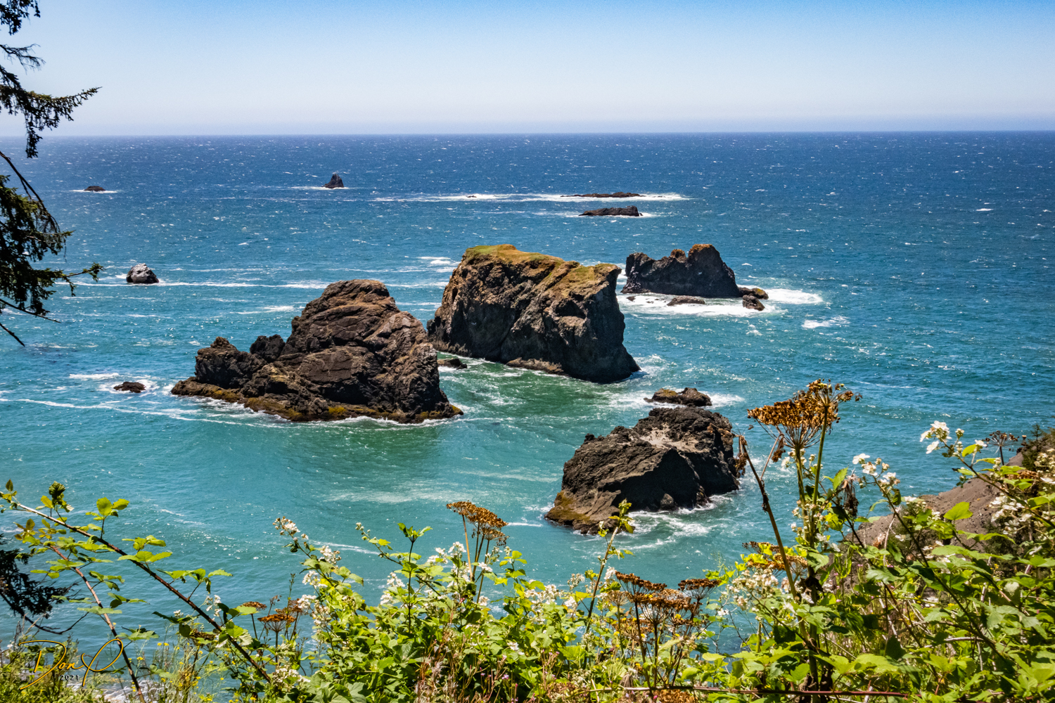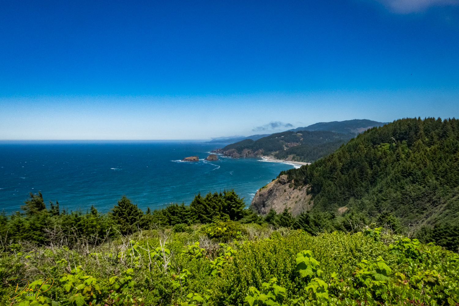 We are told there is a view of the Cape Arago Lighthouse on an island and is easily accessed from an Indian Reservation. It turns out that accessing the Reservation is nigh on impossible because the residents are tired of all the tourists and have made parking impossible. We finally are directed to a spot where, with a good zoom lens, you can get a glimpse of it!