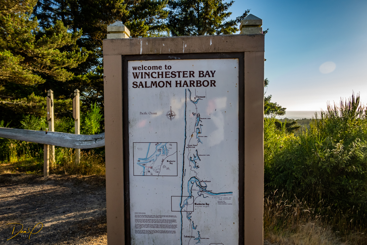 We find lodging for the night at the Winchester Bay Inn with a view of the ocean. It is rustic yet comfortable and specifically designed for beach goers.