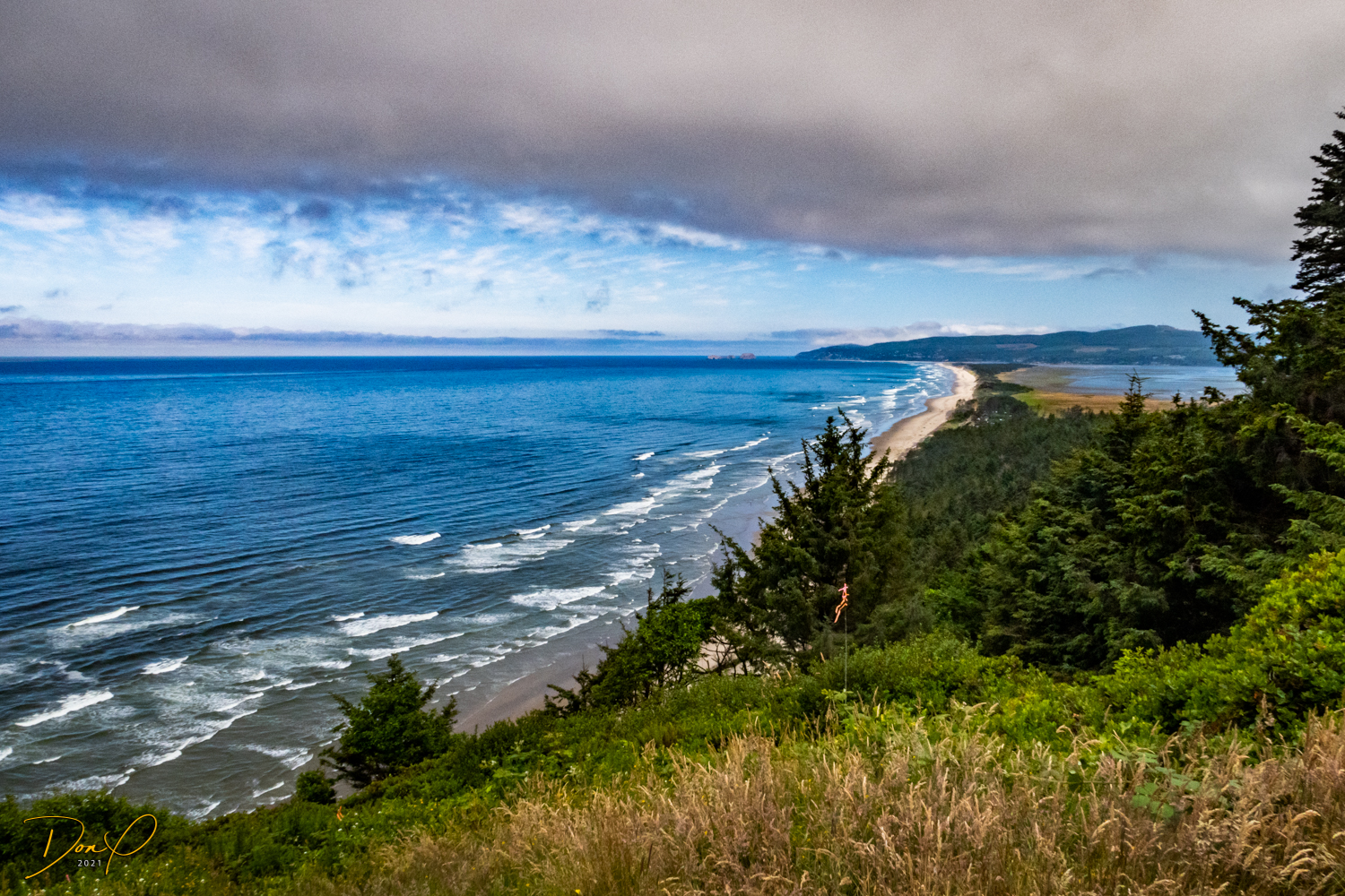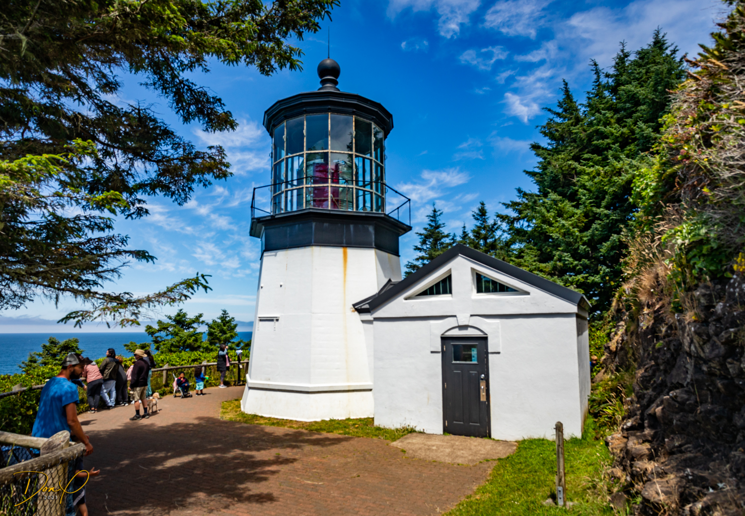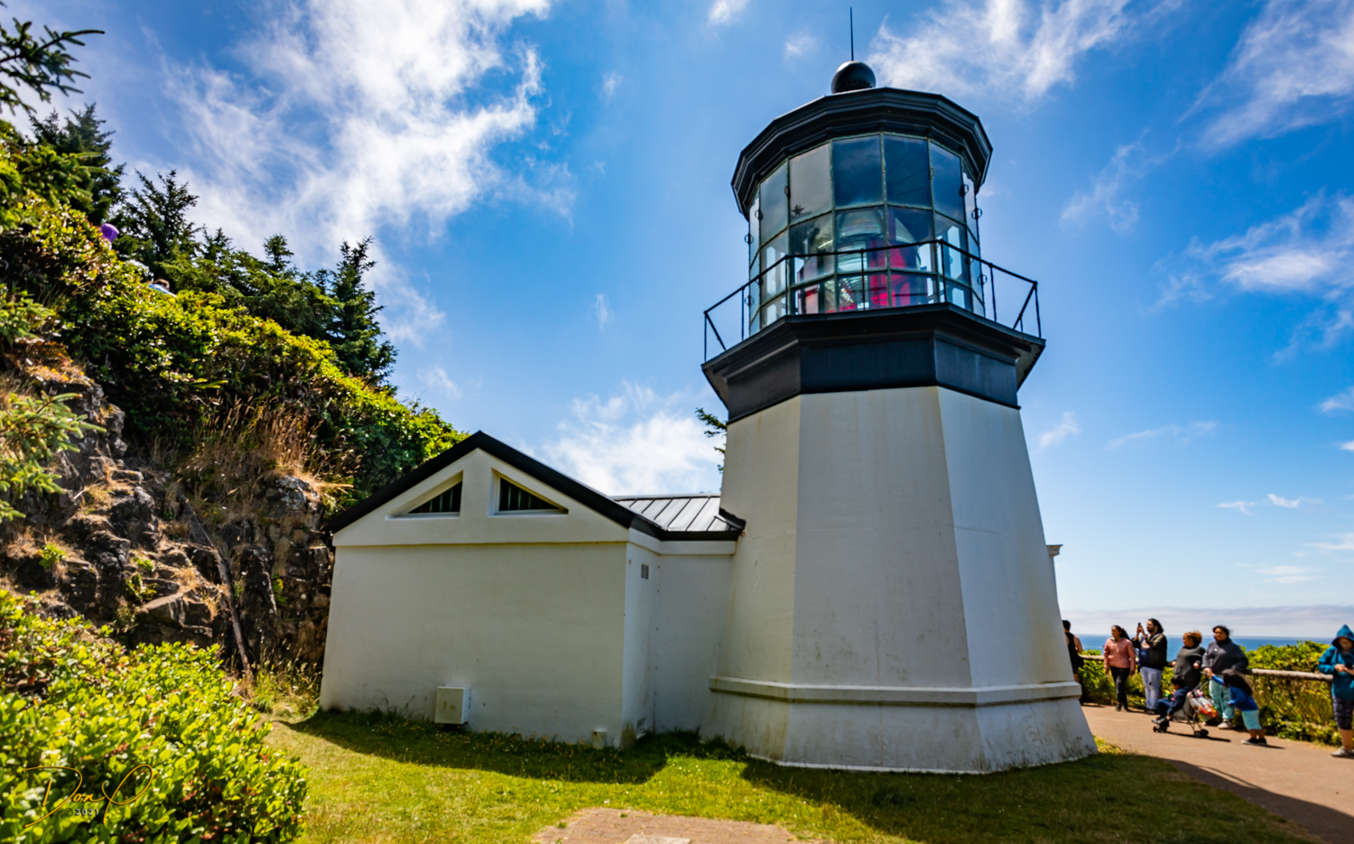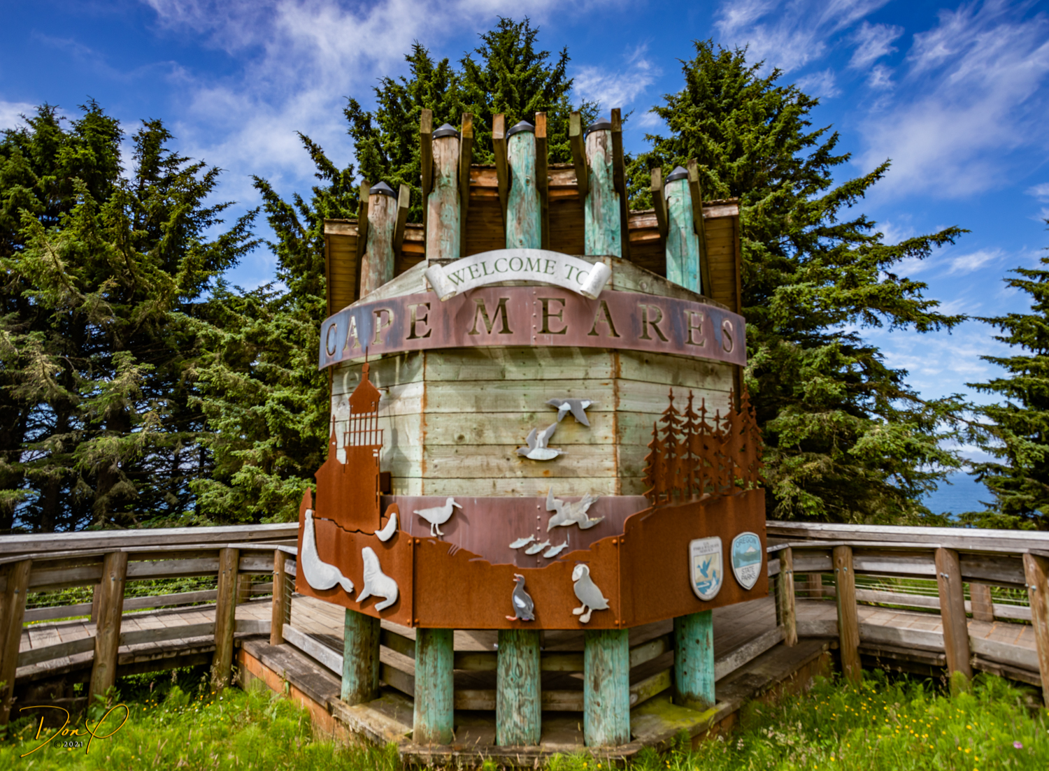 Next stop is Cape Meares Lighthouse. This one, you can hike a short trail and look down on the lighthouse! Driving away from the lighthouse, we spot the “Buoy Tree”! Can you find it? Next up is a visit to Cape Foulweather but unfortunately, the museum is closed. So we drive on up the coast and come across more views at Gammon Launch, a pioneering hang glider launch location! We drive further up Cape Meares with views of the ocean on our left and Tillamook Bay on the right with a quaint and cozy little town at the end of it!