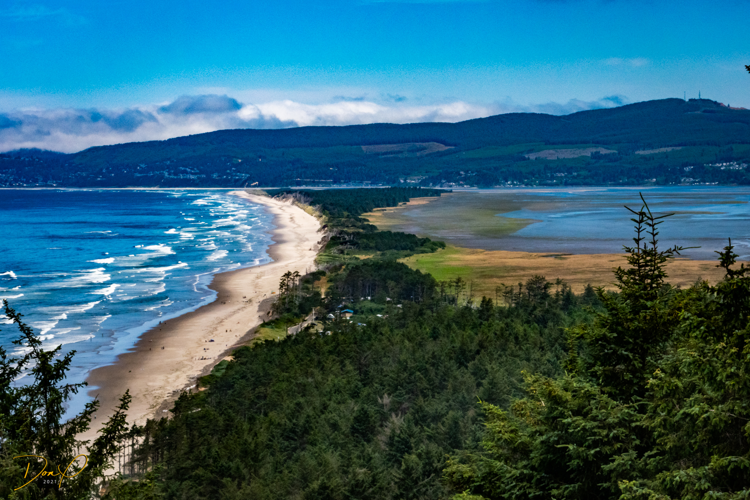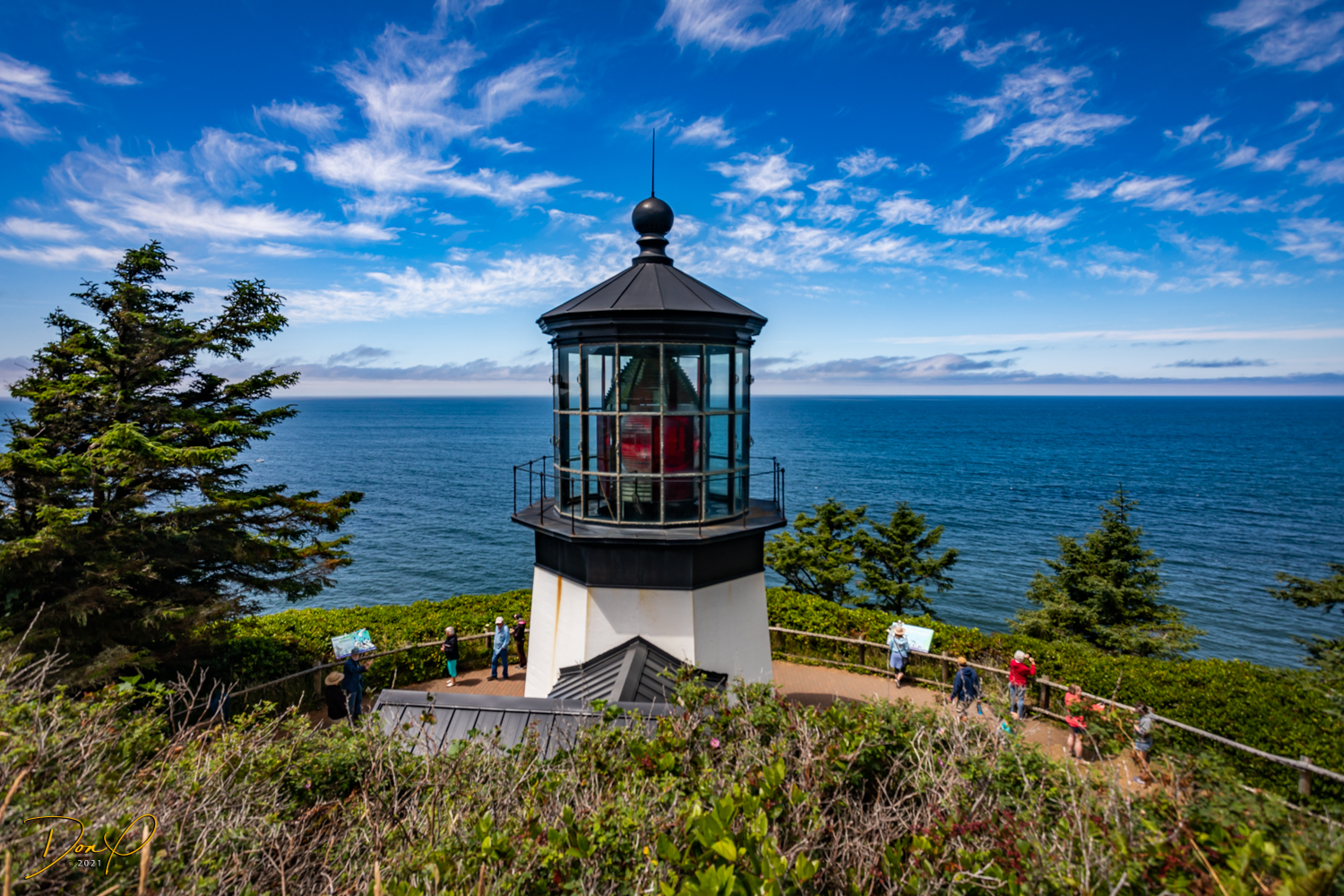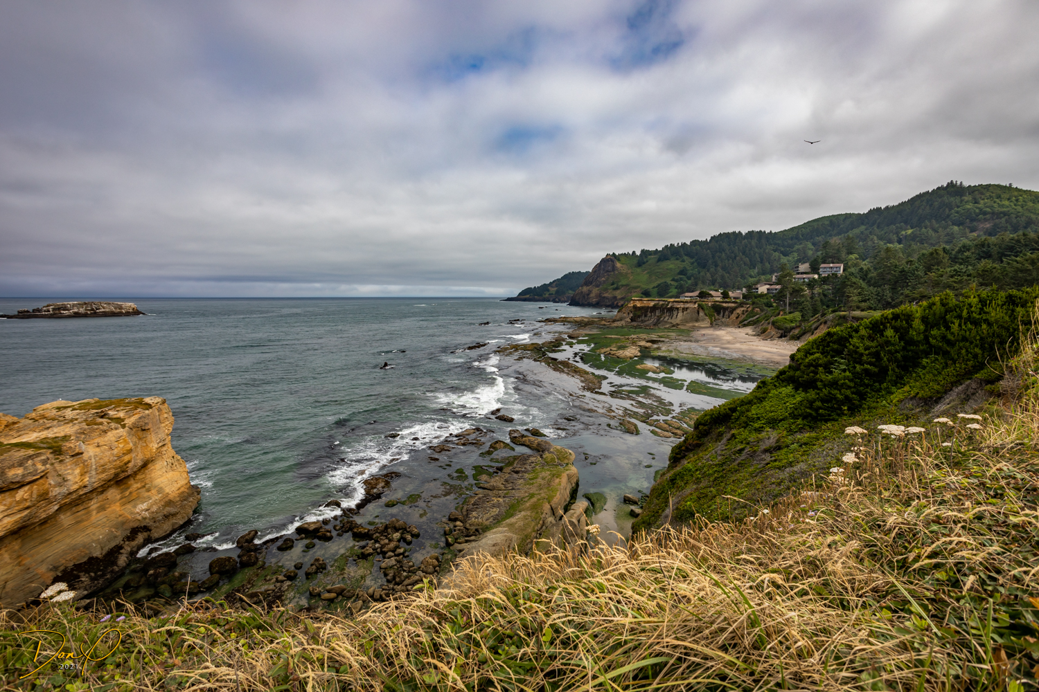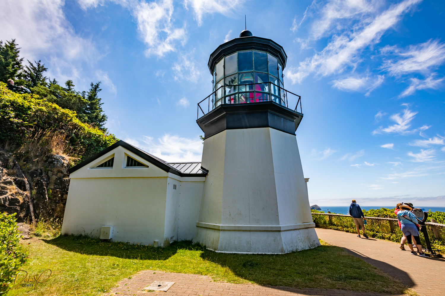 Next stop is Cape Meares Lighthouse. This one, you can hike a short trail and look down on the lighthouse! Driving away from the lighthouse, we spot the “Buoy Tree”! Can you find it? Next up is a visit to Cape Foulweather but unfortunately, the museum is closed. So we drive on up the coast and come across more views at Gammon Launch, a pioneering hang glider launch location! We drive further up Cape Meares with views of the ocean on our left and Tillamook Bay on the right with a quaint and cozy little town at the end of it!