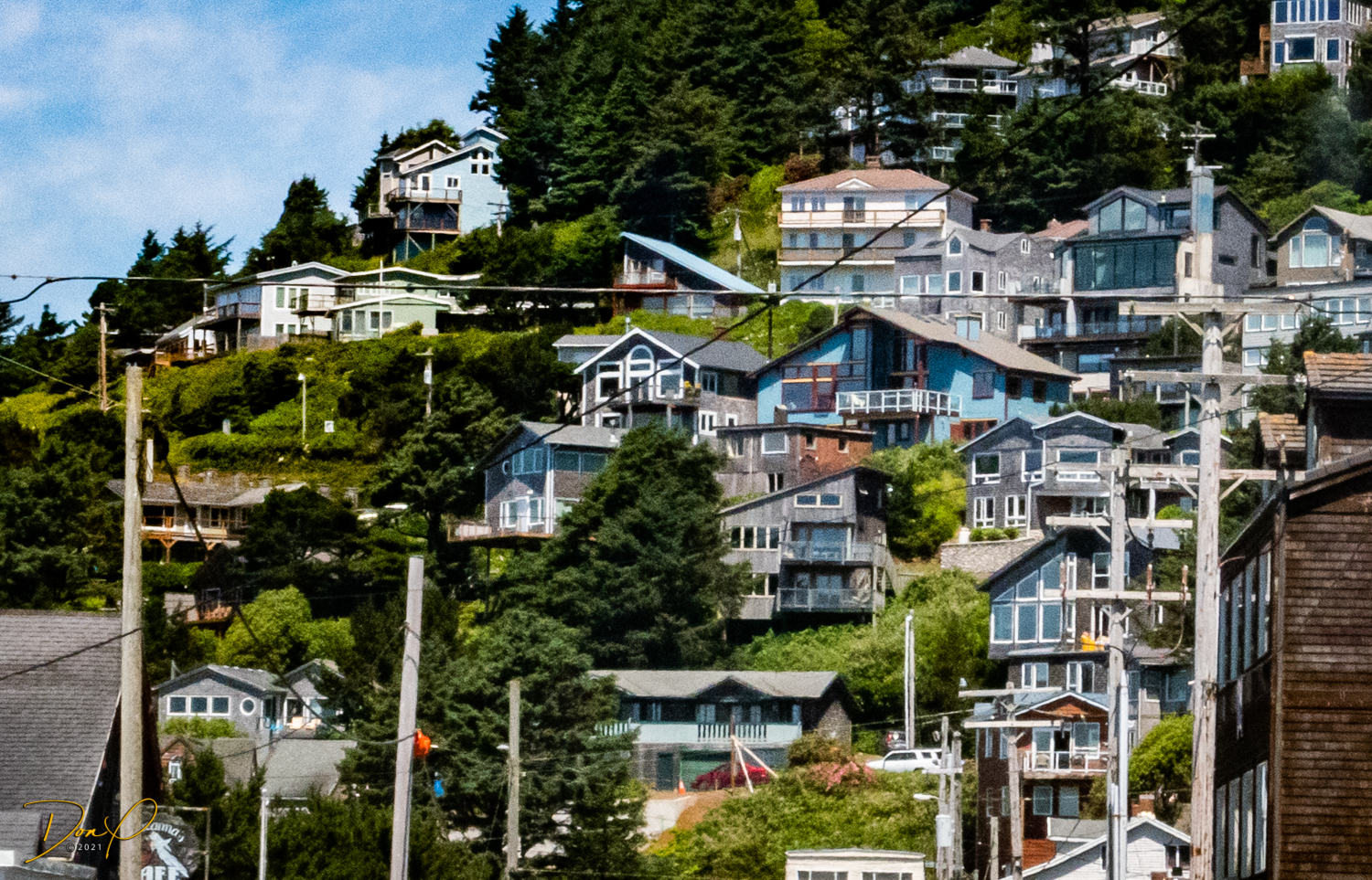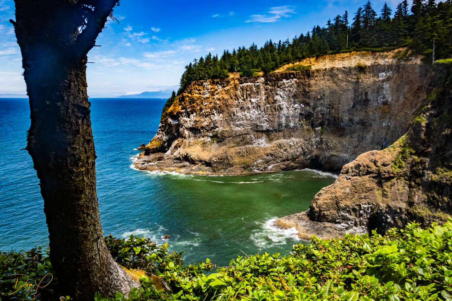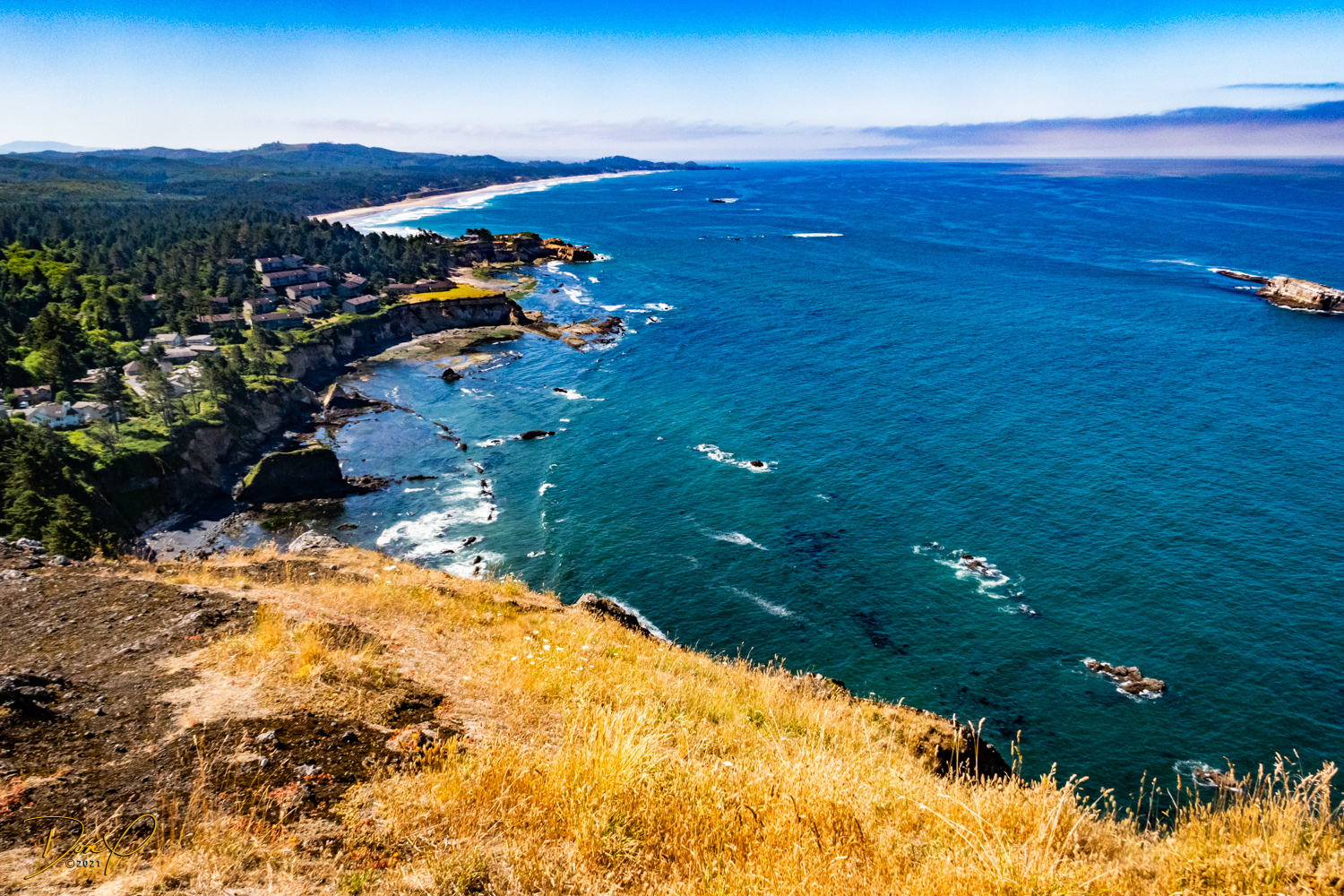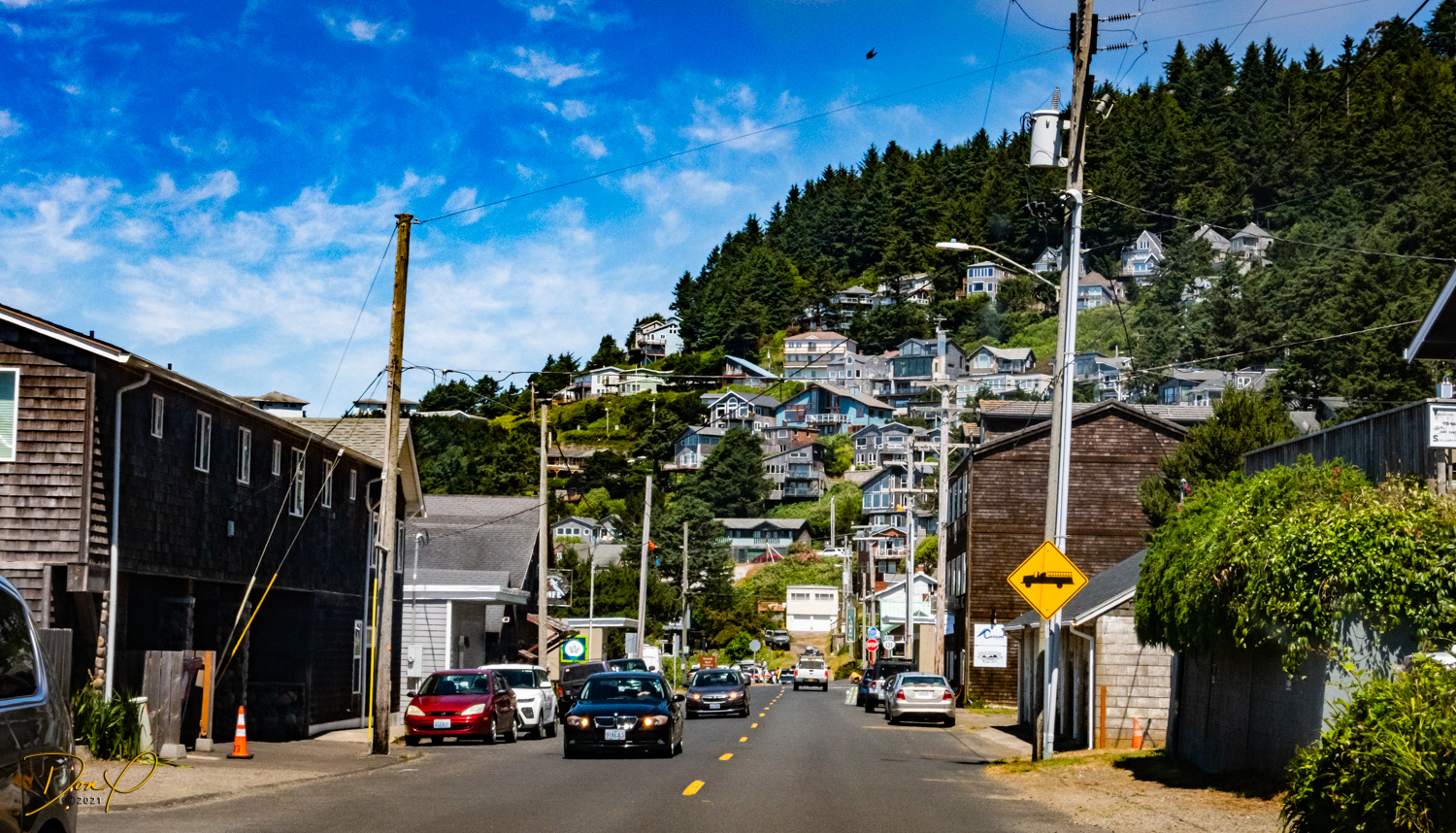 Next stop is Cape Meares Lighthouse. This one, you can hike a short trail and look down on the lighthouse! Driving away from the lighthouse, we spot the “Buoy Tree”! Can you find it? Next up is a visit to Cape Foulweather but unfortunately, the museum is closed. So we drive on up the coast and come across more views at Gammon Launch, a pioneering hang glider launch location! We drive further up Cape Meares with views of the ocean on our left and Tillamook Bay on the right with a quaint and cozy little town at the end of it!