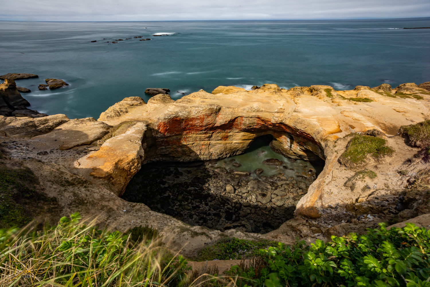 Our first stop today is Devil’s Punchbowl State Park. Very interesting natural formations here. We happen to be here at low tide so the waves are barely making their way into the bowl. We can only imagine what it looks like at high tide!