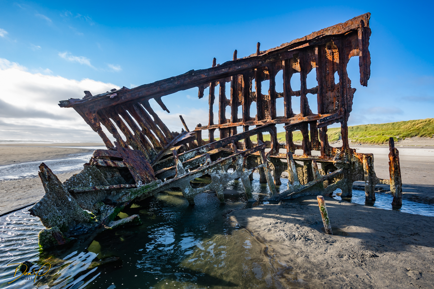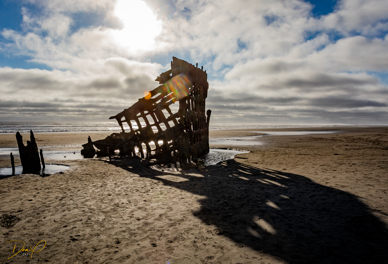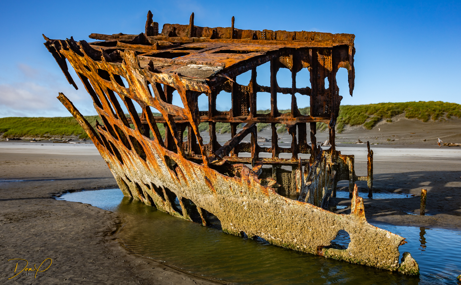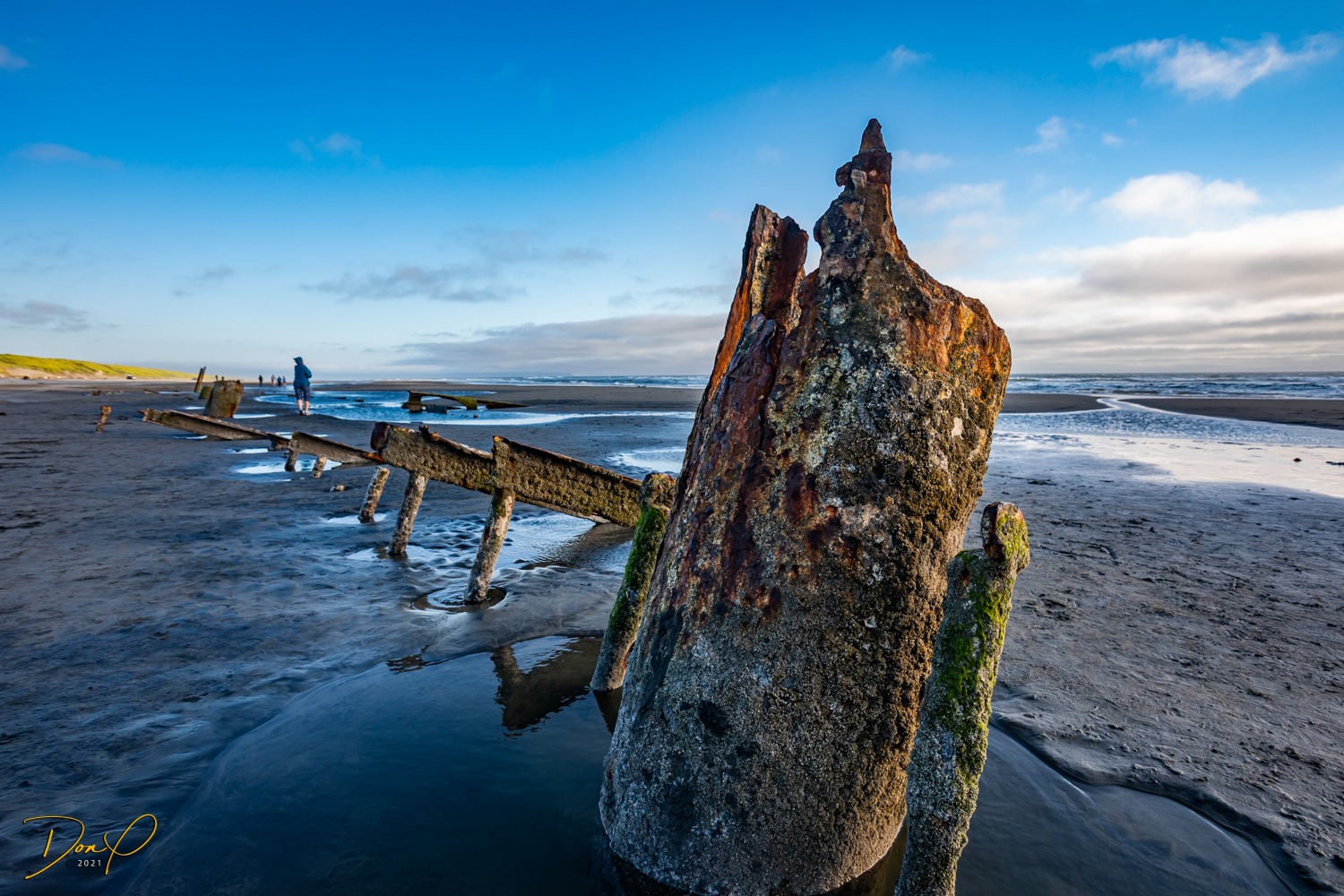 We continue driving north to Fort Steven’s State Park where we find the wreck of the Peter Iredale. It is getting near sunset and we get some fun photos of the famous wreck. As we walk away, we watch the winds blow the shifting sands along the beach, explaining in part why this shipwreck is buried so deep!