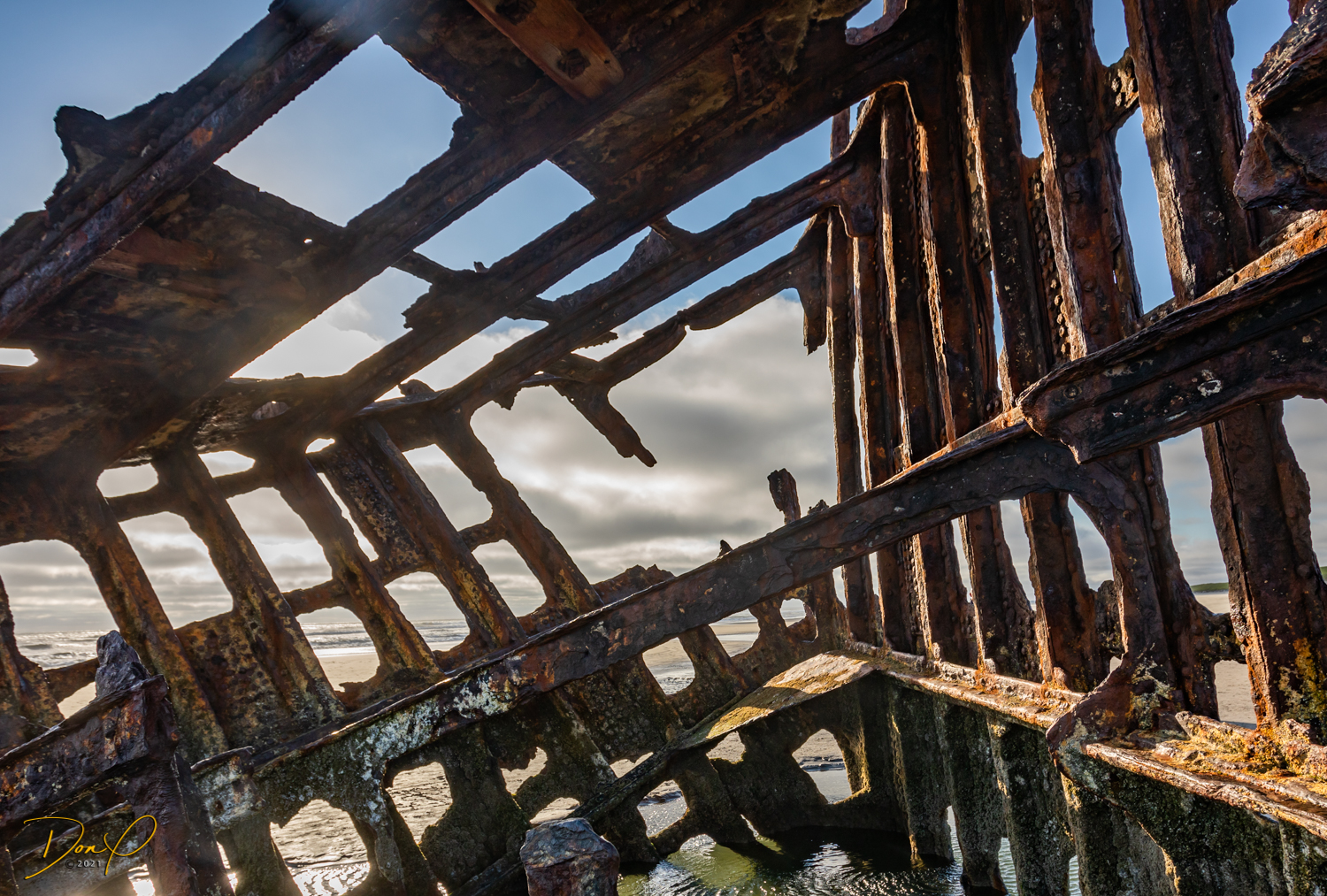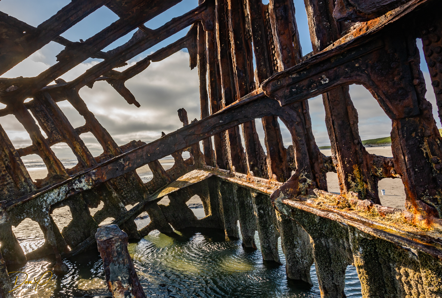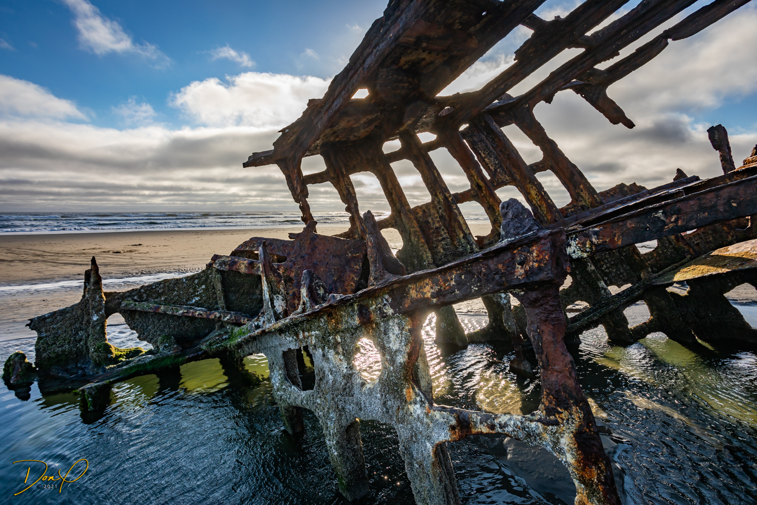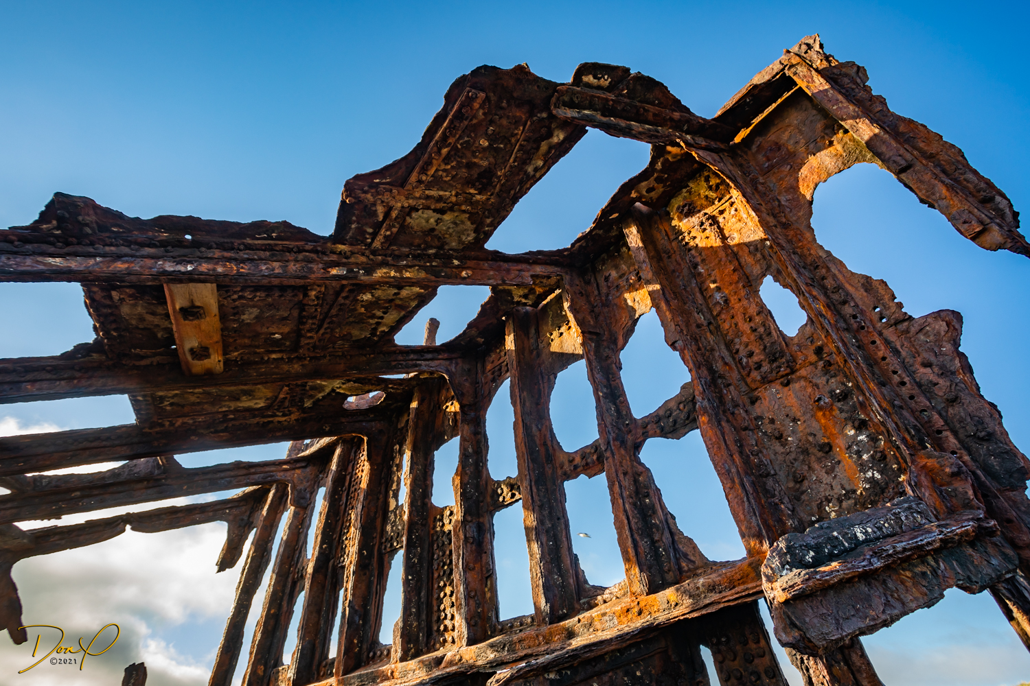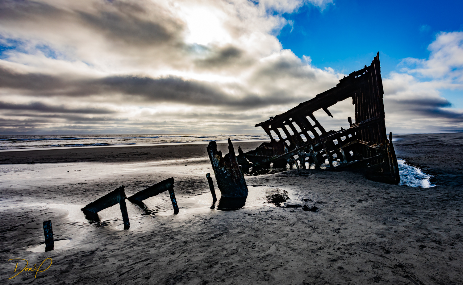 We continue driving north to Fort Steven’s State Park where we find the wreck of the Peter Iredale. It is getting near sunset and we get some fun photos of the famous wreck. As we walk away, we watch the winds blow the shifting sands along the beach, explaining in part why this shipwreck is buried so deep!