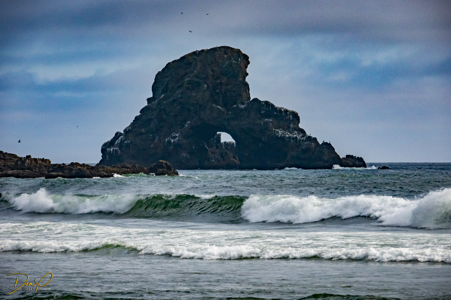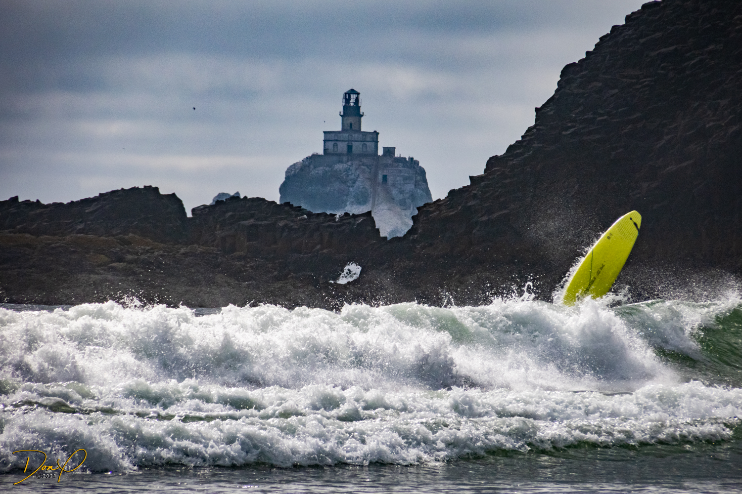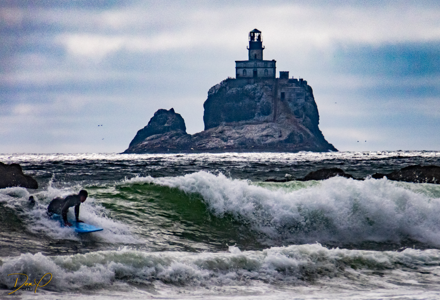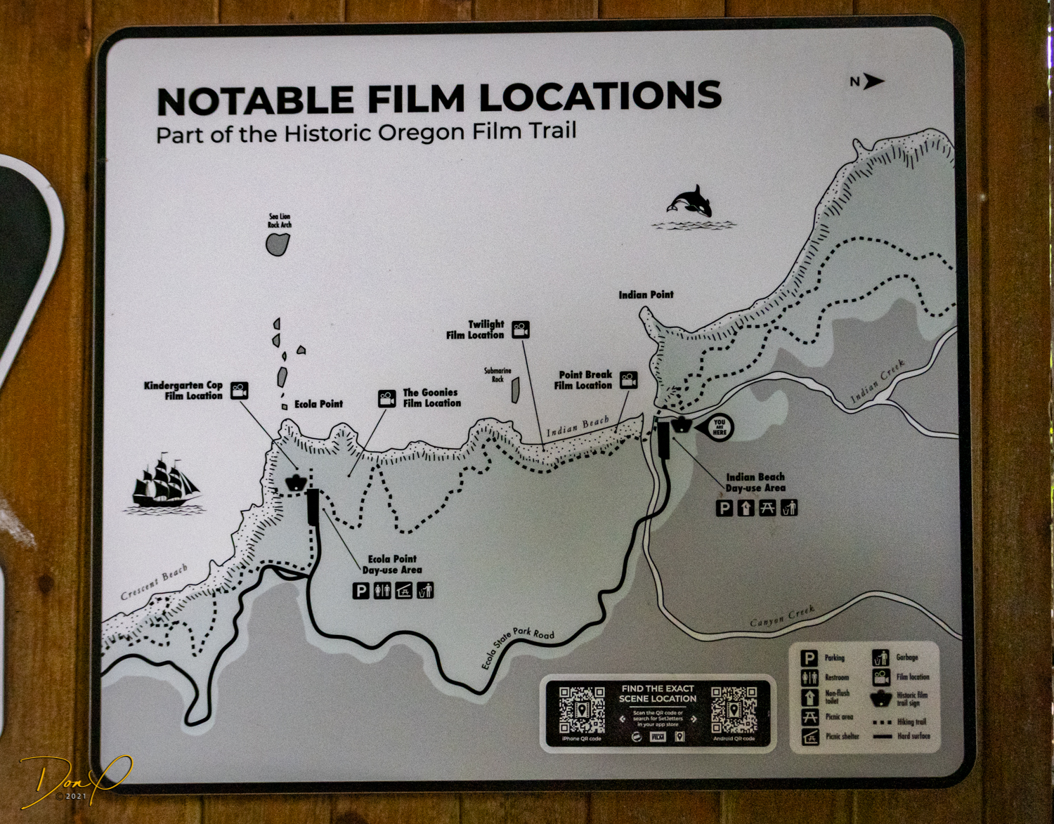 Tummies satiated, we keep moving up the coast where we find Haystack Rock and stories of the Oregon Film Trail where numerous films were made! We stop at Indian Beach past Cannon Beach where offshore we get a glimpse of Tillamook Rock Lighthouse where some surfers are making use of some small wave sets.