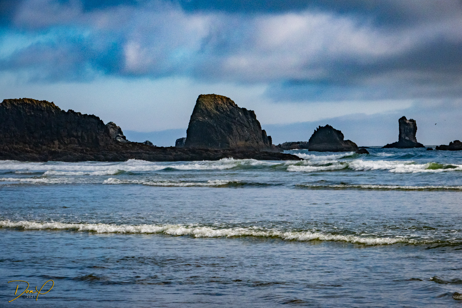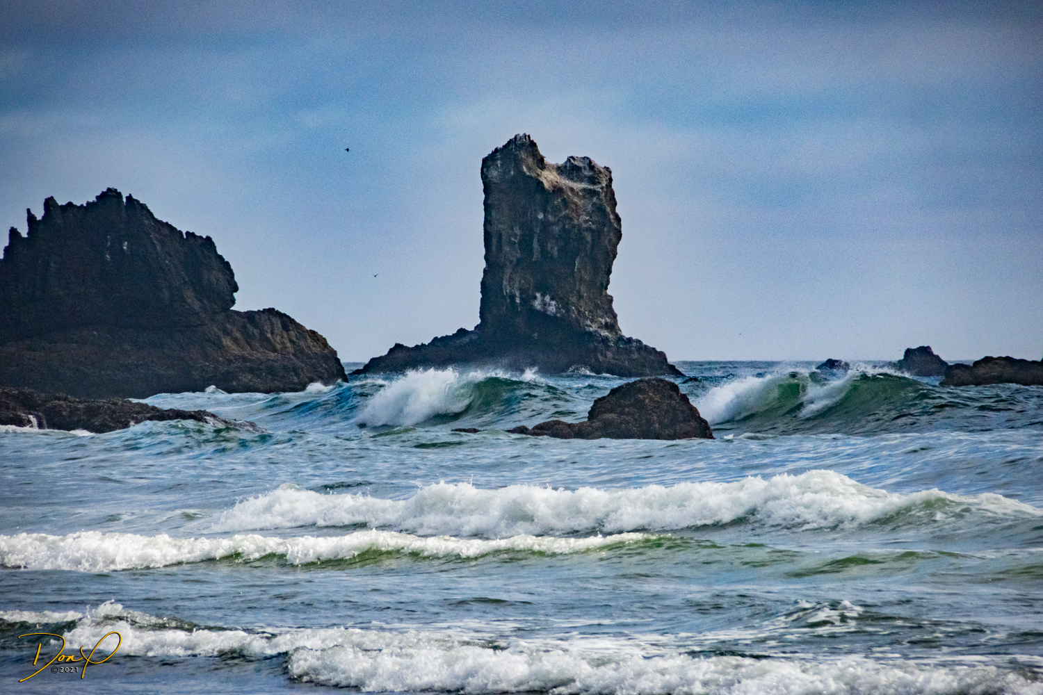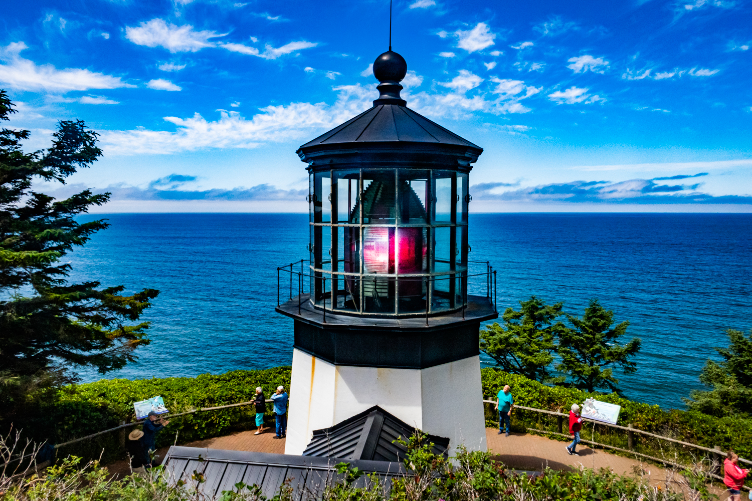 Tummies satiated, we keep moving up the coast where we find Haystack Rock and stories of the Oregon Film Trail where numerous films were made! We stop at Indian Beach past Cannon Beach where offshore we get a glimpse of Tillamook Rock Lighthouse where some surfers are making use of some small wave sets.