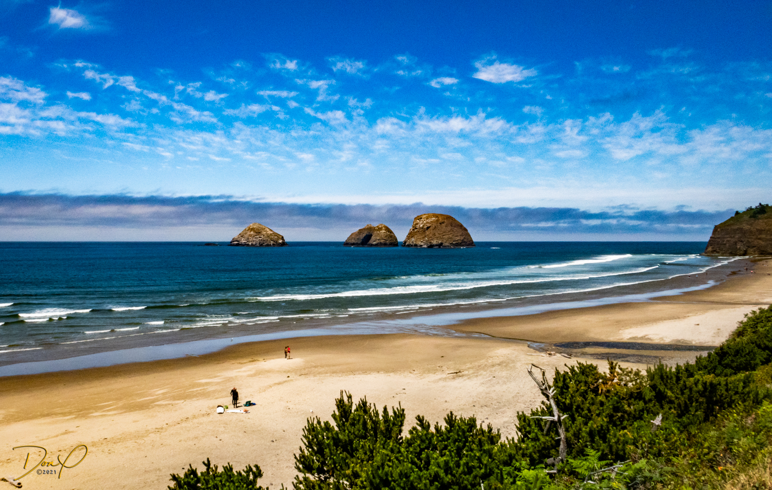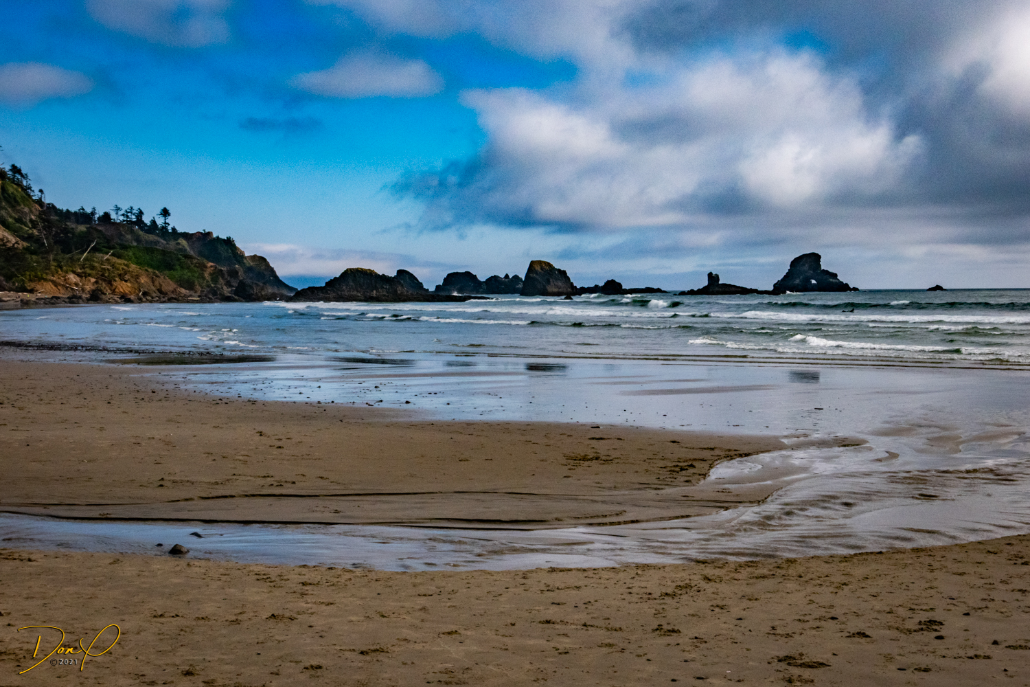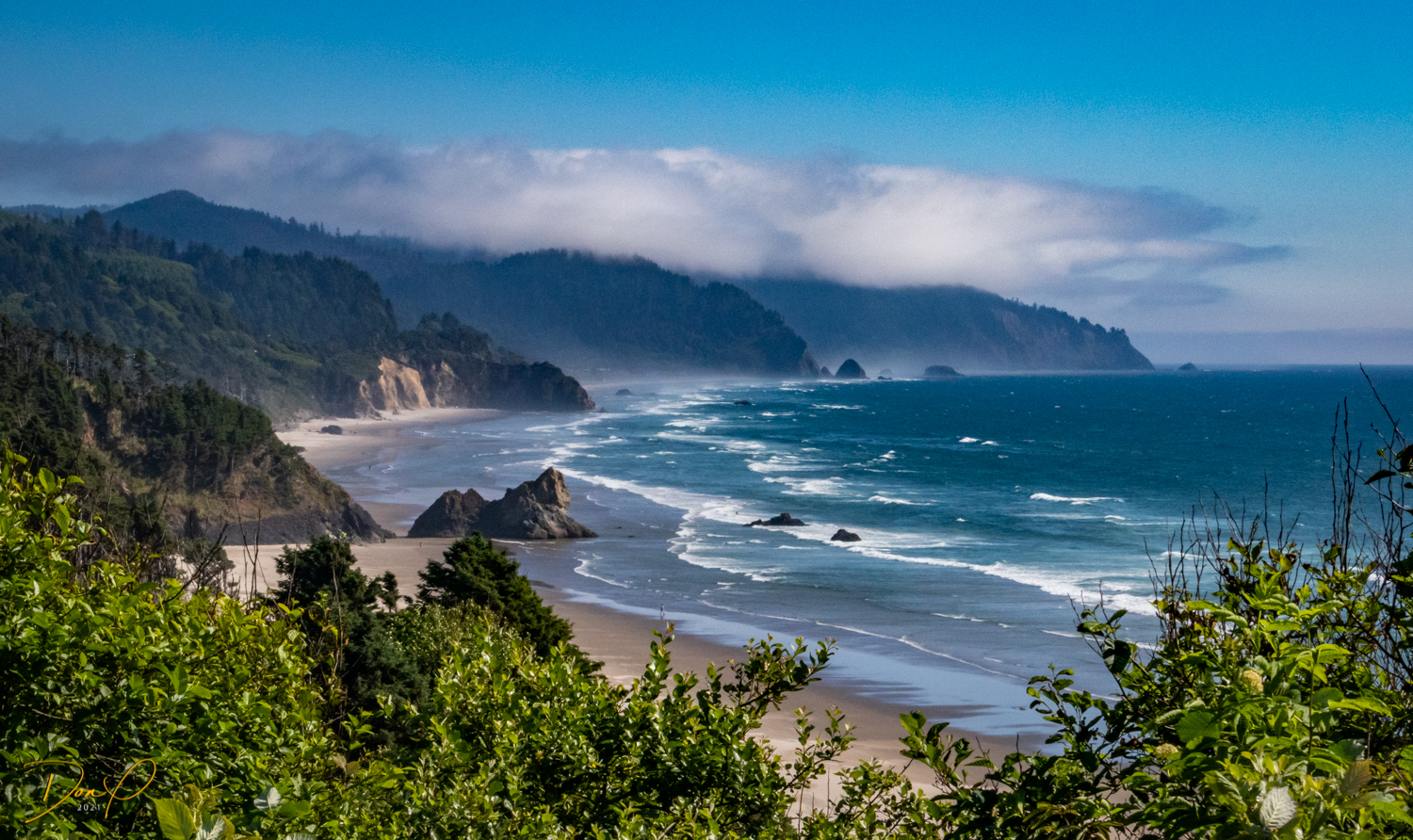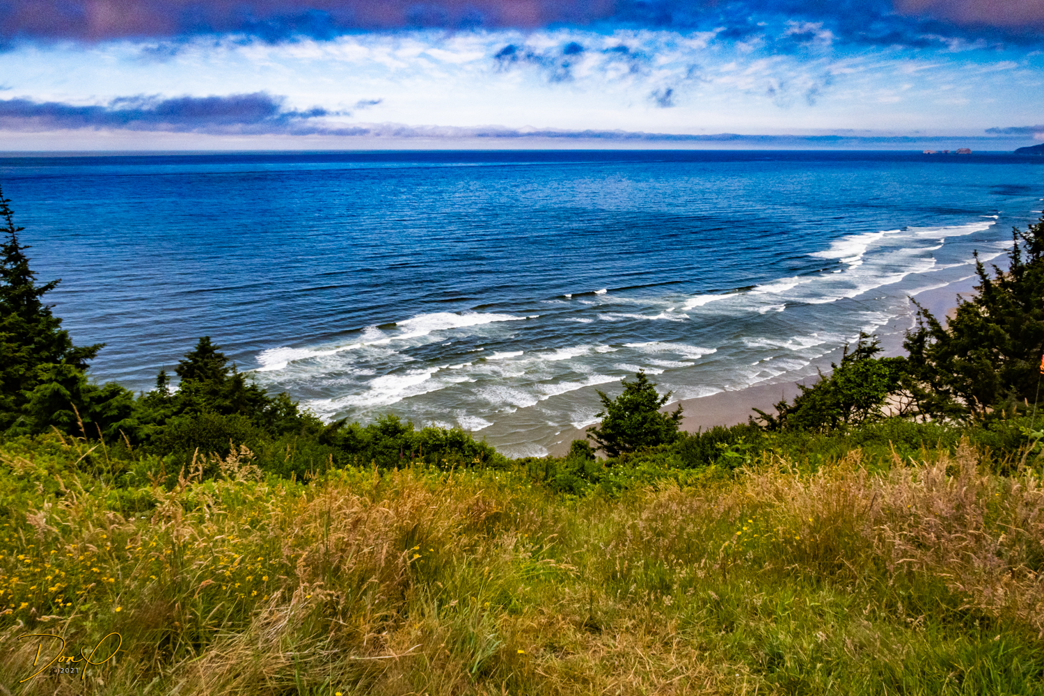 Tummies satiated, we keep moving up the coast where we find Haystack Rock and stories of the Oregon Film Trail where numerous films were made! We stop at Indian Beach past Cannon Beach where offshore we get a glimpse of Tillamook Rock Lighthouse where some surfers are making use of some small wave sets.