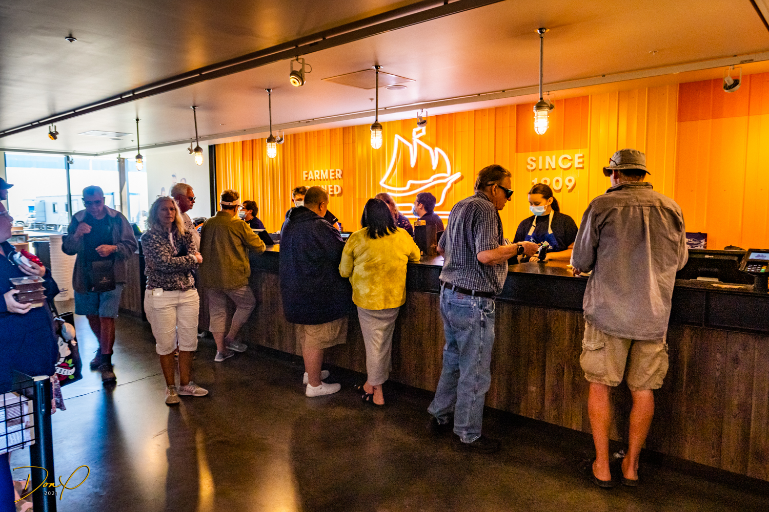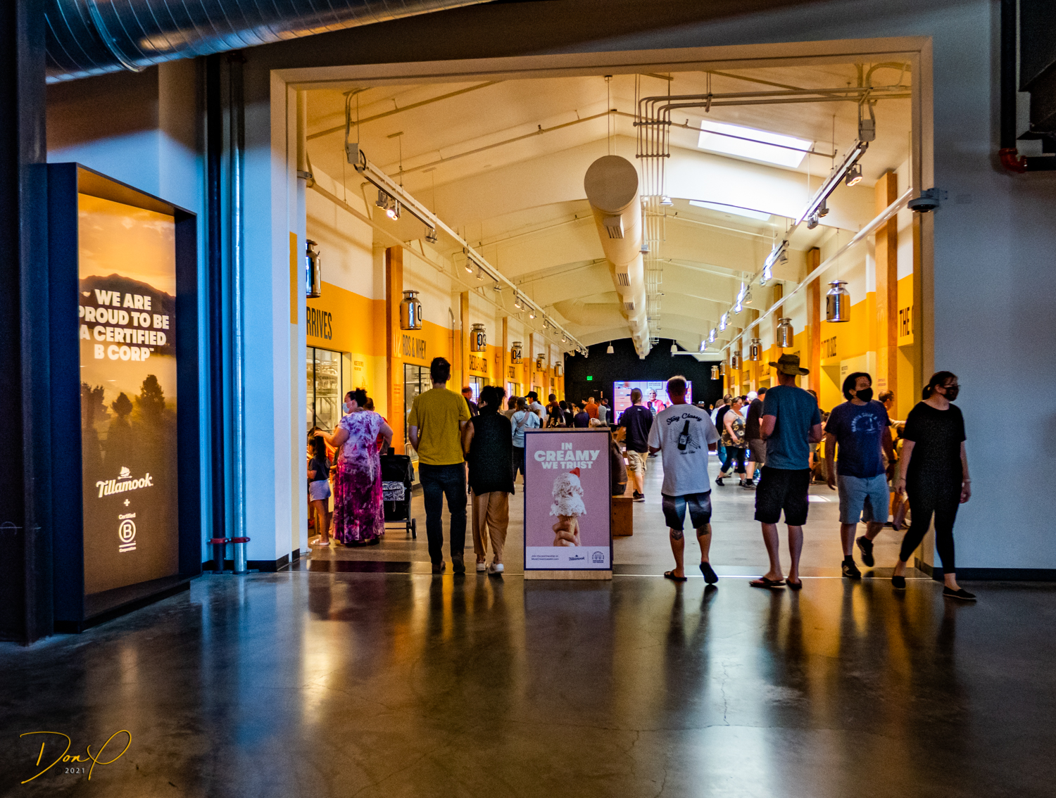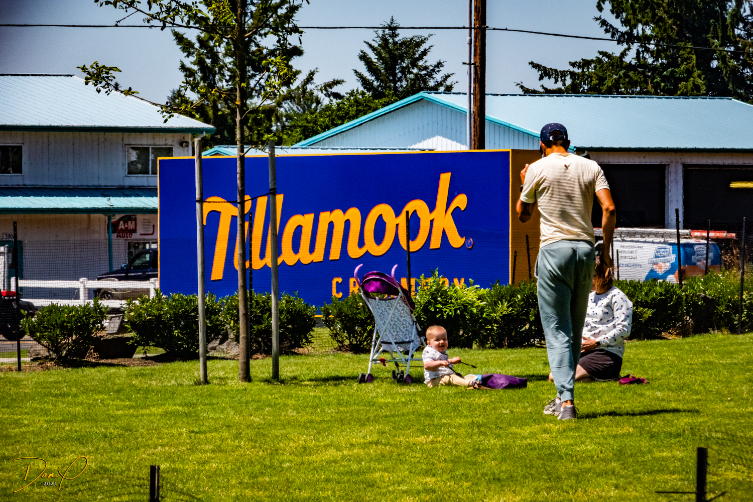 There is no bridge to go further north at this point so we turn around and drive back south around the bay and head a few miles inland to Tillamook for lunch. First we take a self guided tour of the Tillamook Cheese Factory and see just how cheese is made. It’s an intriguing process for sure! Then we check out the food available and the lines are huge and the prices high. So Elee researches ideas for lunch and she finds the Blue Heron Cheese Company less than a mile away and we go there for sandwiches, a cheese plate and wine tasting! So much better than the offerings at Tillamook!