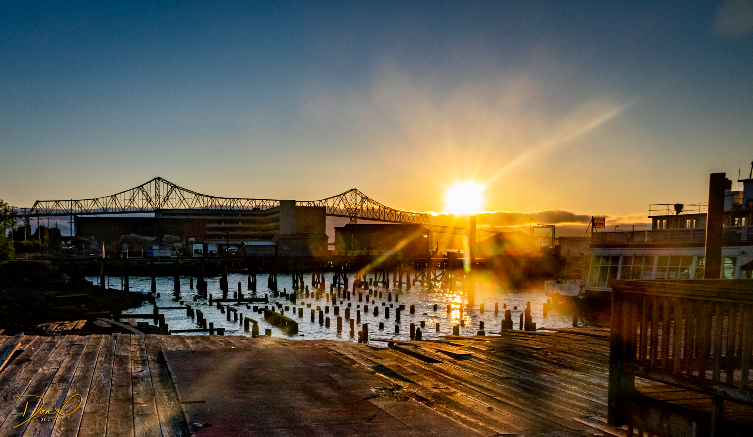 We make it to Astoria just before sunset and we scout around for photo locations. With a couple tips from some locals, we locate a certain pier and make our cameras happy once again!