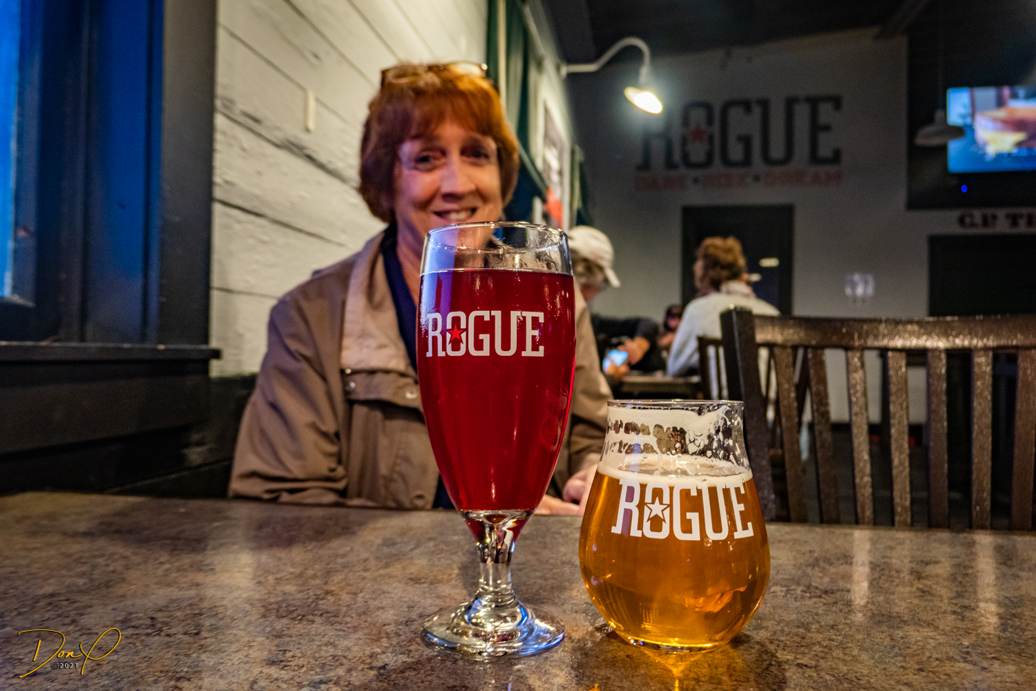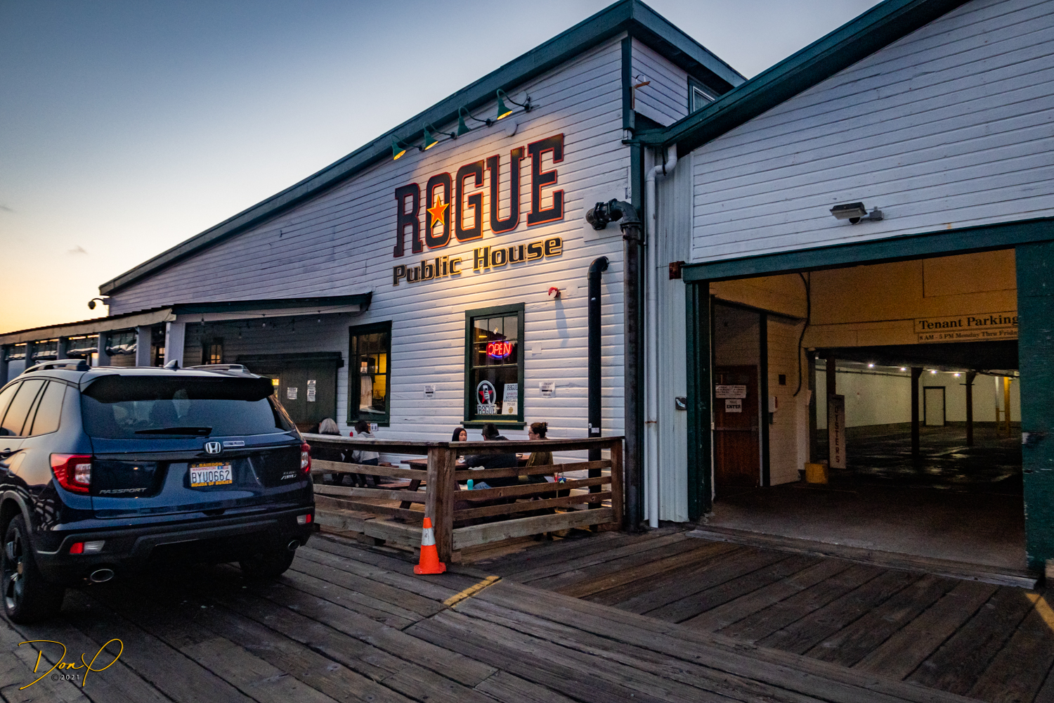 We did drive the bridge across the Columbia River in our search for sunset photo locations before settling on the Oregon side. Then we spot the “New England Fish Company of Oregon”! We choose the “Rogue Public House”, located on a pier that we actually drive out onto for dinner and drinks. Fun place and good food! But they had just reopened from the pandemic and the atmosphere was party paranoid, unfortunately.